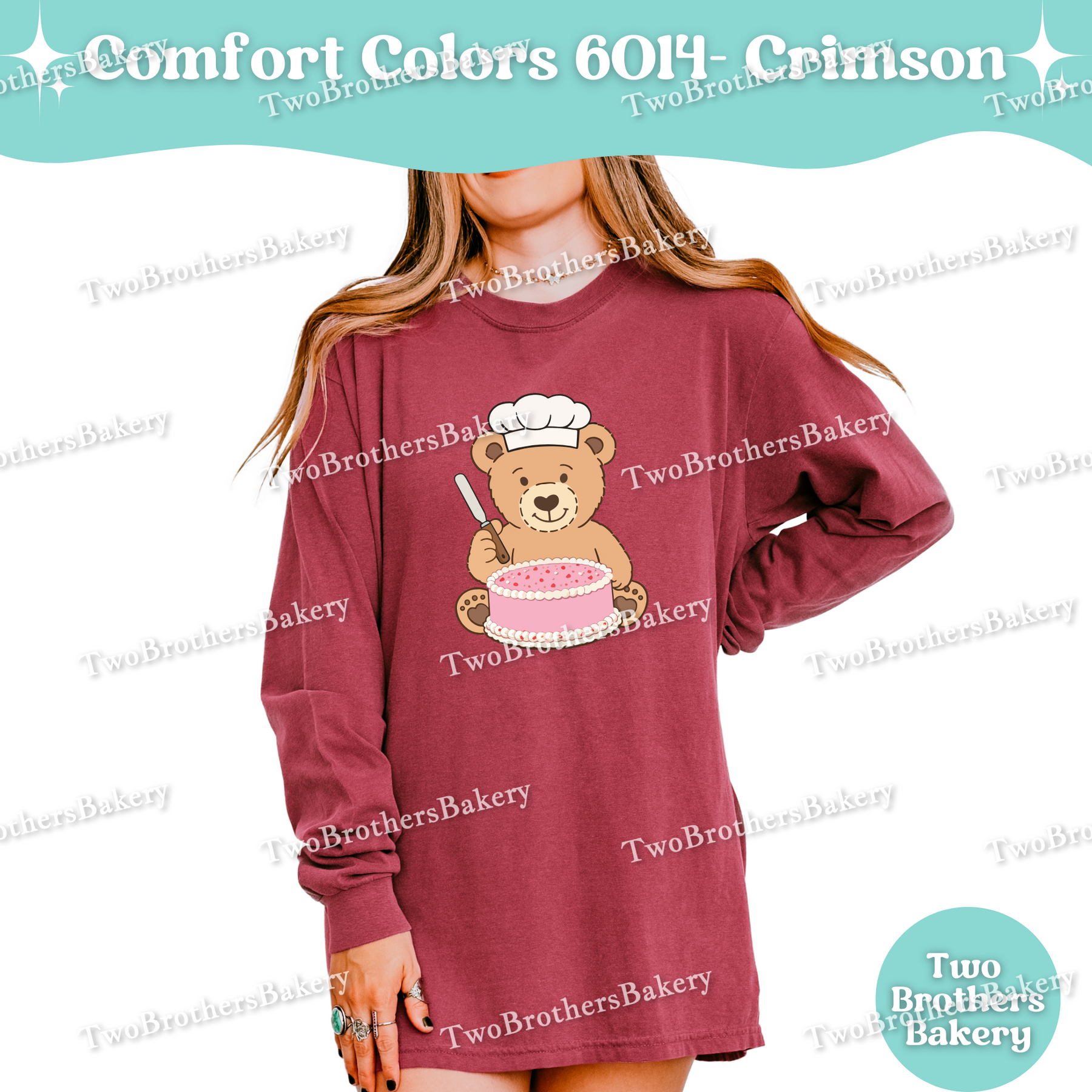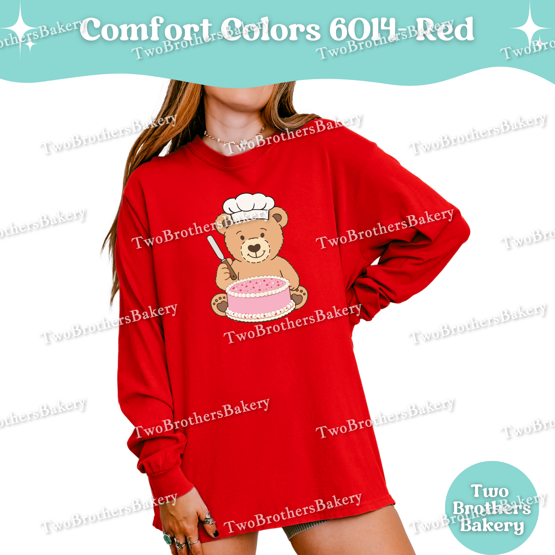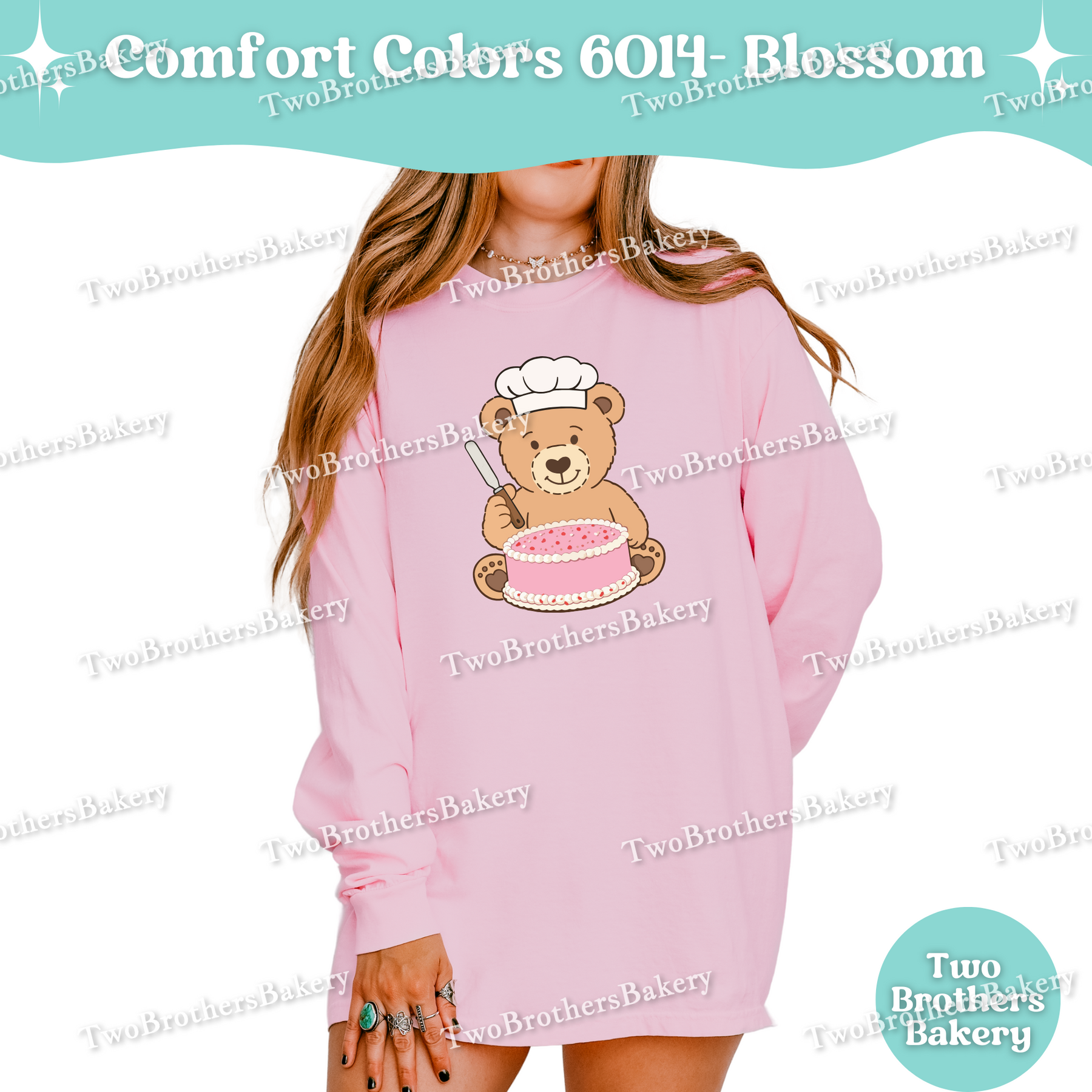 Printed on Comfort Colors 6014 unisex long sleeve shirts, this piece has that soft, lived-in feel Comfort Colors is known for. It’s relaxed, breathable, and ideal for long baking days, cool mornings at markets, or cozy nights spent prepping orders. While it fits beautifully into a Valentine’s collection, the cake-forward design makes it easy to wear year-round — because cake season never really ends.