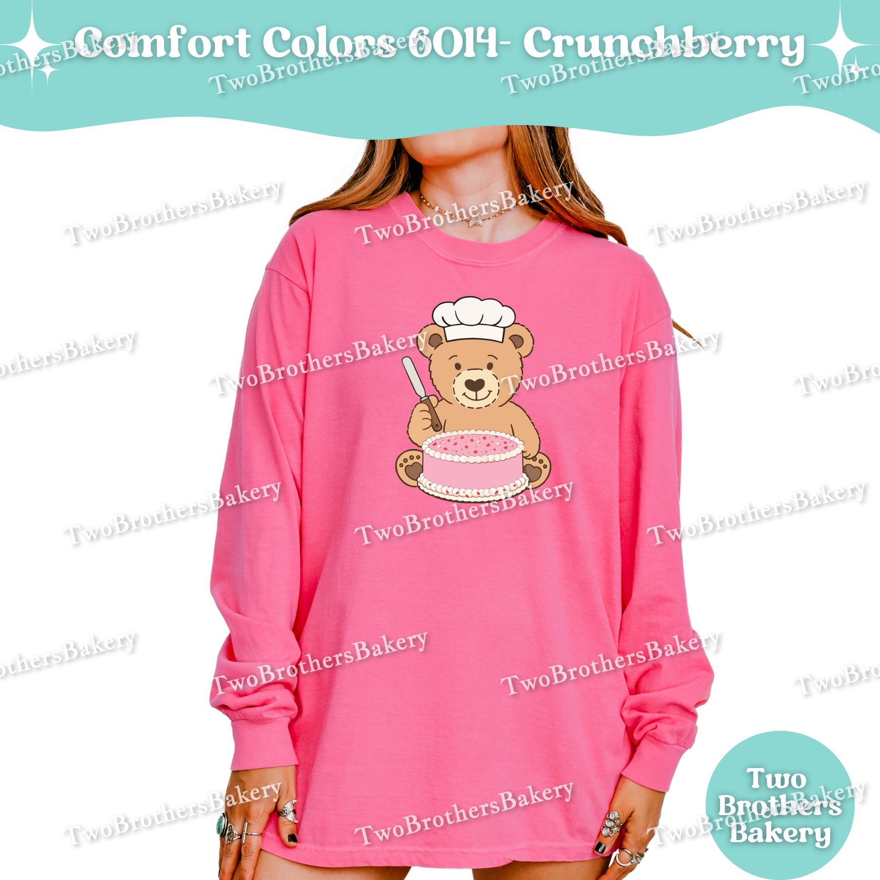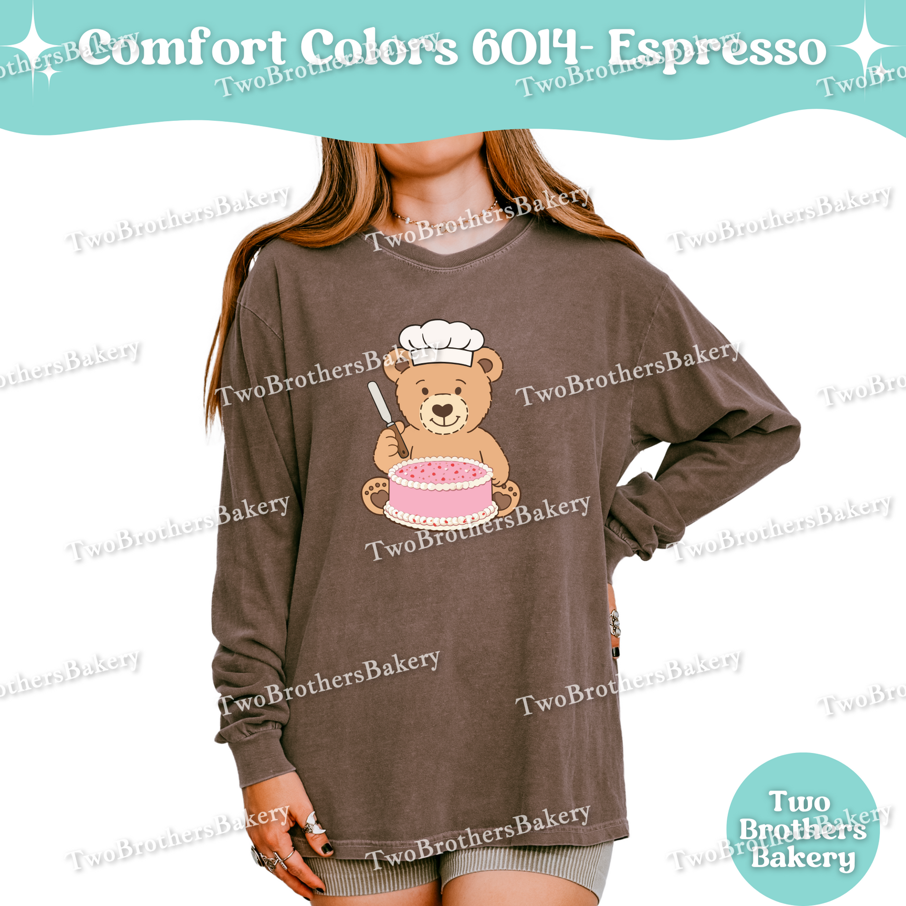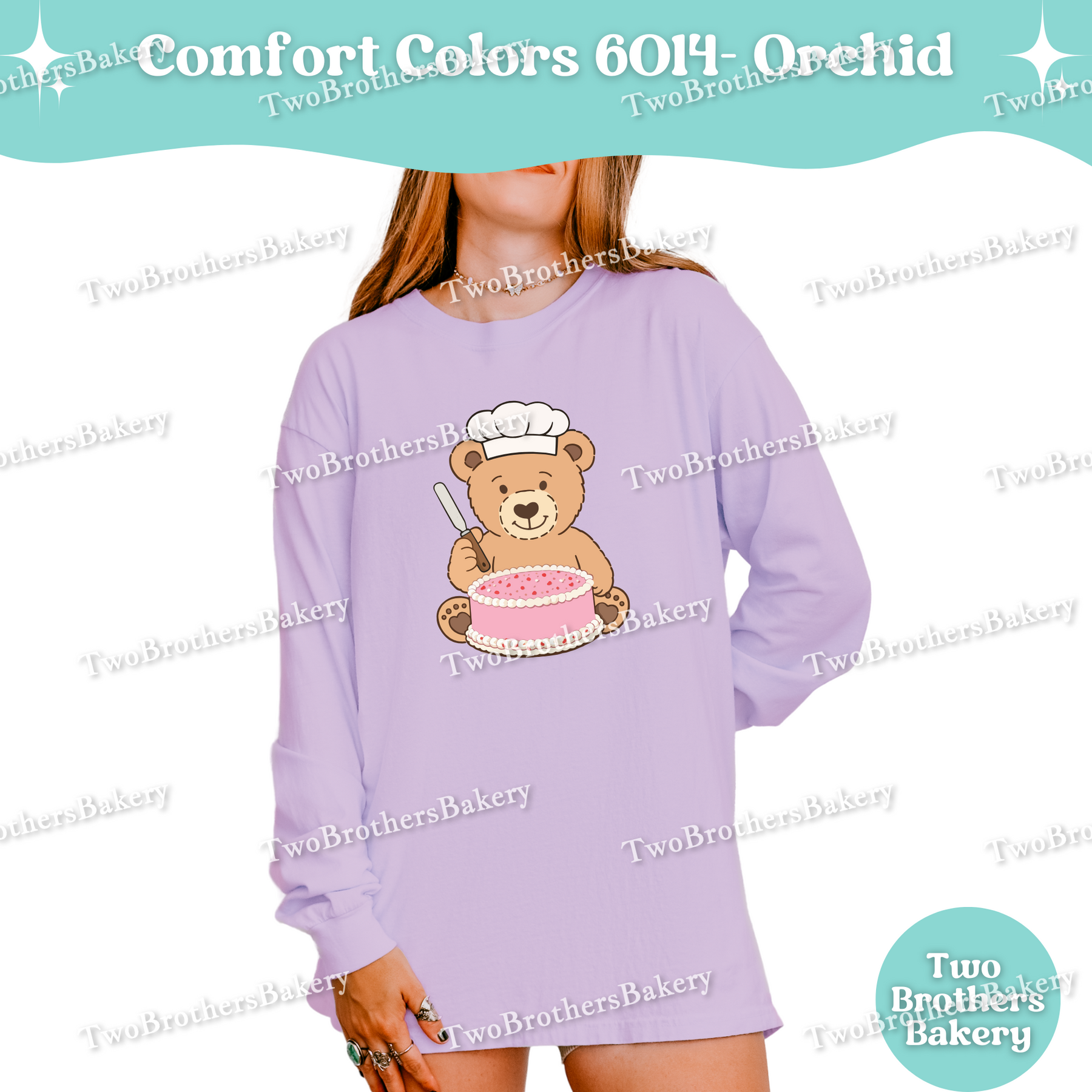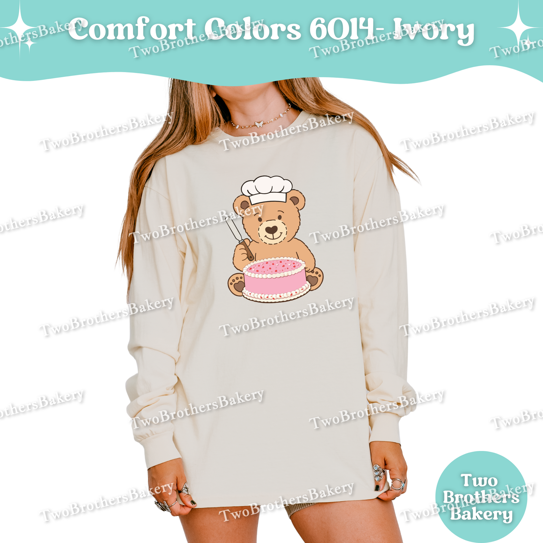 Printed on Comfort Colors 6014 unisex long sleeve shirts, this piece has that soft, lived-in feel Comfort Colors is known for. It’s relaxed, breathable, and ideal for long baking days, cool mornings at markets, or cozy nights spent prepping orders. While it fits beautifully into a Valentine’s collection, the cake-forward design makes it easy to wear year-round — because cake season never really ends.