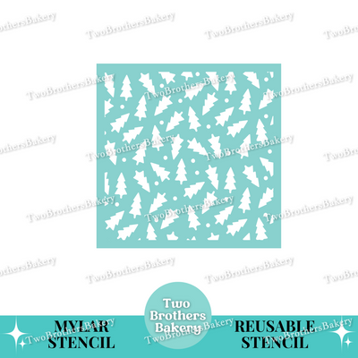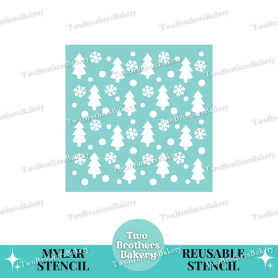Christmas Trees & Snowflakes Pattern Stencil for Bakers, 5.5in Mylar Reusable Stencil, Holiday Background Design for Cookies & Macarons