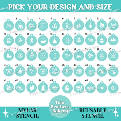 Christmas Stencils for Bakers & Crafters, 50 Holiday Designs, Macaron, Cookie, Stencil Genie & 10x10 Sizes, Reusable Mylar Stencil for Baking, Decorating & Crafts