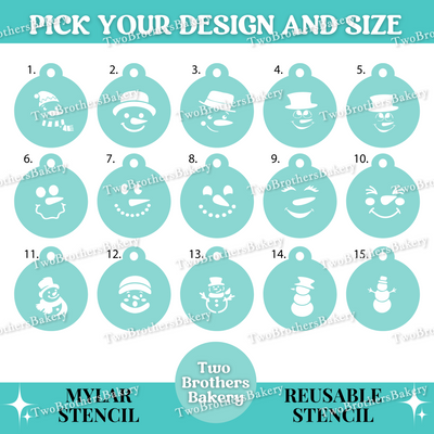 Snowman Face Stencil Collection for Bakers, 7mil Mylar Reusable Stencils, Choose Design & Size, Perfect for Cookies & Macarons