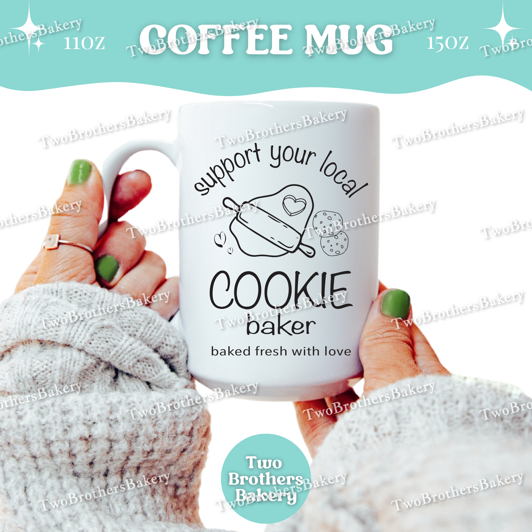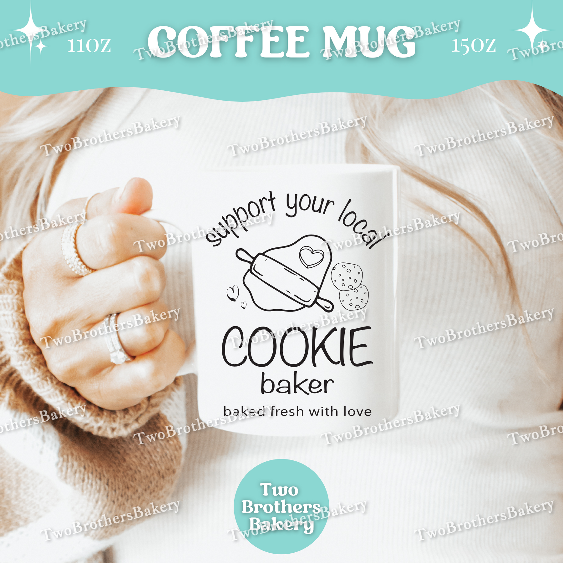This charming coffee mug is made for those who pour their heart (and a whole lot of butter) into every batch. Featuring a sweet, hand-drawn design with a rolling pin, cookies, and the phrase Support Your Local Cookie Baker – Baked Fresh With Love,” this mug celebrates small baking businesses and the talented bakers behind them.