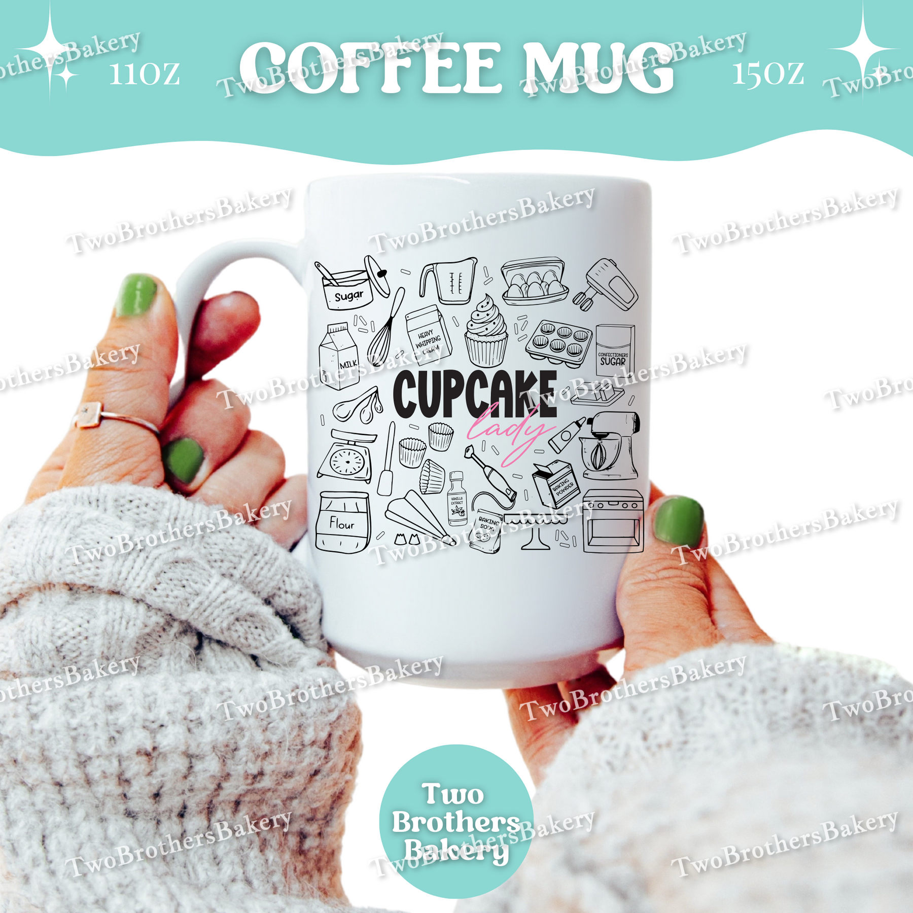 Printed on a classic white ceramic mug using permanent sublimation, this design won’t peel, crack, or fade. It’s microwave and dishwasher safe, making it a reliable staple in any busy baking kitchen.
