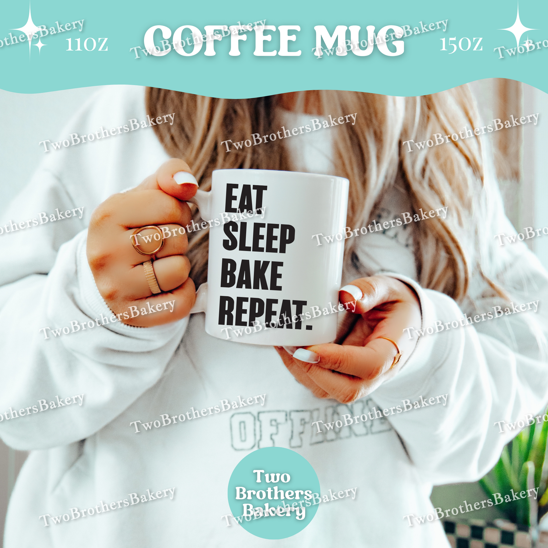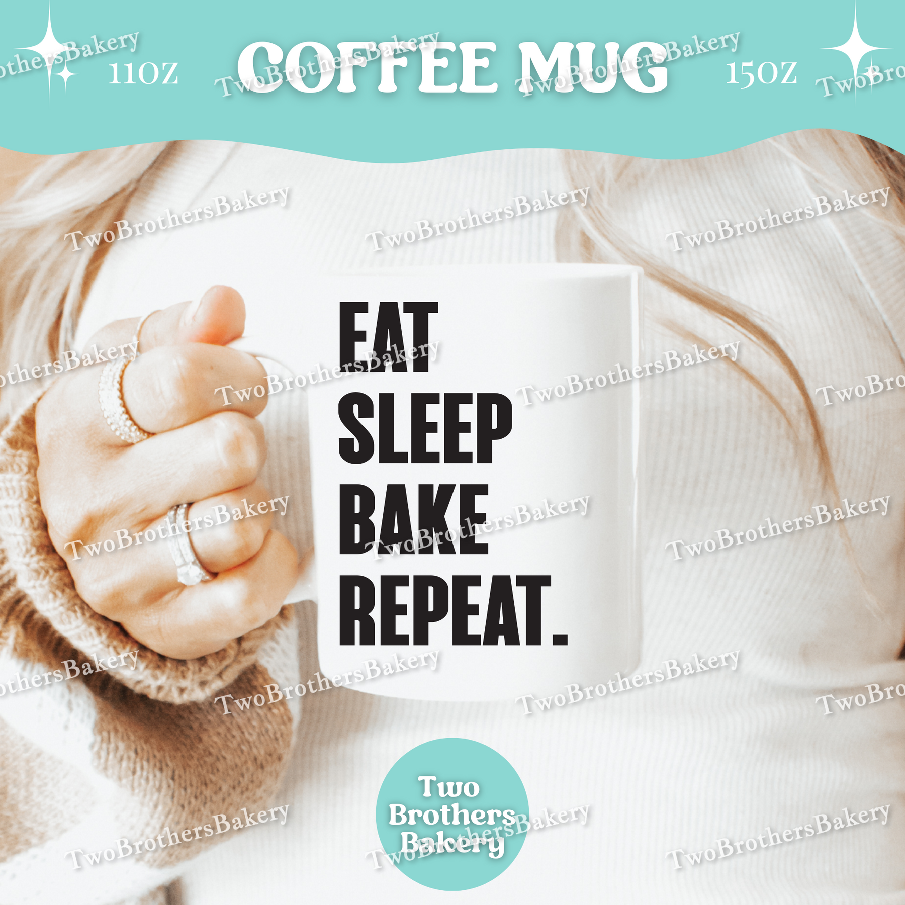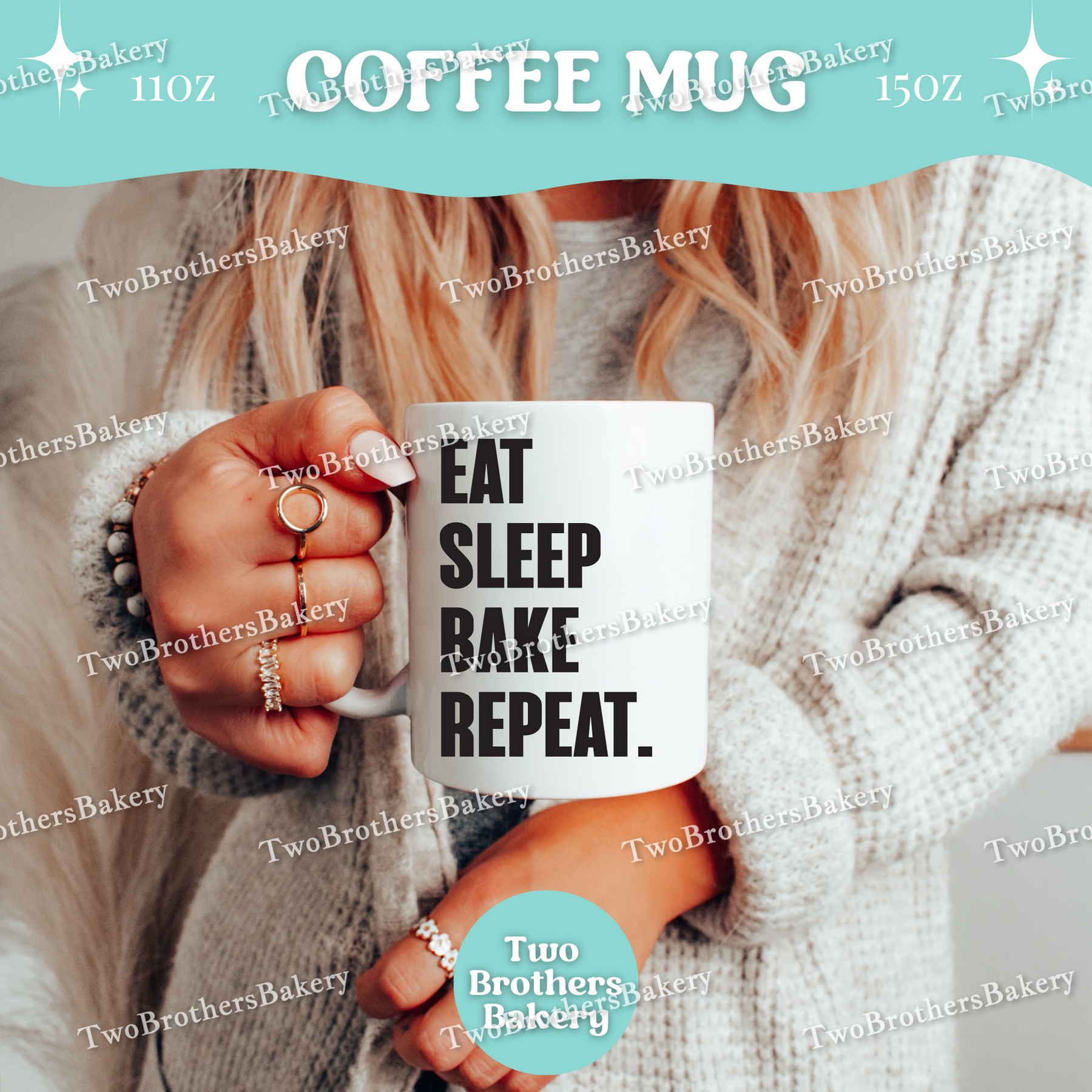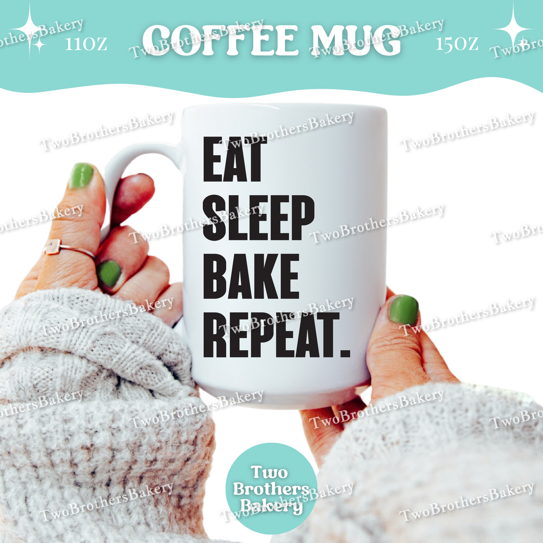 Featuring the phrase “Eat. Sleep. Bake. Repeat.”, this clean, stacked design is equal parts motivation and reality. It’s made for early mornings, long bake days, late nights, and every coffee refill in between. Whether you’re running a home bakery, baking for fun, or chasing orders nonstop, this mug fits right into your daily rhythm.