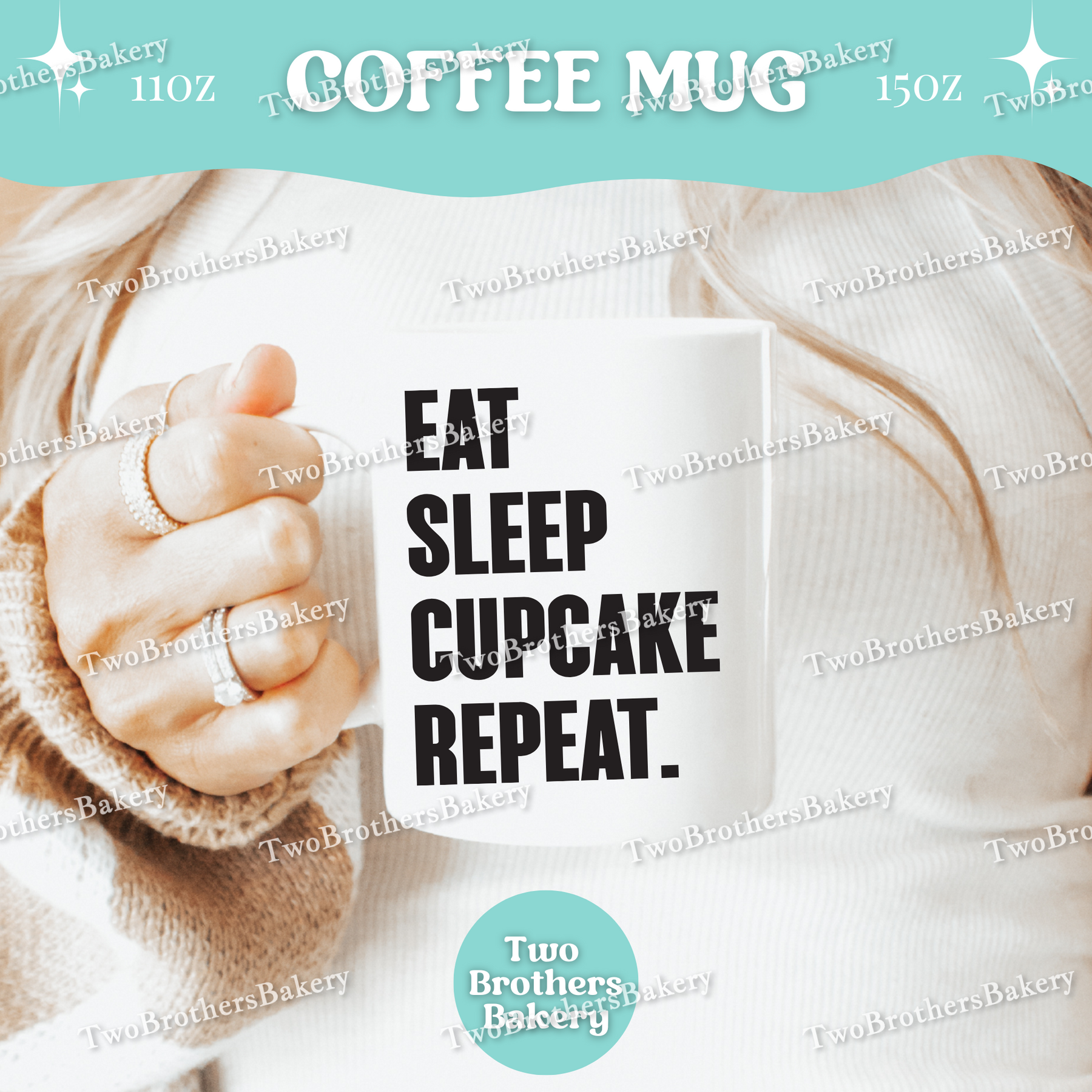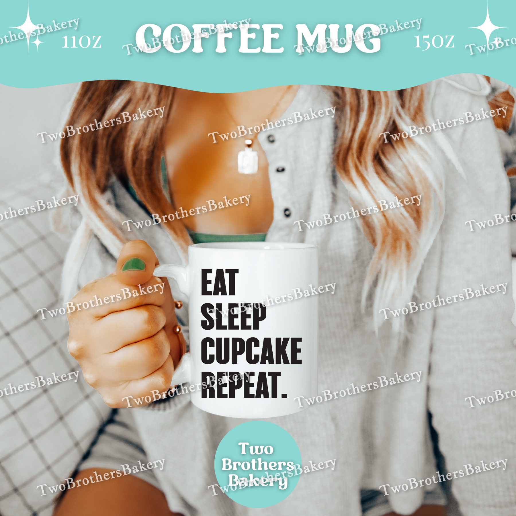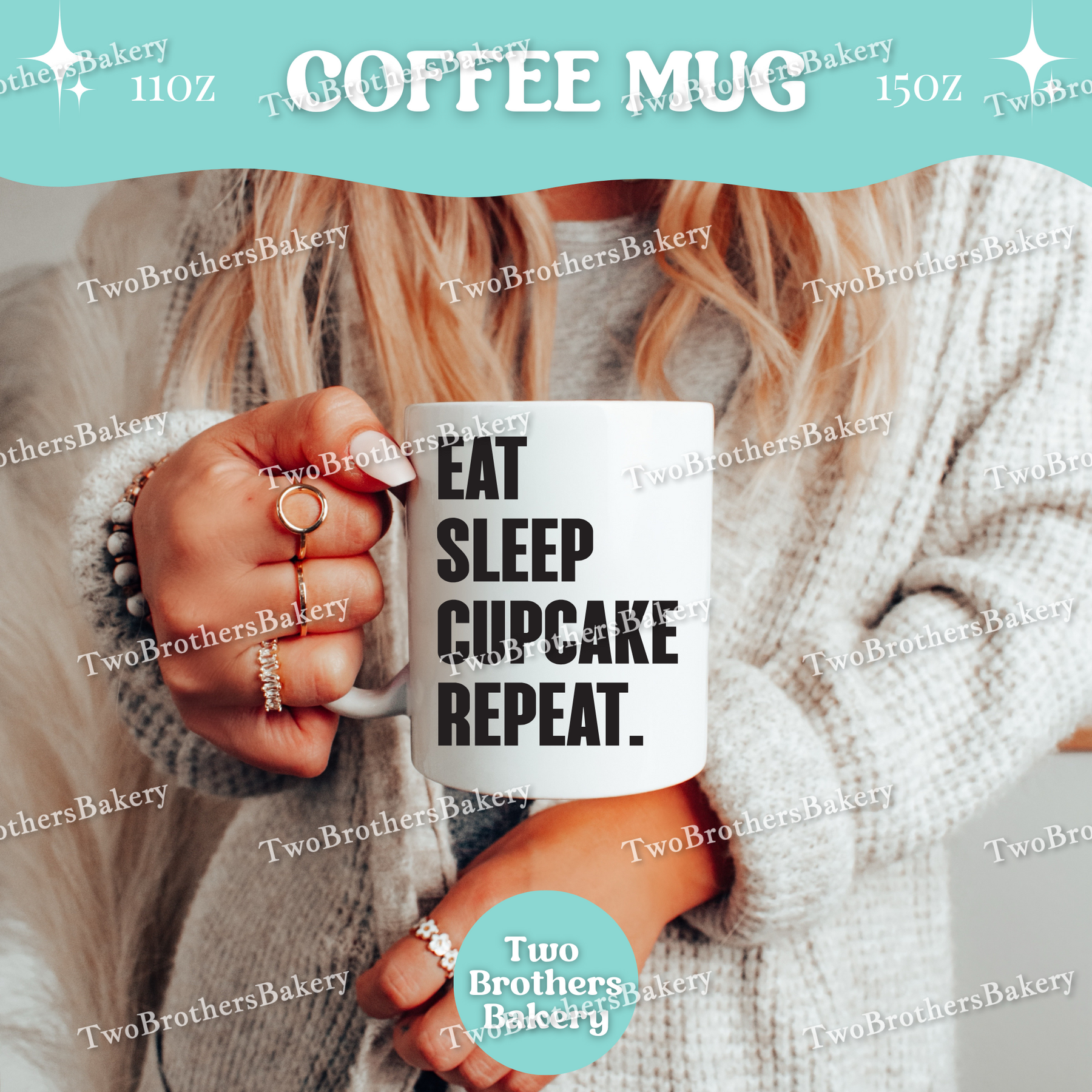 Eat Sleep Cupcake Repeat Coffee Cup, White Ceramic Mug