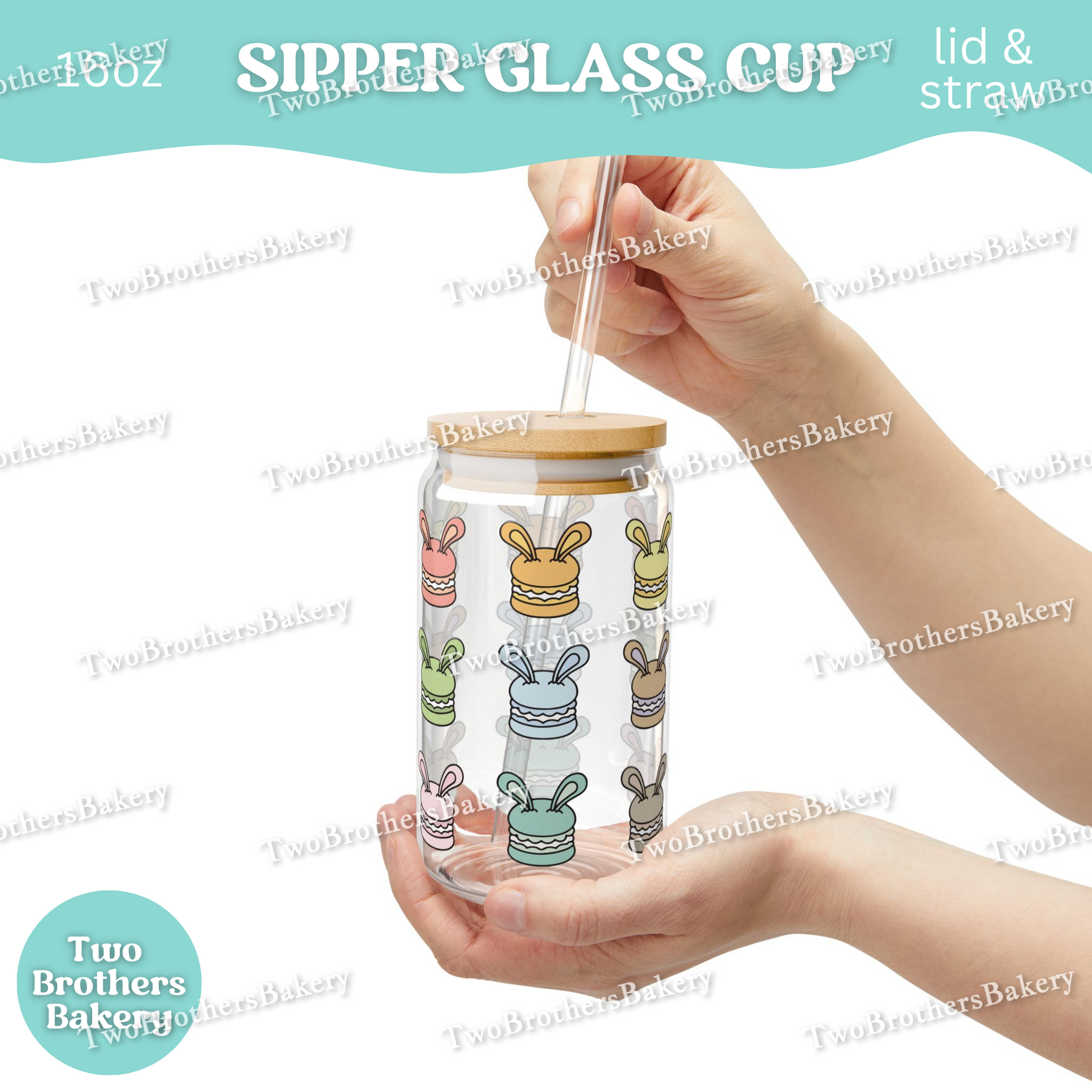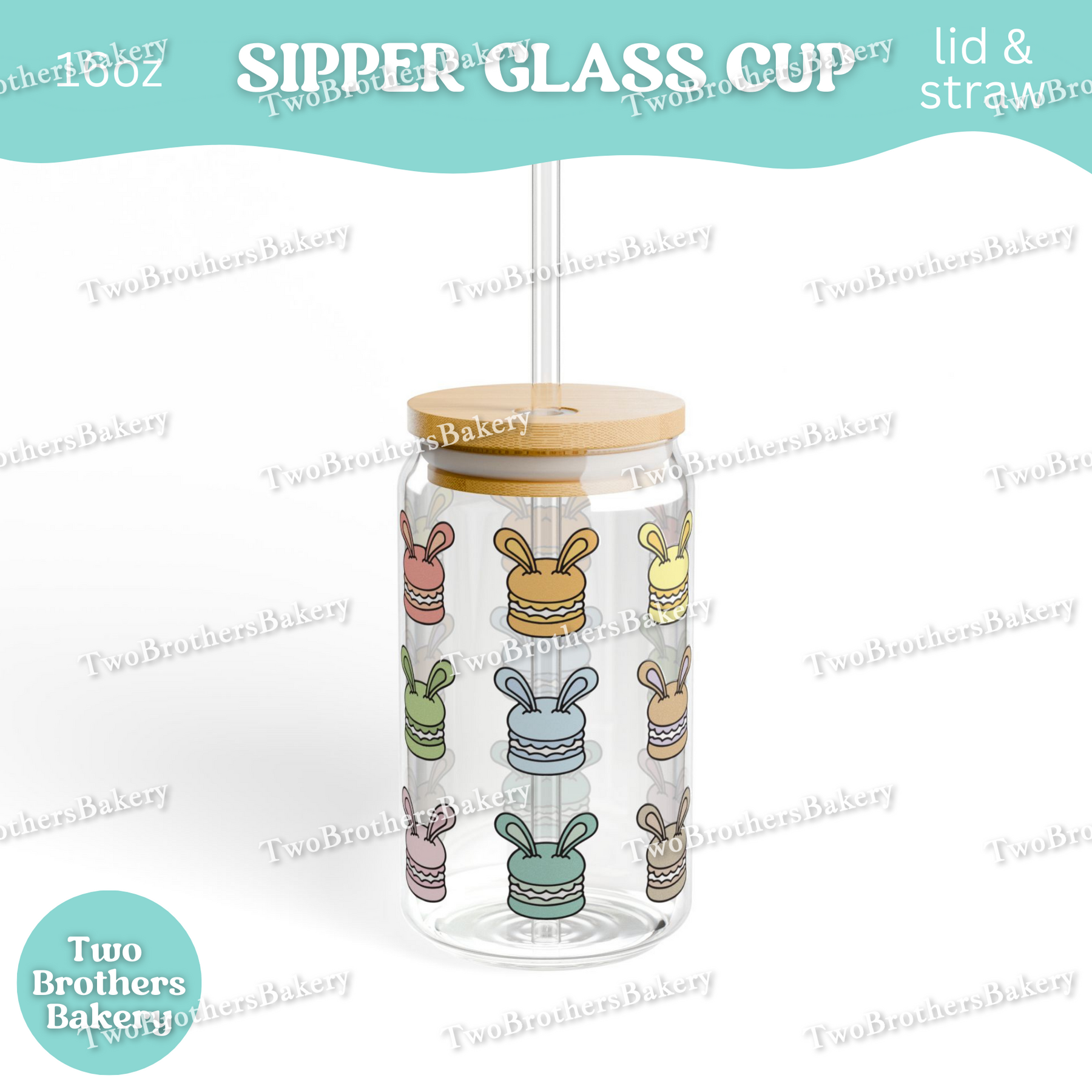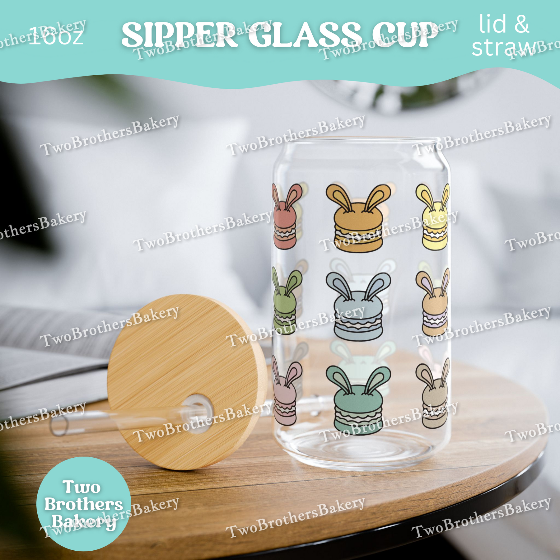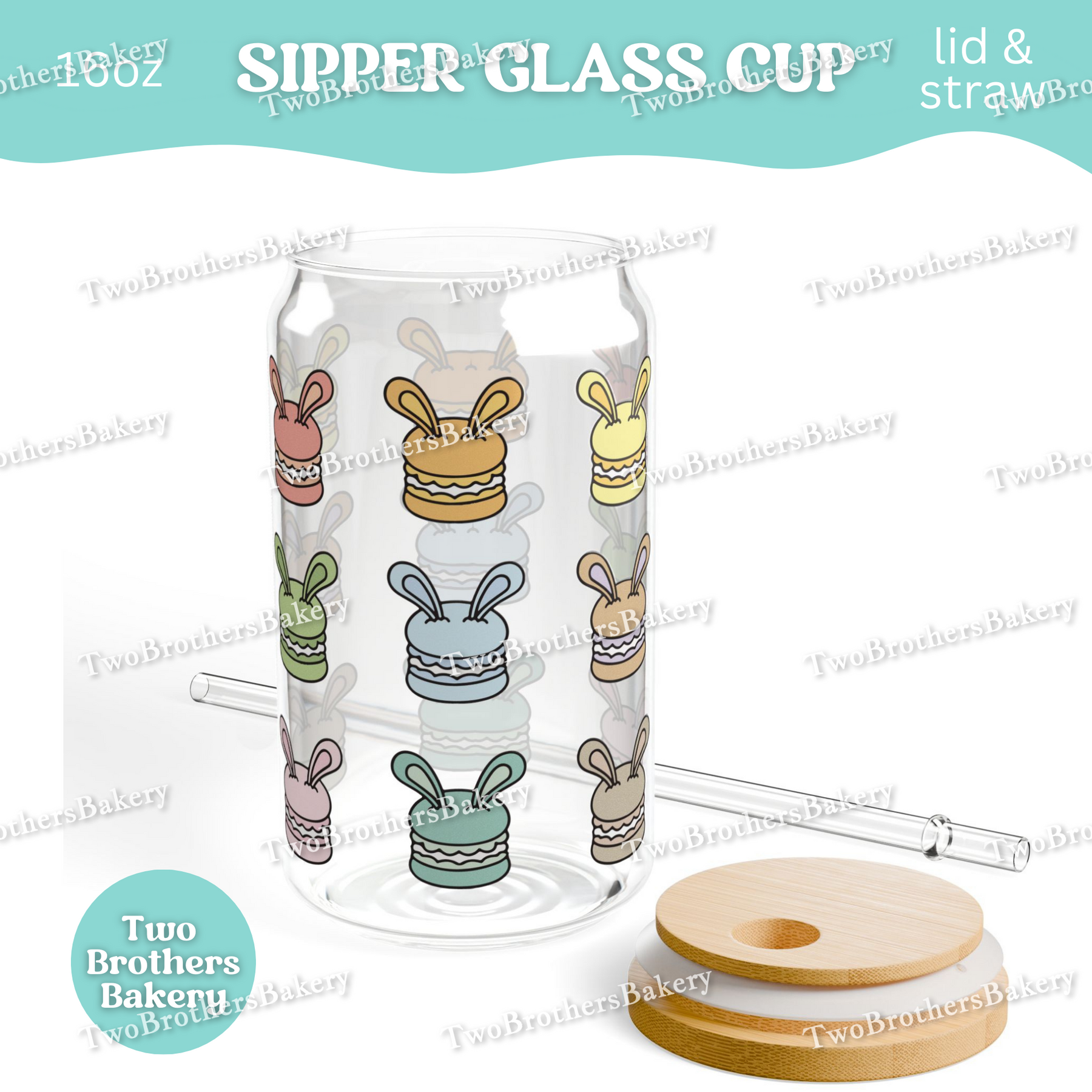 Whether you’re piping shells, filling macarons, or packaging orders for your next pop-up, this rainbow bunny macaron glass adds a little joy to every sip.