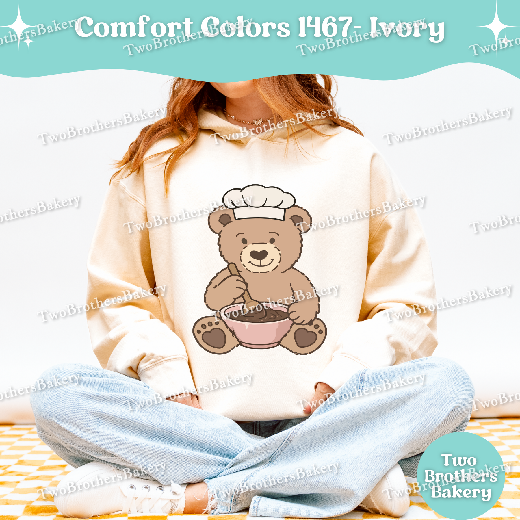 Baking Bear Hoodie, Comfort Colors 1467 Lightweight Hooded Sweatshirt, Valentines Collection