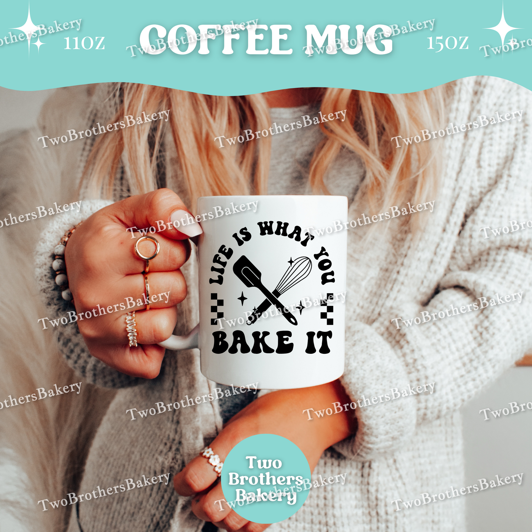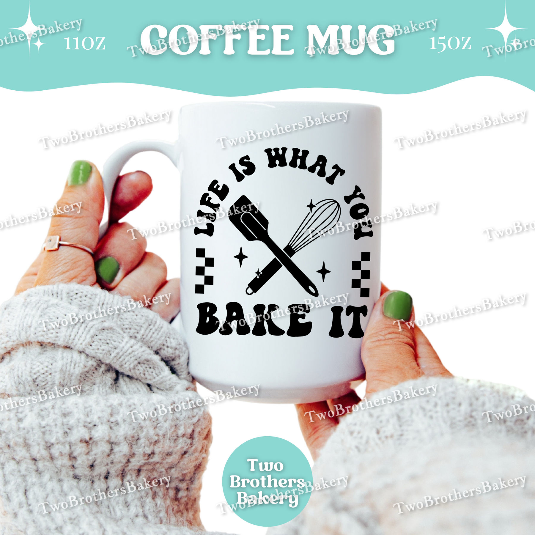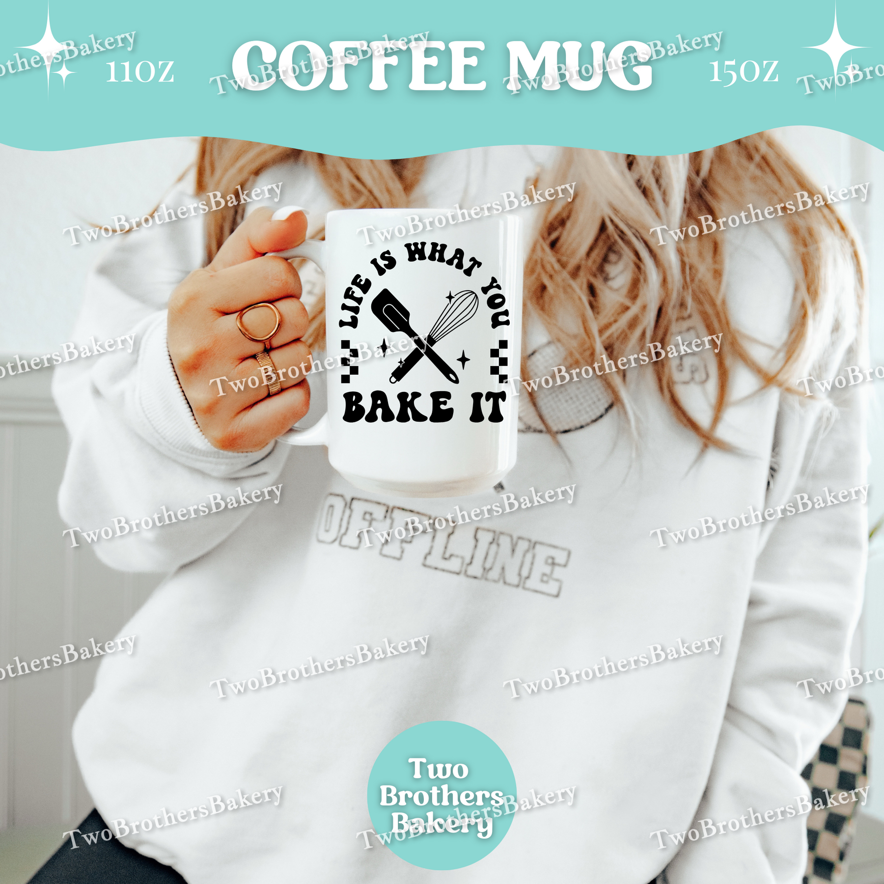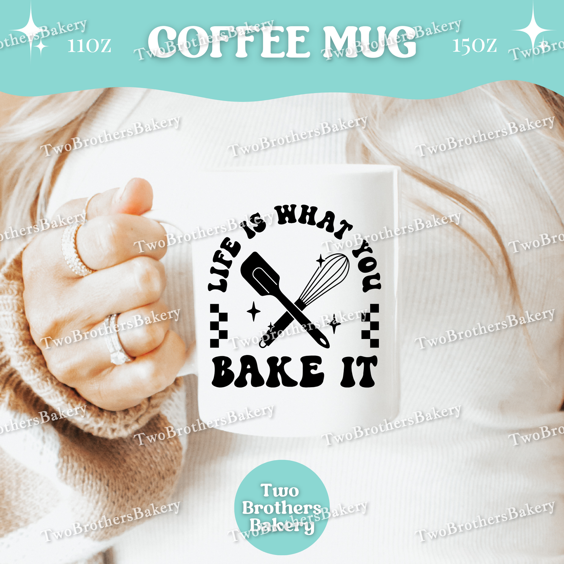 Encouraging, a little sassy, and perfectly on brand for bakers who turn stress into something sweet, the “Life Is What You Bake It” coffee mug is a daily reminder that no matter what the day throws at you, you’ve got the tools to make it better. With bold lettering, playful baking icons, and a pun that hits just right, this design brings motivation straight to your morning coffee routine.