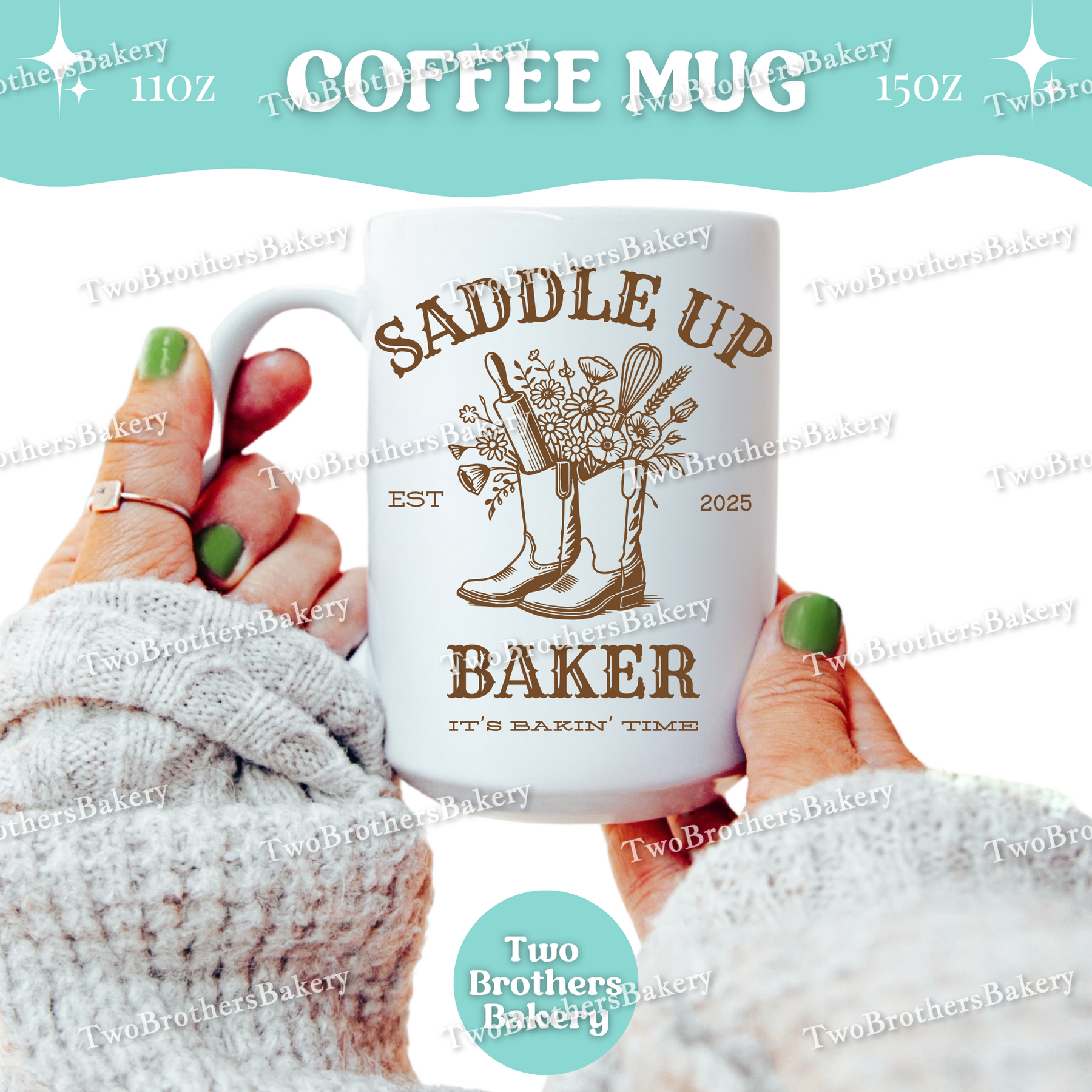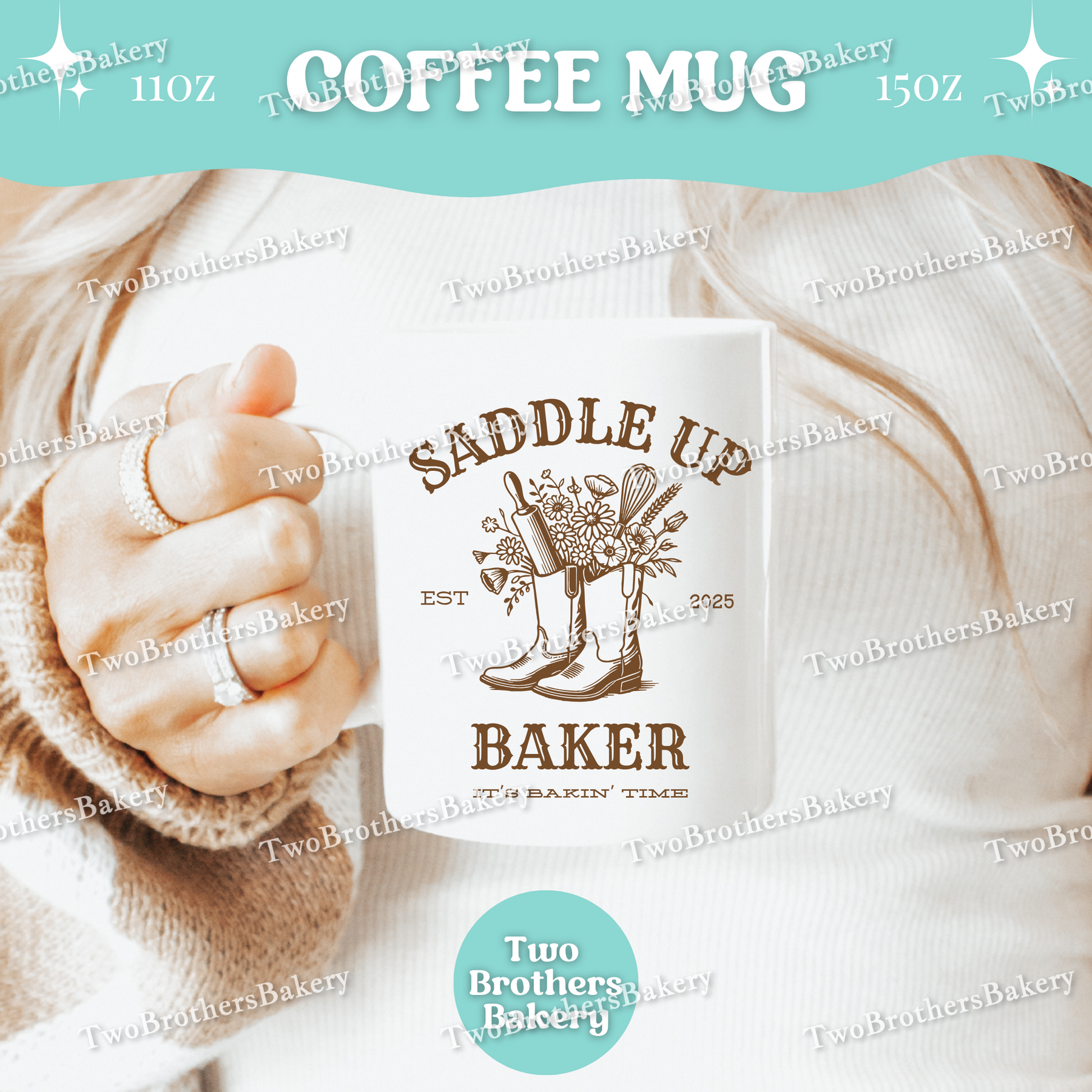 Featuring a “Saddle Up Baker” design with charming western-inspired artwork, this mug blends rustic vibes with baking pride. It’s perfect for the baker who’s up before sunrise, apron on, coffee in hand—ready to get to work. Whether you’re piping, proofing, mixing, or packaging orders, this mug is made to keep you company through every bake.