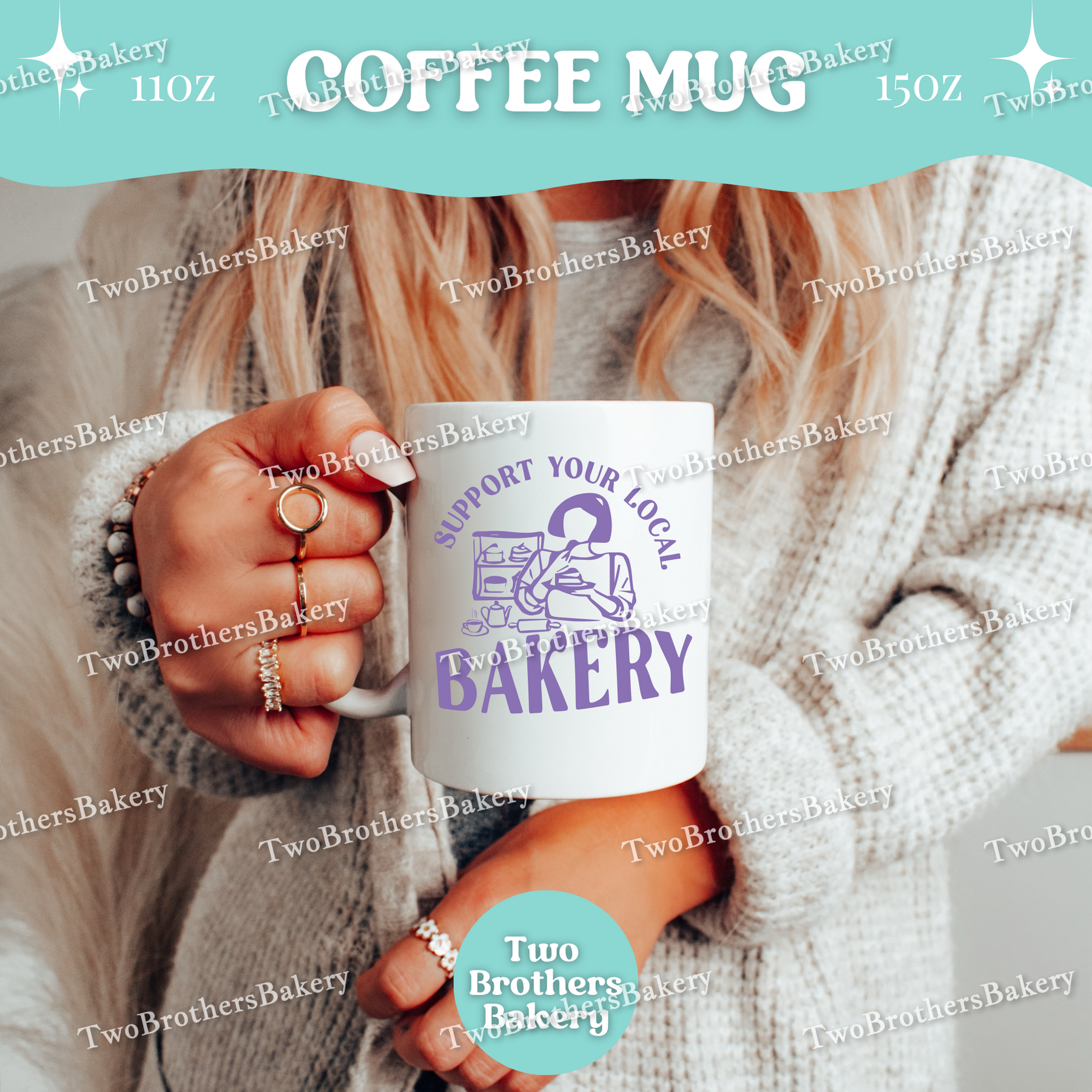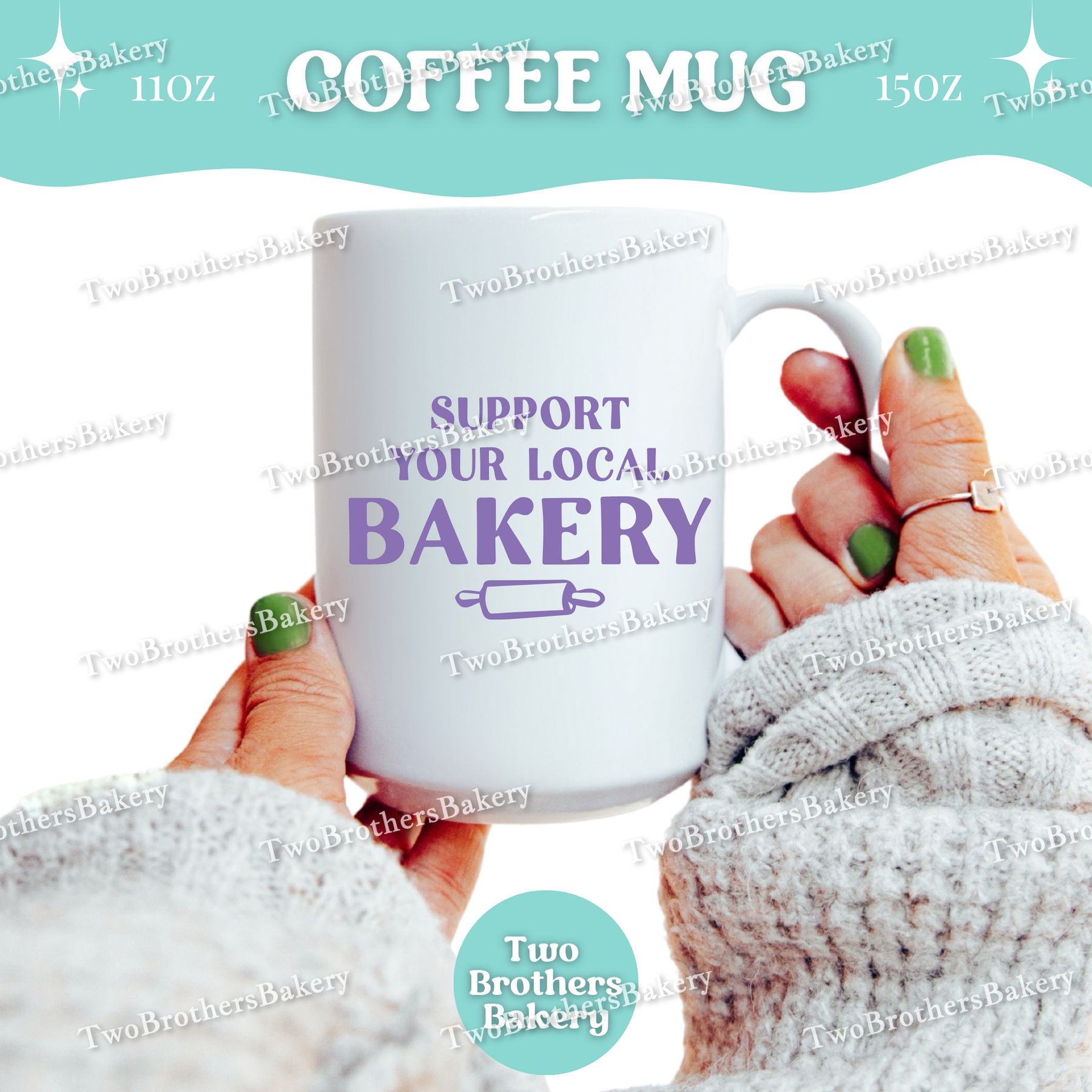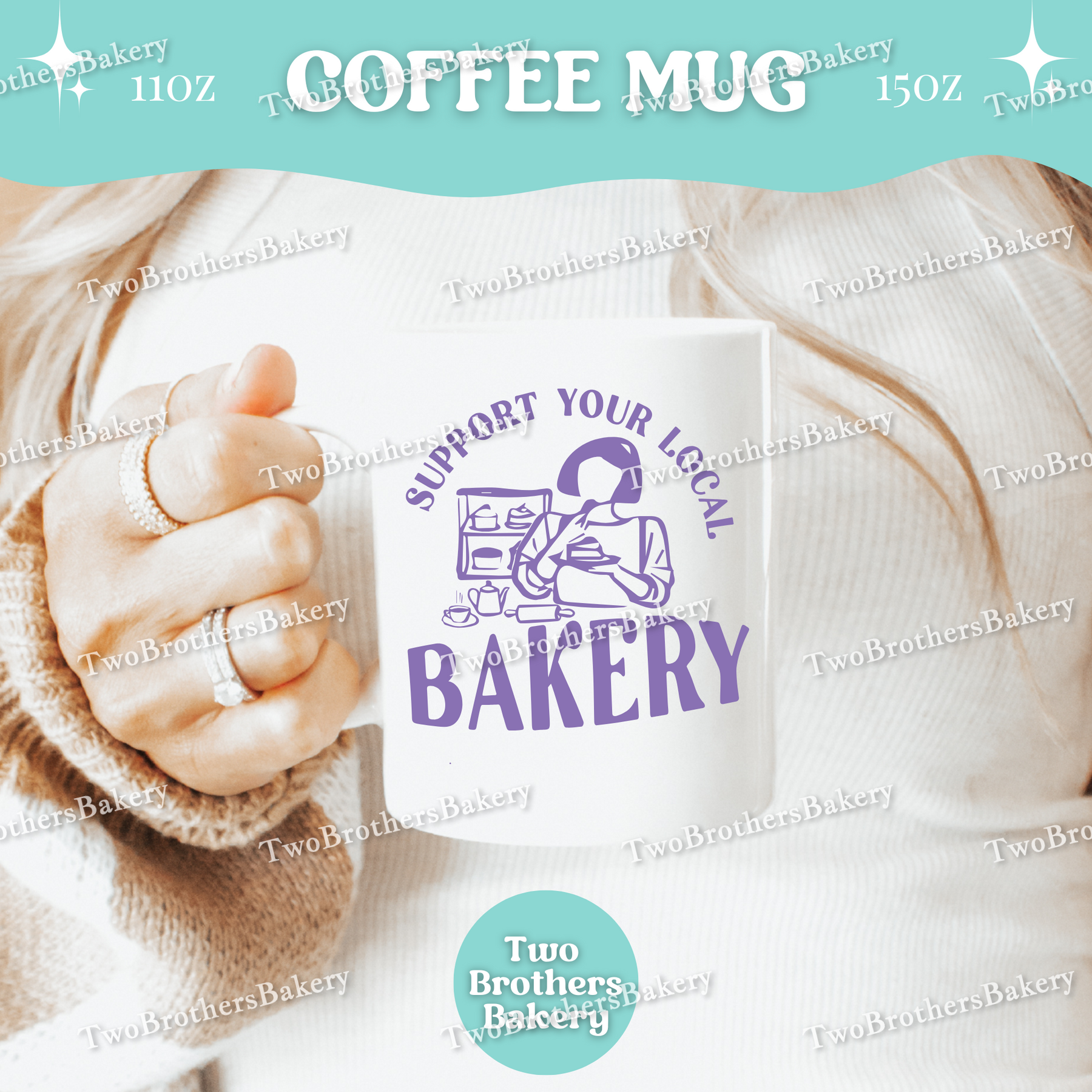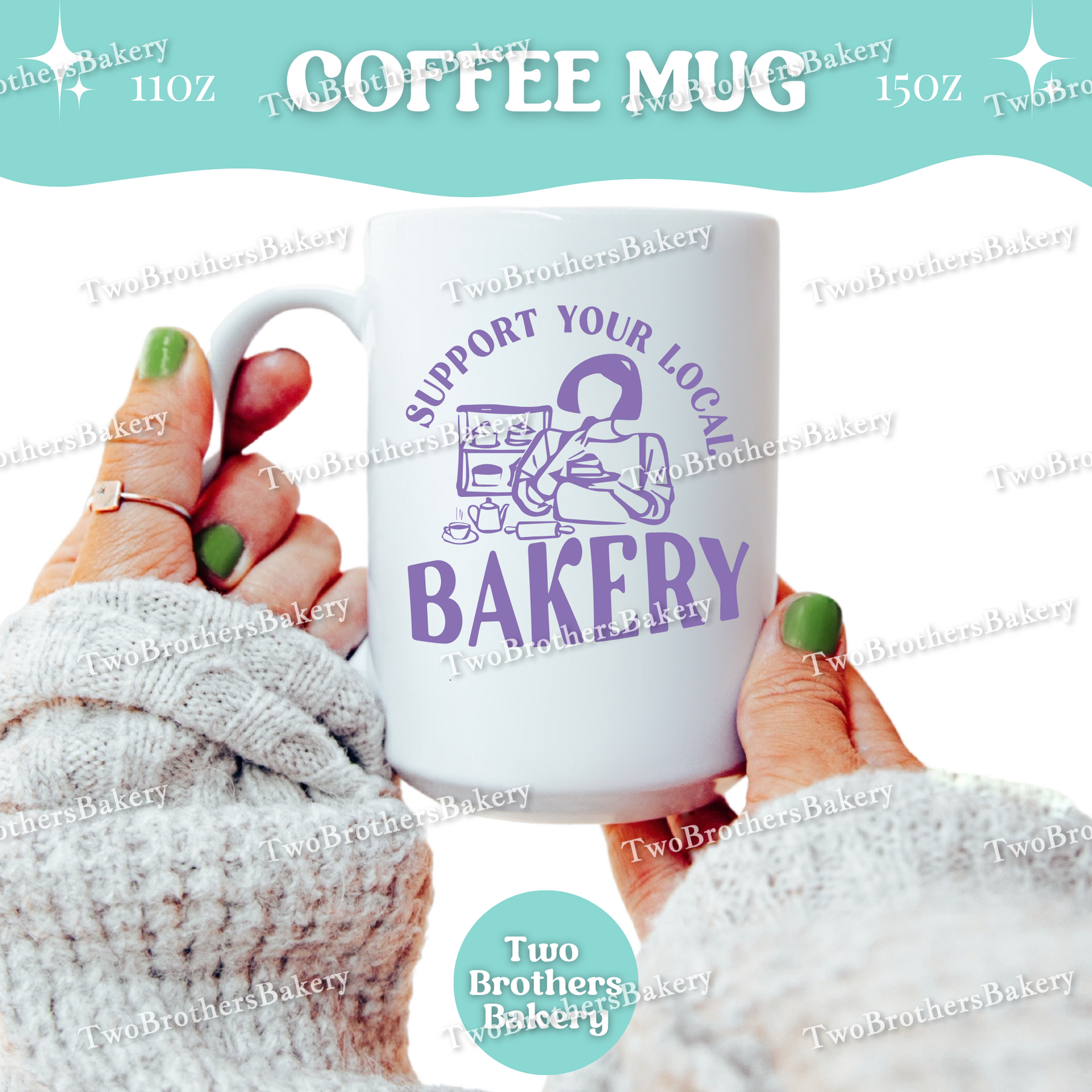 This double-sided coffee mug is a proud, cozy statement piece for anyone who stands behind their local bakery community—whether you are the baker or the loyal supporter.