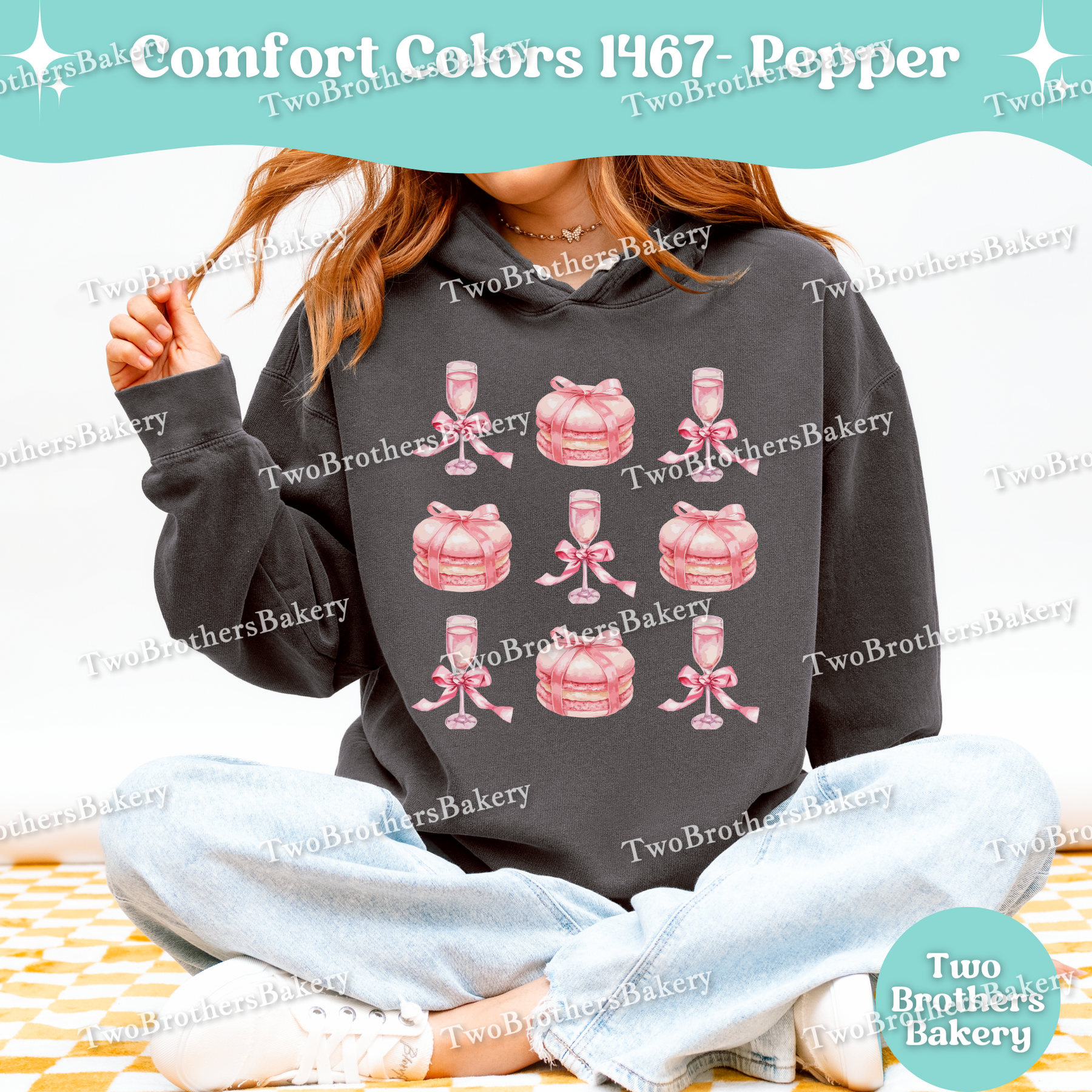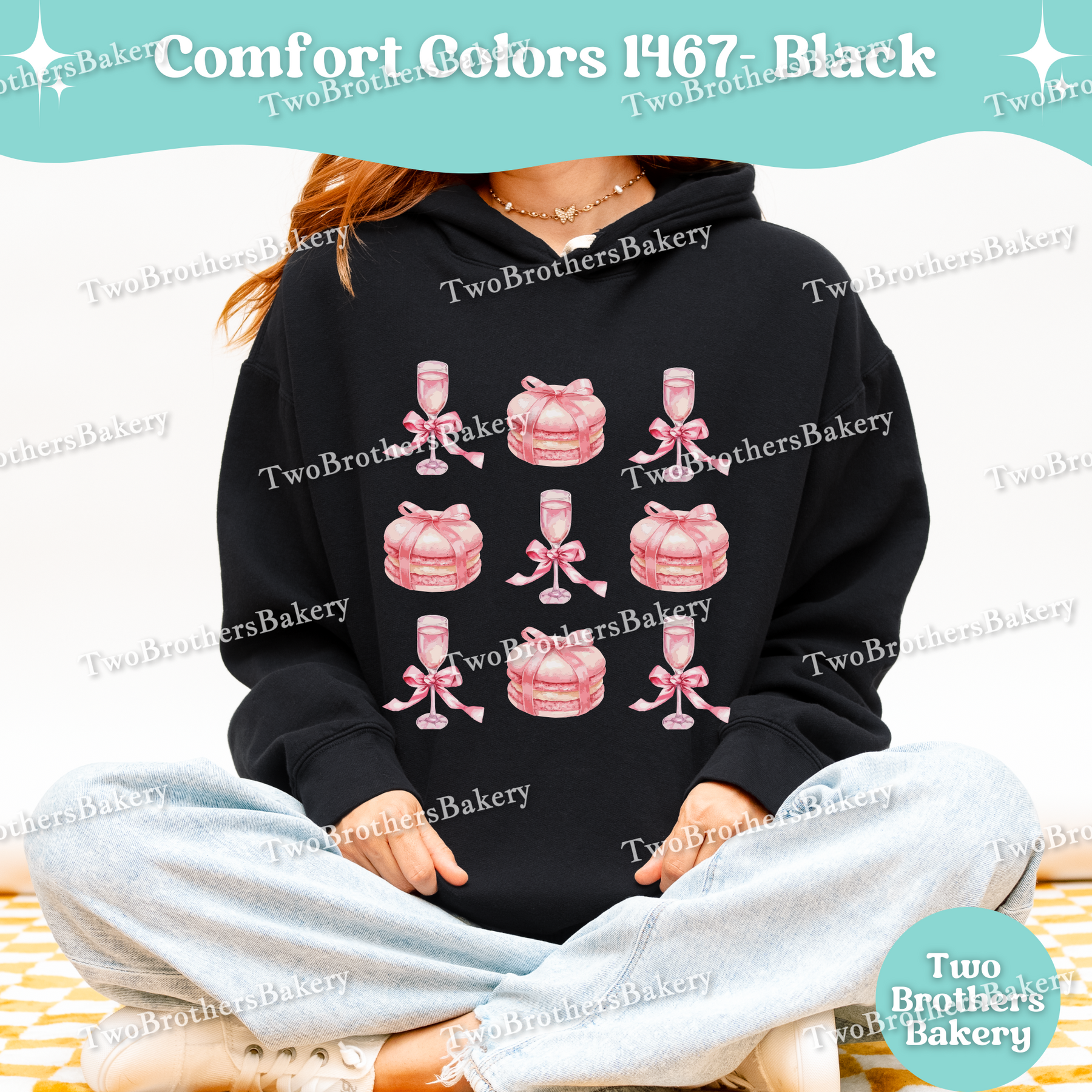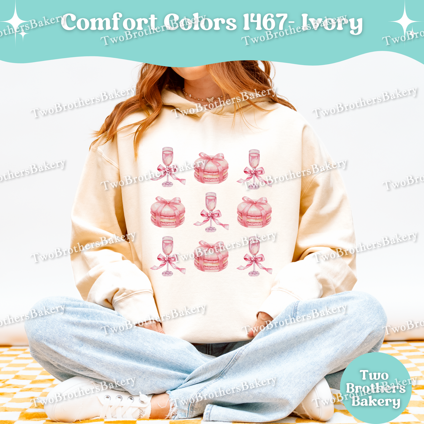 Champagne Coquette Bow Macarons Hoodie, Comfort Colors 1467 Lightweight Hooded Sweatshirt, Valentines Collection