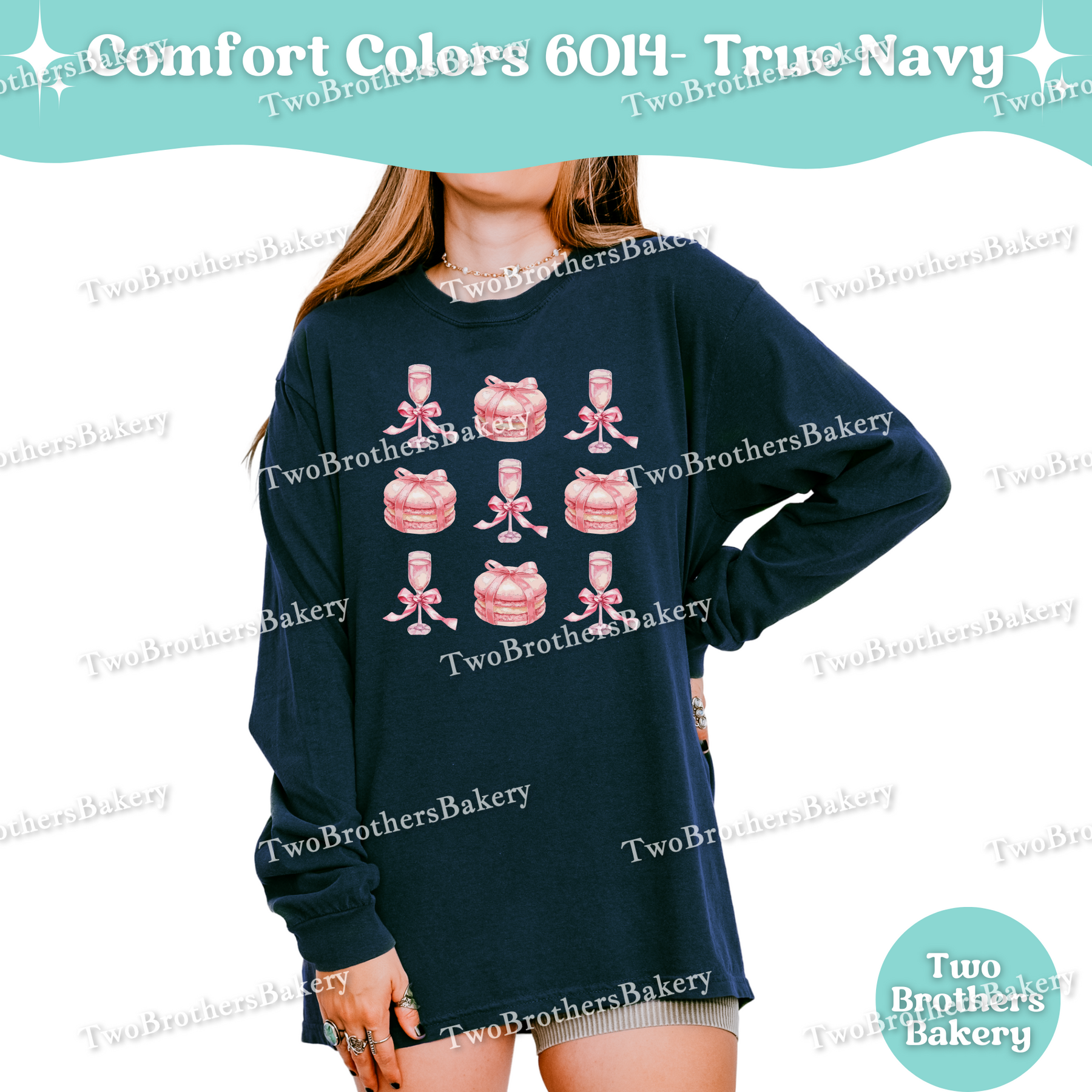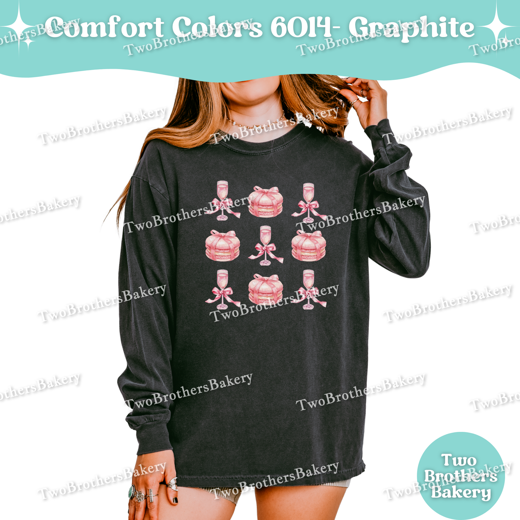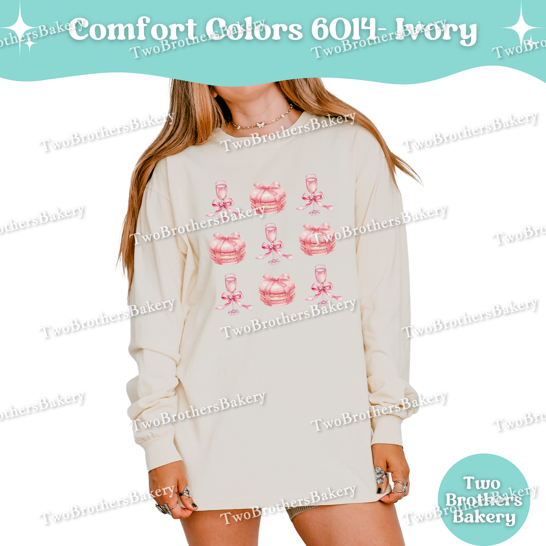Printed on Comfort Colors 6014 unisex long sleeve shirts, this piece has that signature garment-dyed softness with a relaxed, lived-in feel. It’s cozy enough for long prep days and early mornings, yet elevated enough for pop-ups, markets, tastings, Galentine’s celebrations, or simply dressing up your everyday baking uniform. While it shines during Valentine’s season, the timeless pink-on-neutral aesthetic makes it a year-round favorite for dessert lovers with a soft spot for pretty details.