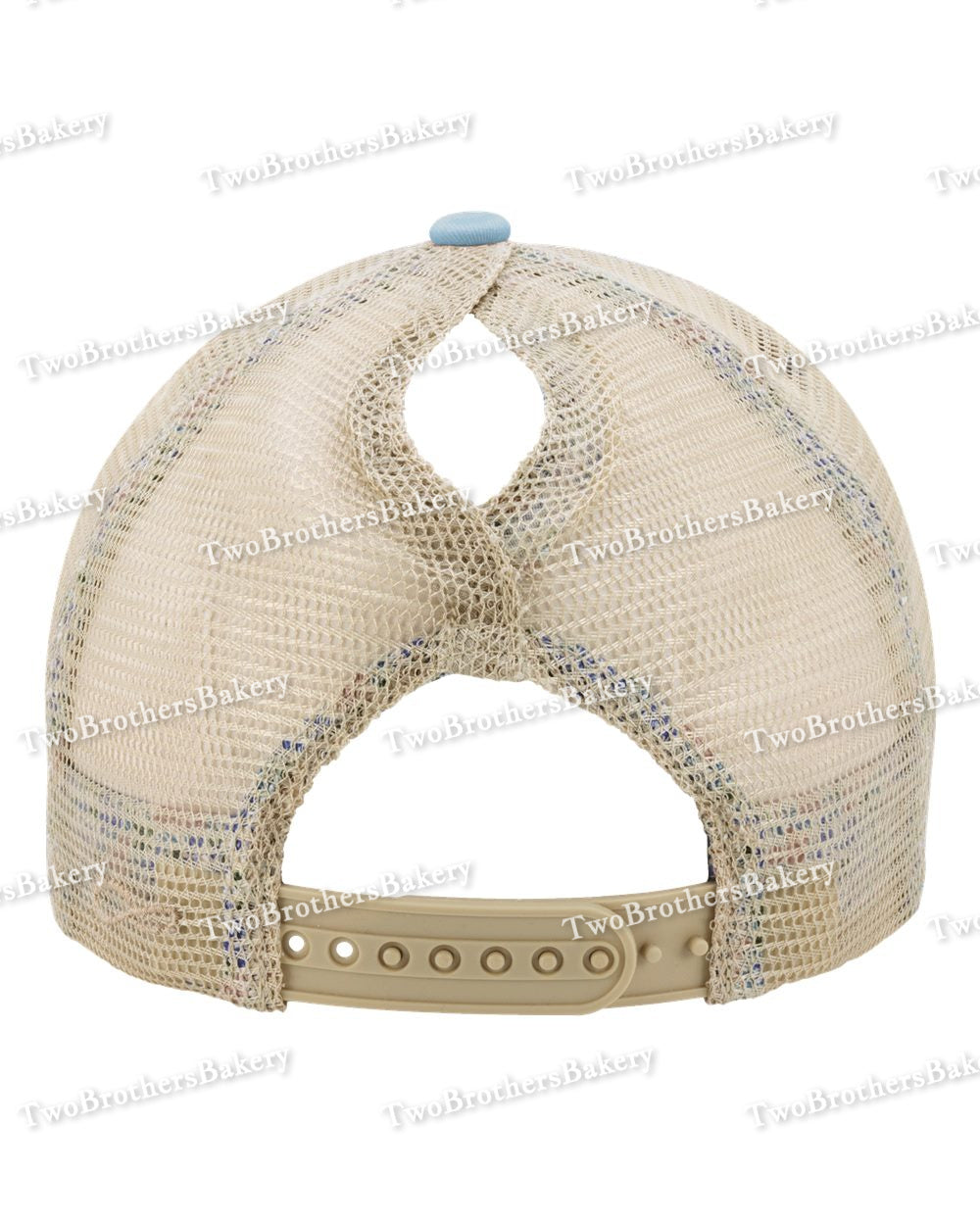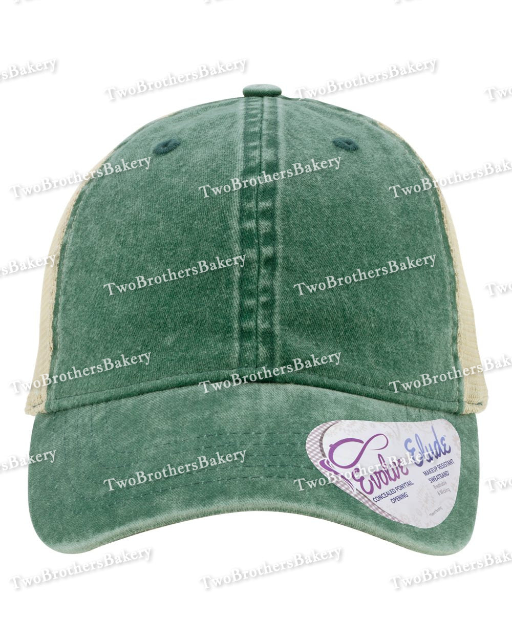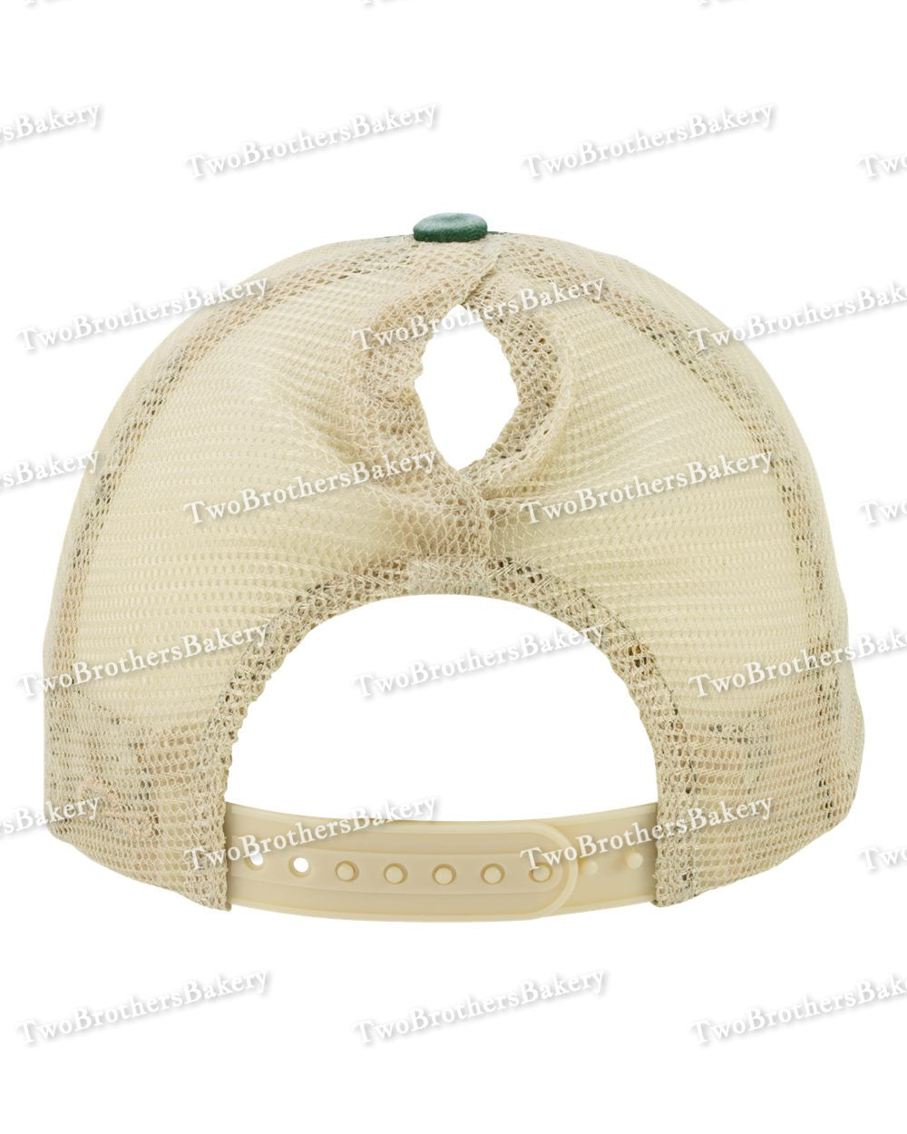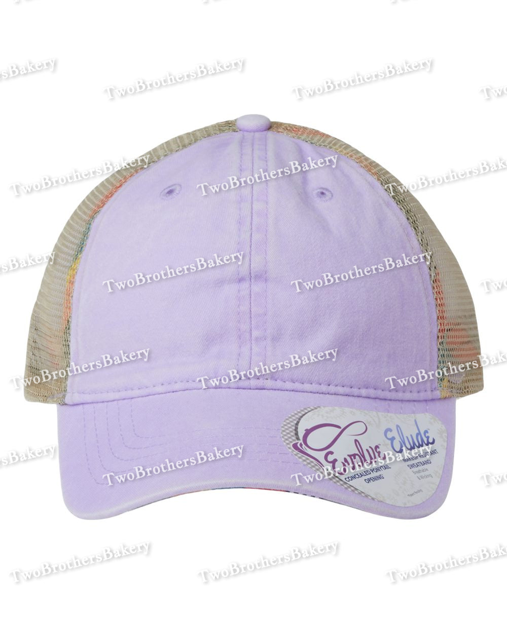This playful design is embroidered in crisp white thread and centered on the front of the Infinity Women’s Washed Ponytail Mesh-Back Cap, giving it that clean, elevated look with a wink of personality.