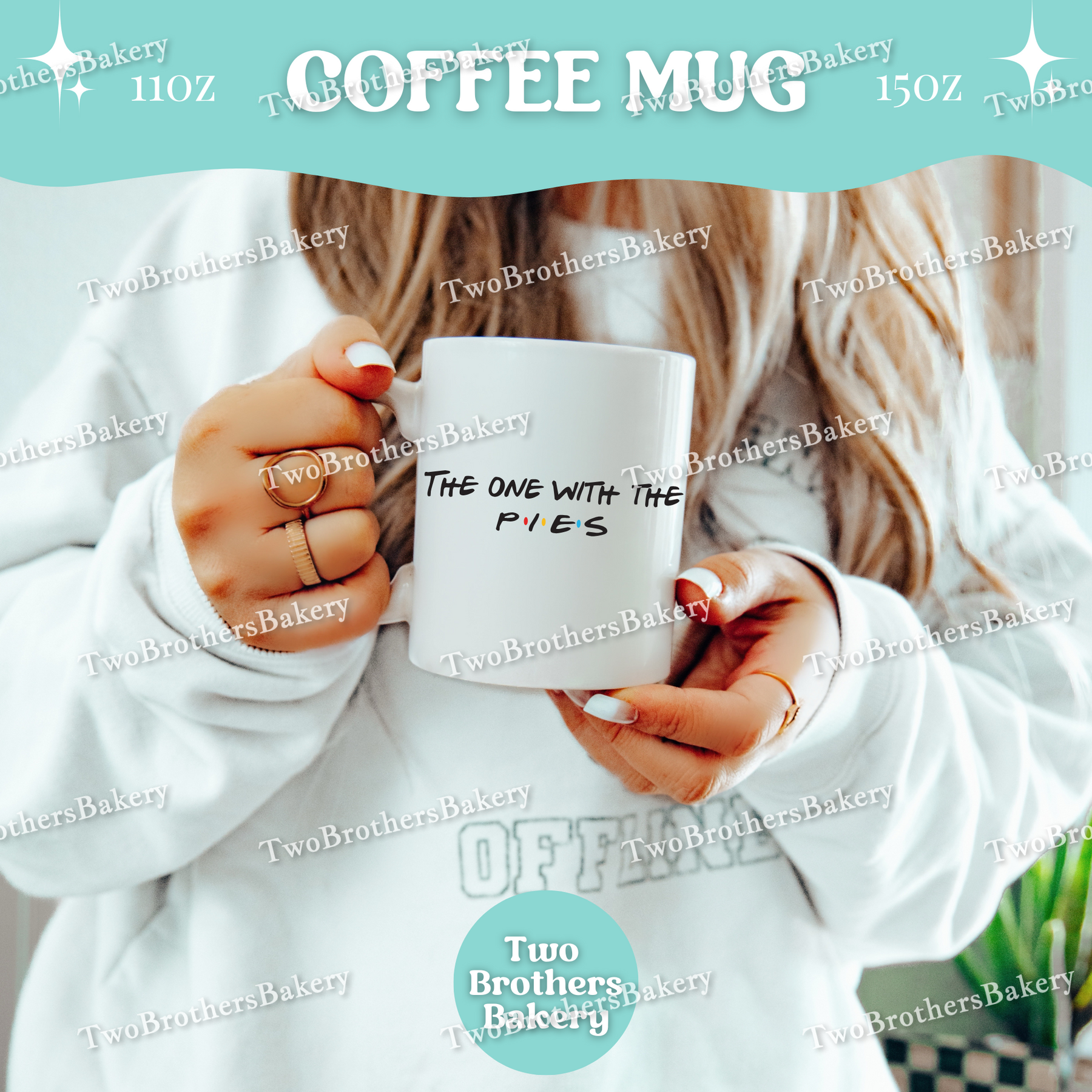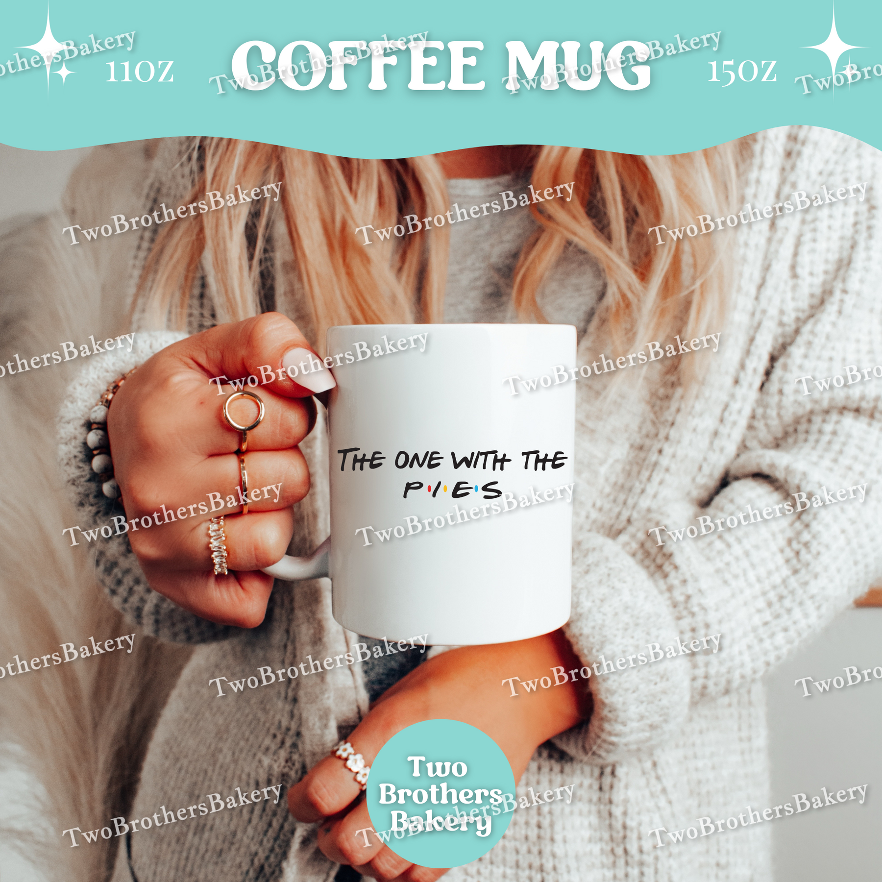 This Friends-inspired coffee mug is a fun, cozy nod to the iconic episode titles we all love—reimagined for pie bakers and pie lovers everywhere. Featuring the phrase “The One With the Pies” in a handwritten-style font with subtle, colorful dot accents, this design is instantly recognizable to fans while staying playful, minimal, and baking-forward.