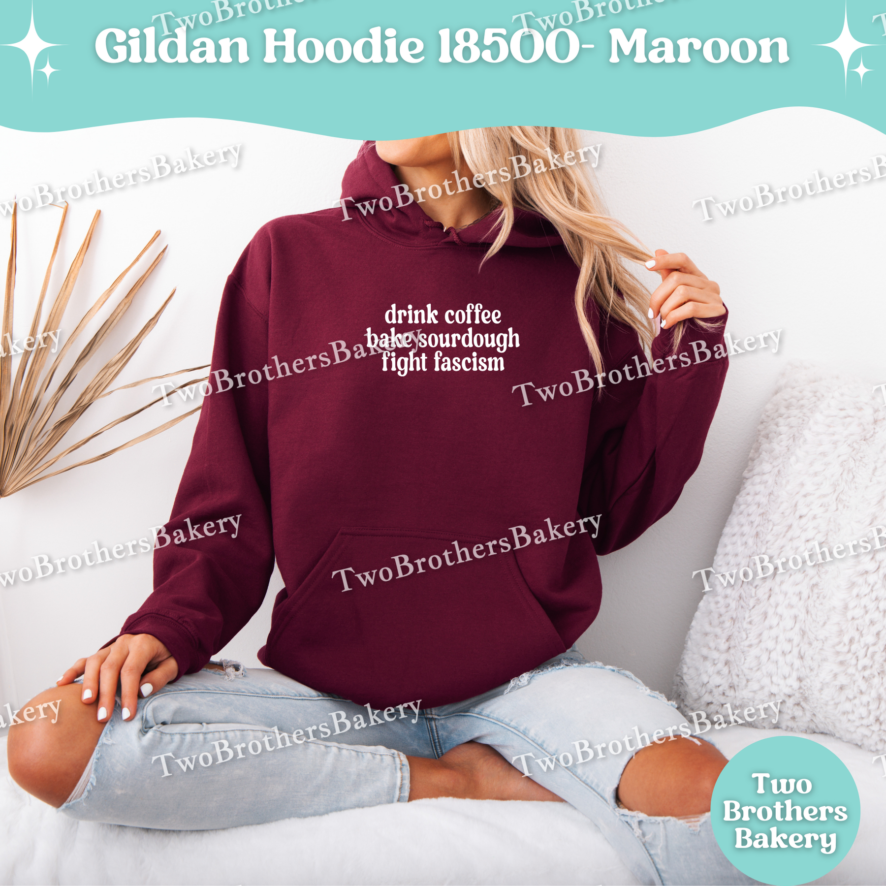 The Drink Coffee, Bake Sourdough, Fight Fascism hoodie is a bold, unapologetic statement for sourdough bakers who know that patience, persistence, and principles matter—both in the kitchen and beyond. Clean typography and a minimalist layout keep the message sharp and intentional, letting your love of sourdough and your commitment to human rights speak clearly.