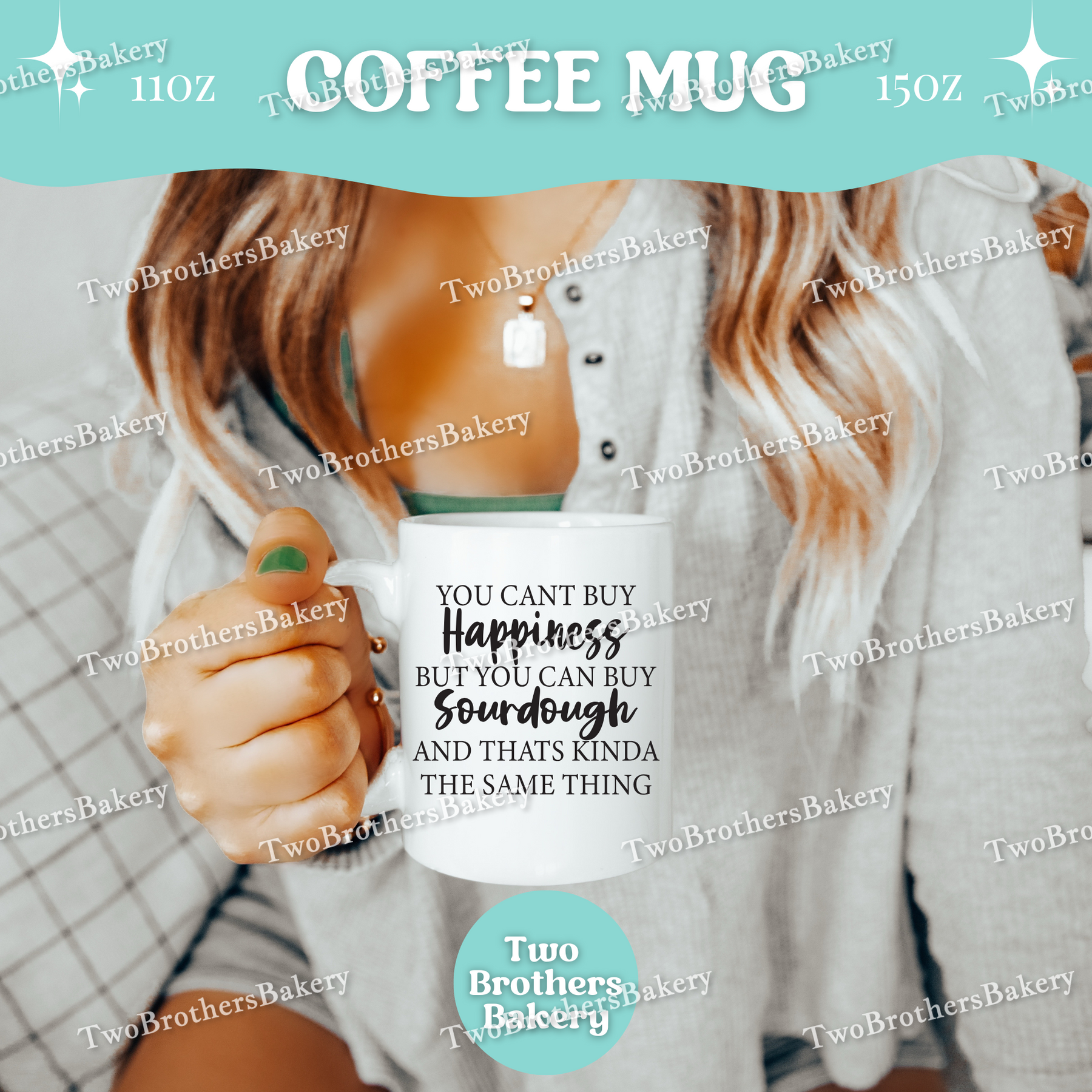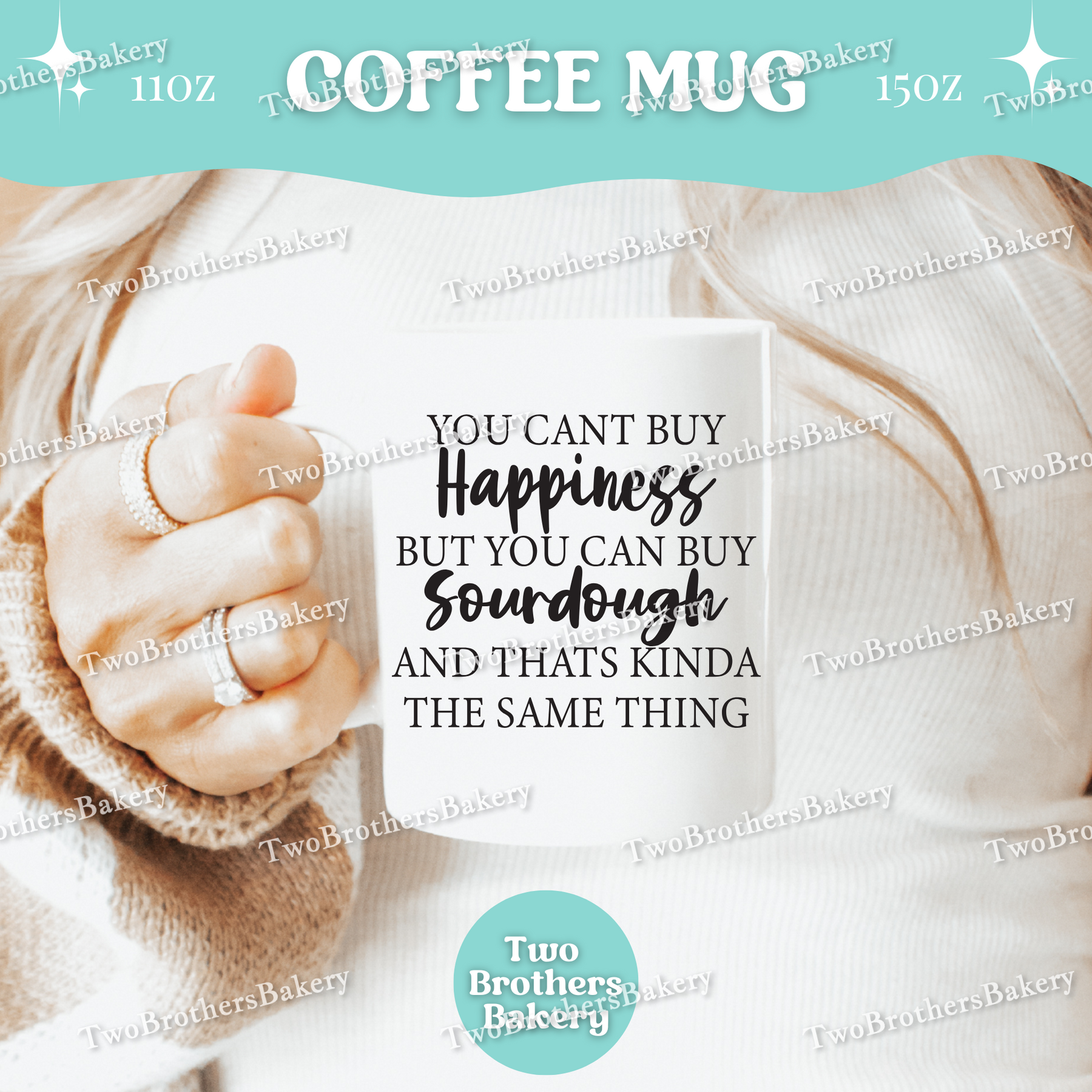 The You Can’t Buy Happiness, But You Can Buy Sourdough mug is a warm, witty nod to the truth every bread baker lives by. Featuring a clean mix of playful script and classic typography, this design celebrates sourdough as more than just bread—it’s a lifestyle, a ritual, and honestly… a form of therapy.