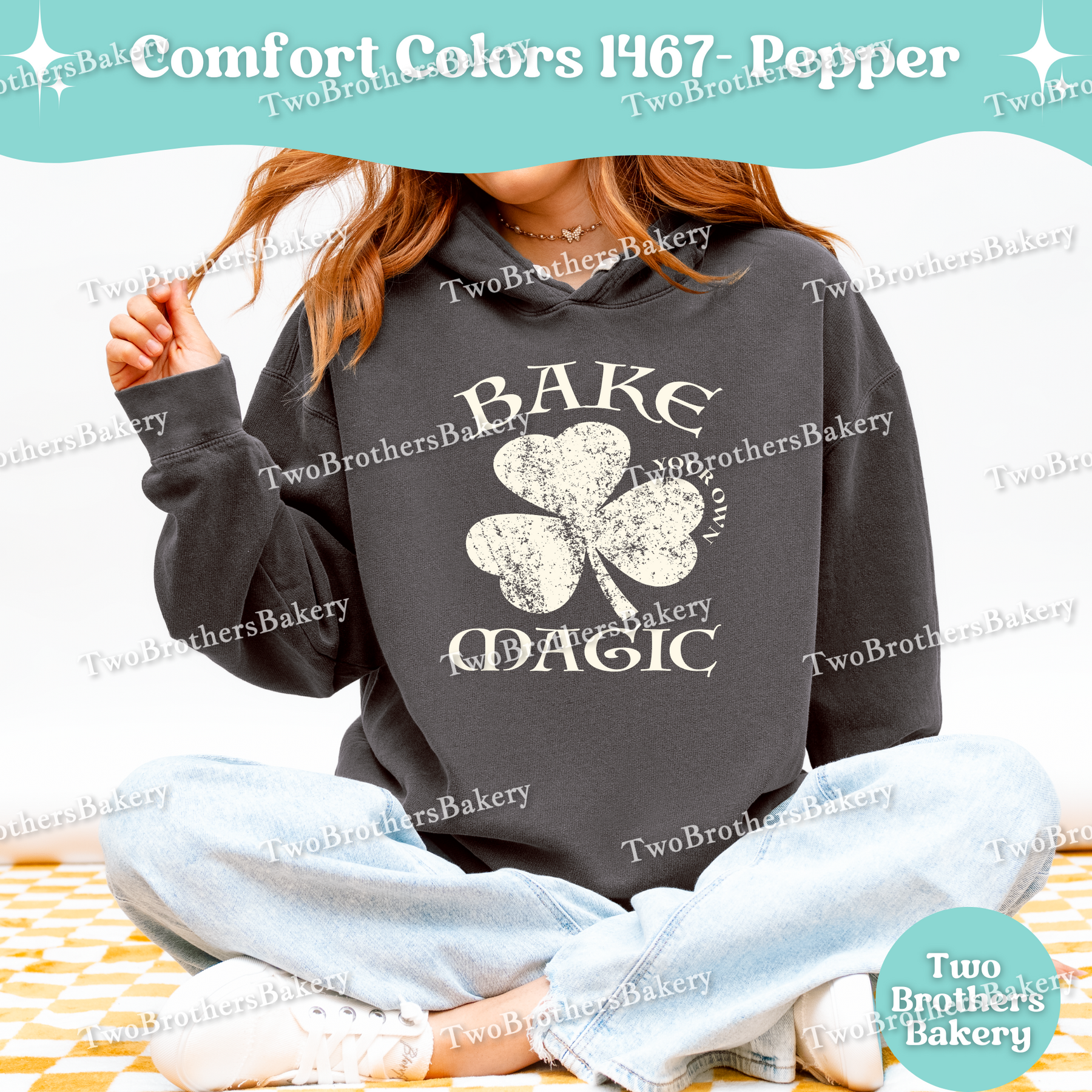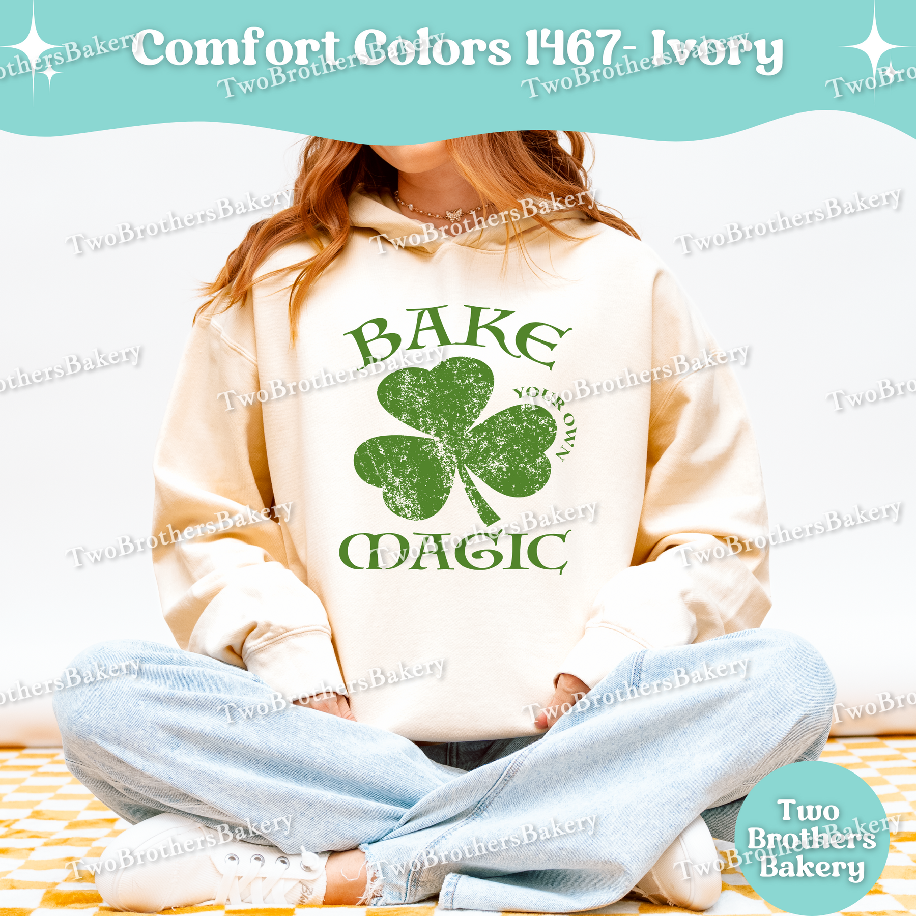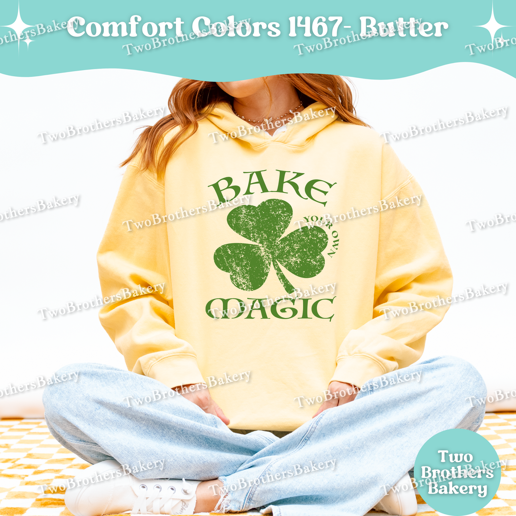 Printed on a Comfort Colors 1467 lightweight hooded sweatshirt, this hoodie has that soft, garment-dyed, broken-in feel you already love. Designed with a crew-style neckline and adjustable drawstring hood, it offers an easy, relaxed fit that’s ideal for early morning bakes, cool farmers markets, pop-ups, or casual spring layering. The artwork is printed in off-white or dark green, depending on the garment color selected, giving you a perfectly balanced contrast that feels timeless and wearable well beyond St. Patrick’s Day.