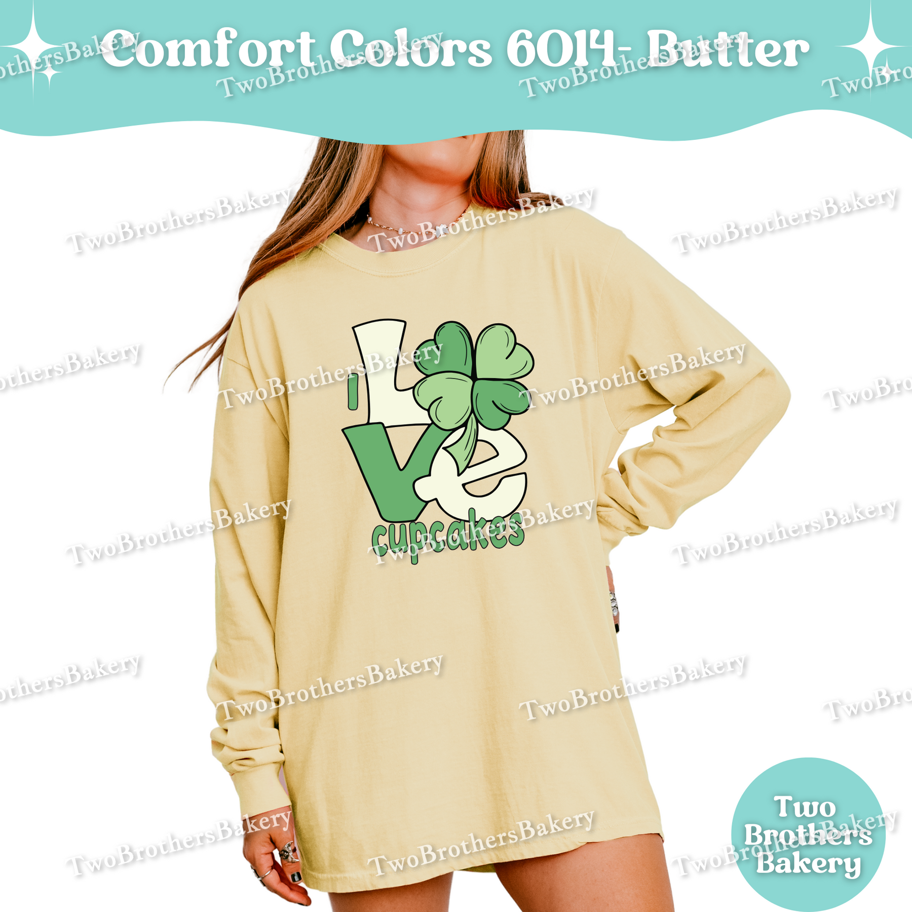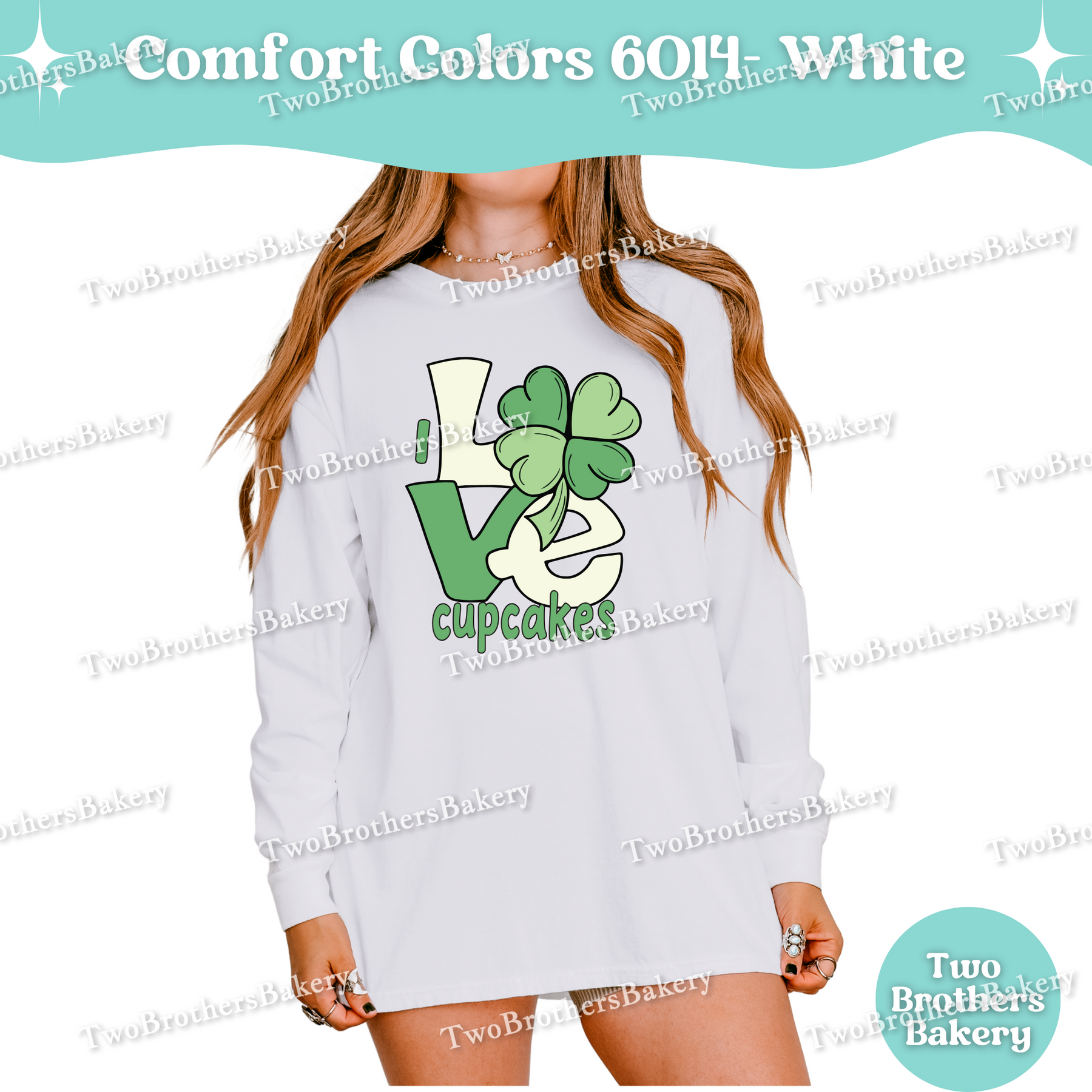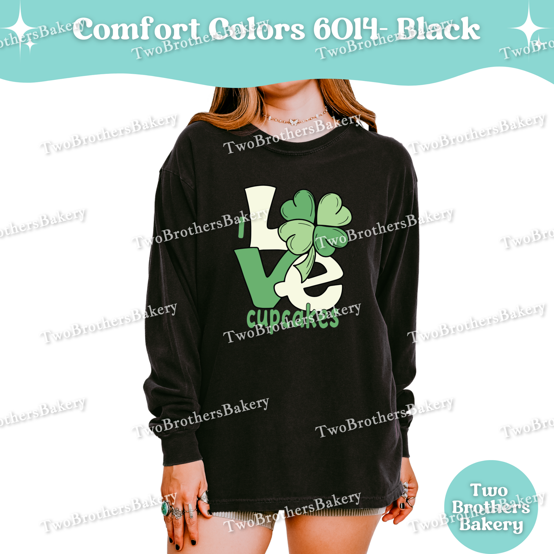 This design features a bold “LOVE” layout with a shamrock woven into the artwork—because when cupcakes are involved, luck is just a bonus. The soft green tones give a subtle nod to the season while staying timeless enough to wear year-round. It’s playful, baker-coded, and perfect for cupcake pros who know that sprinkles, buttercream, and a good piping bag make everything better.