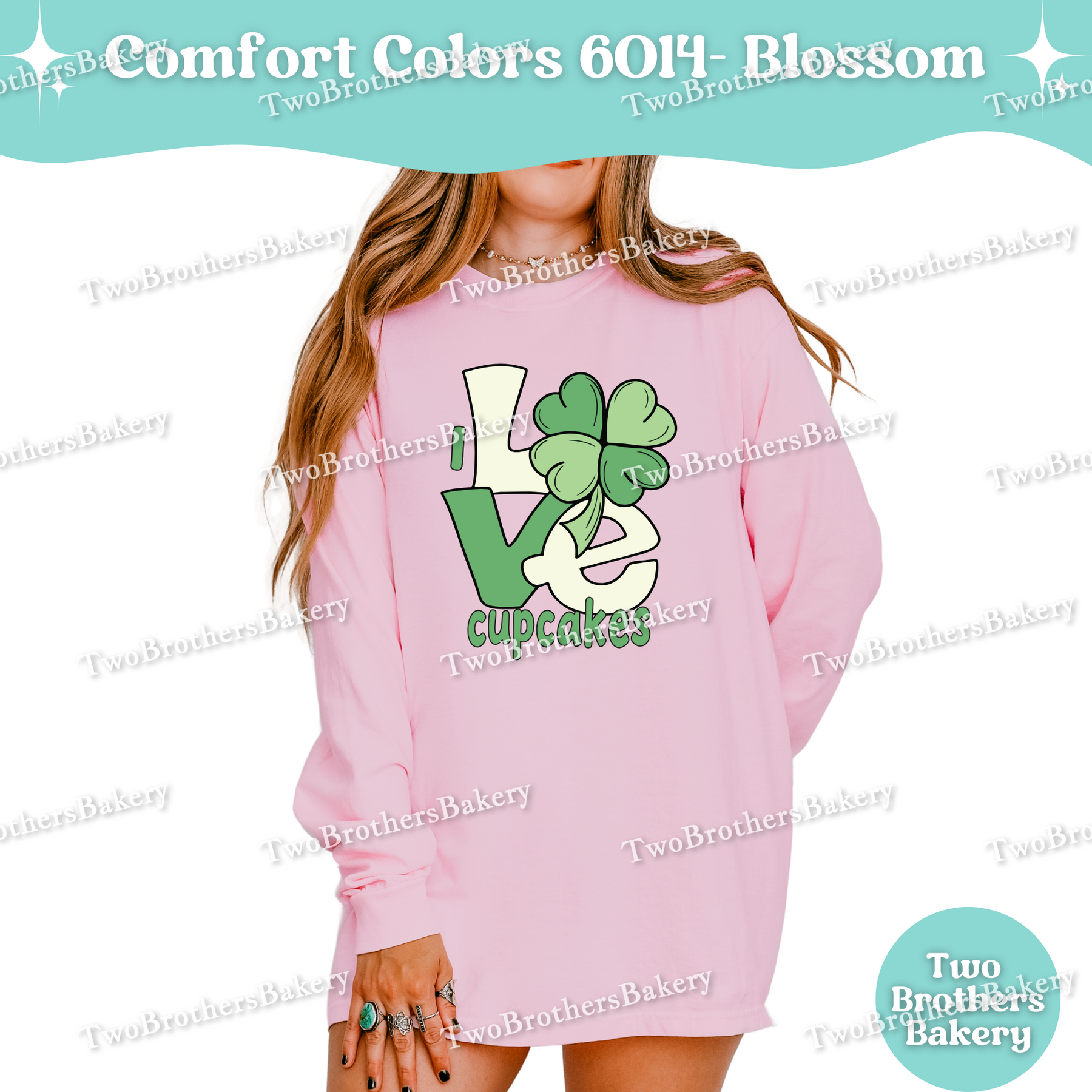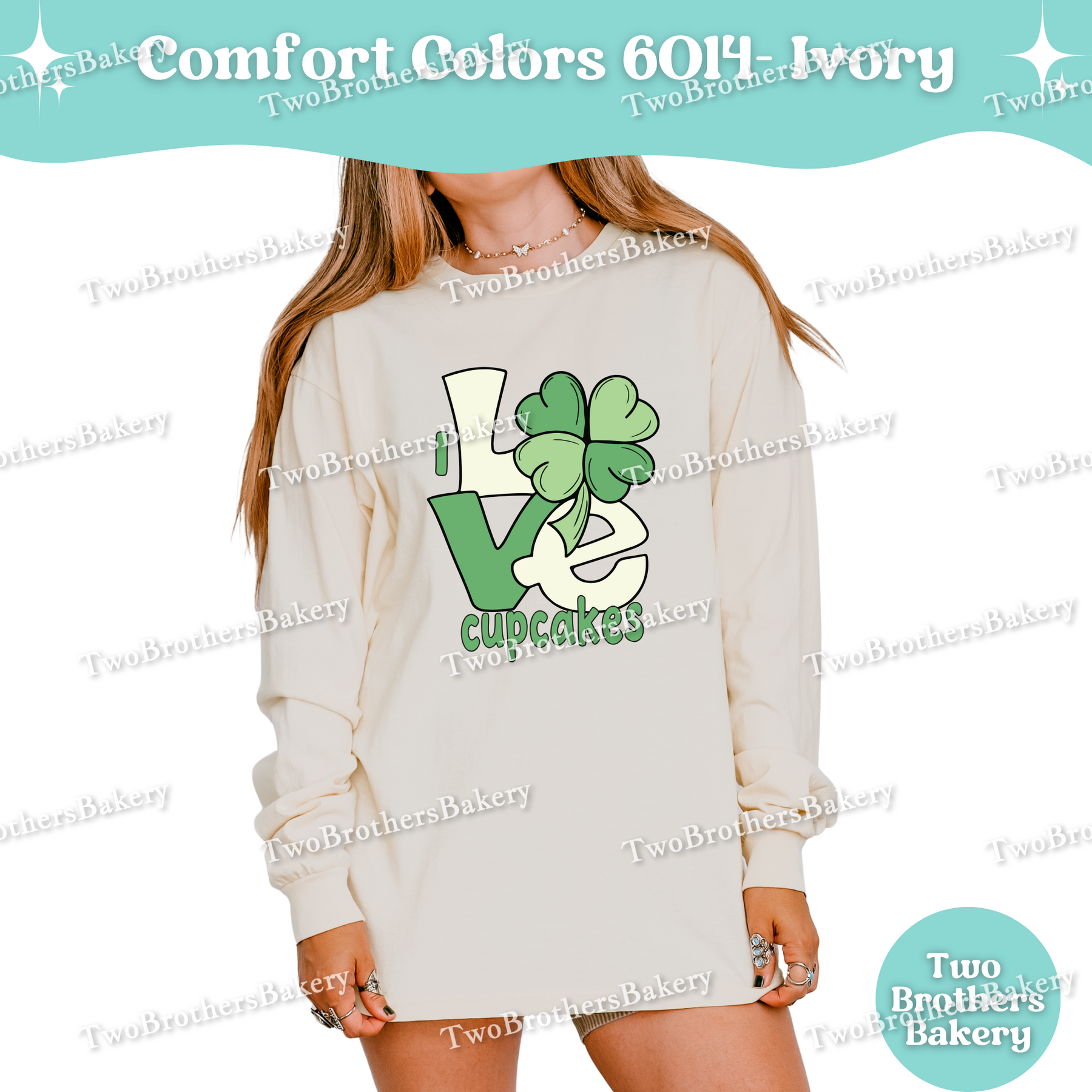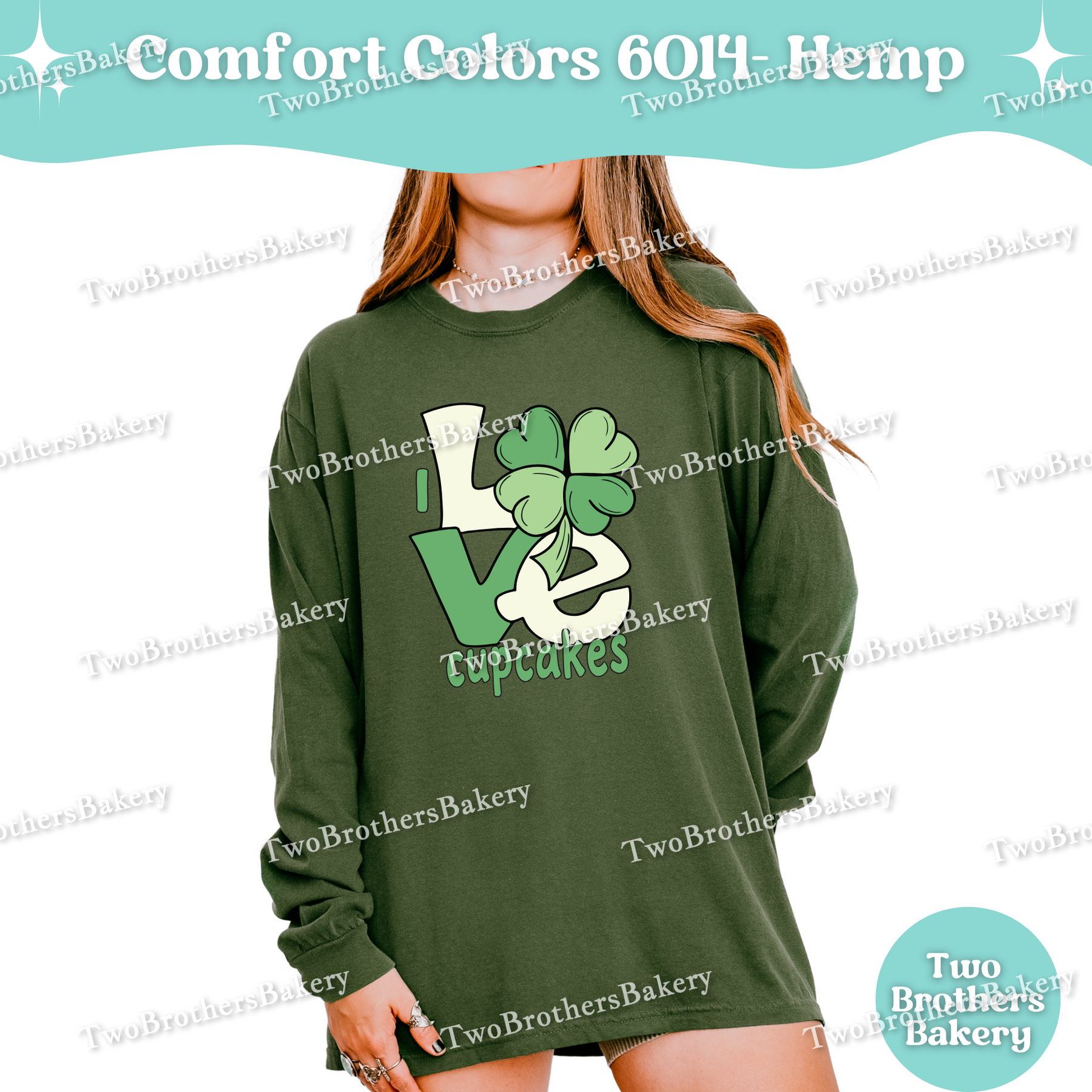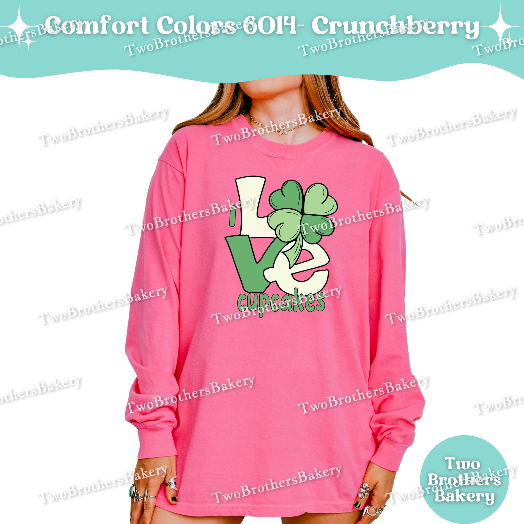 This design features a bold “LOVE” layout with a shamrock woven into the artwork—because when cupcakes are involved, luck is just a bonus. The soft green tones give a subtle nod to the season while staying timeless enough to wear year-round. It’s playful, baker-coded, and perfect for cupcake pros who know that sprinkles, buttercream, and a good piping bag make everything better.