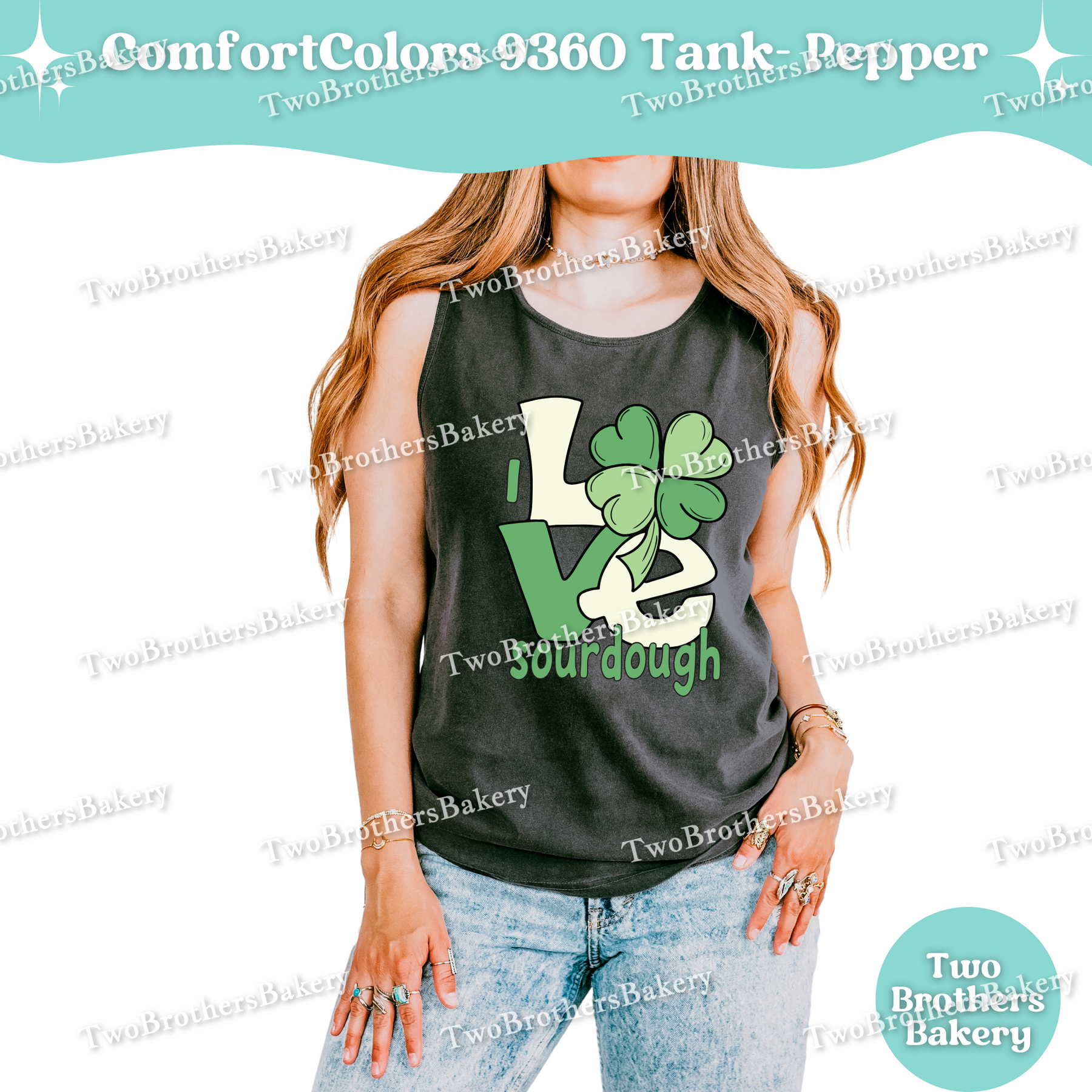 The “Love Sourdough” St. Patrick’s Day tank blends cozy baking pride with playful seasonal charm. Featuring a fun, bold typographic design accented with a lucky shamrock, this piece is a lighthearted celebration of sourdough obsession and Irish-inspired flair. It’s sweet, festive, and a little cheeky—perfect for bakers who know that sourdough isn’t just bread, it’s a lifestyle.
