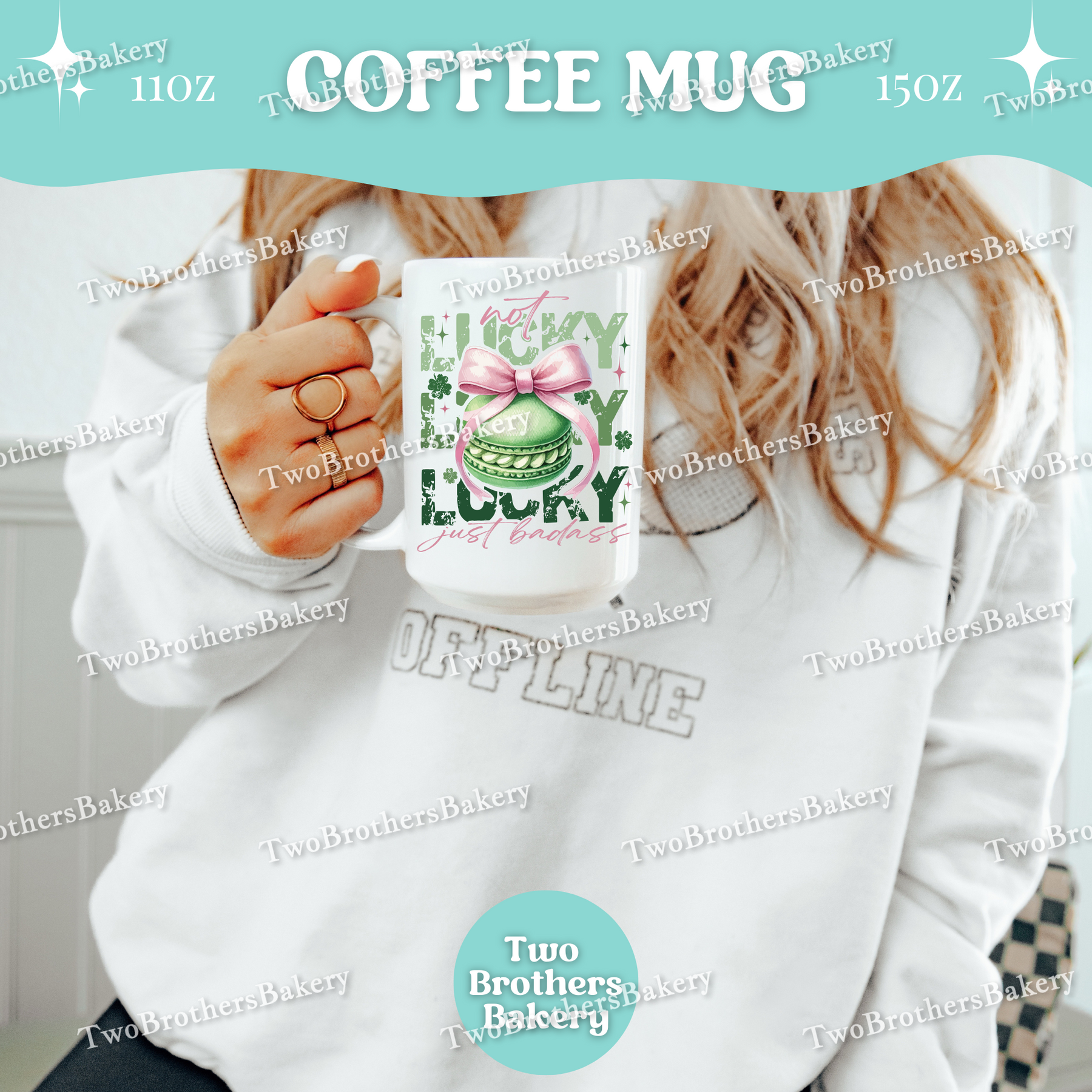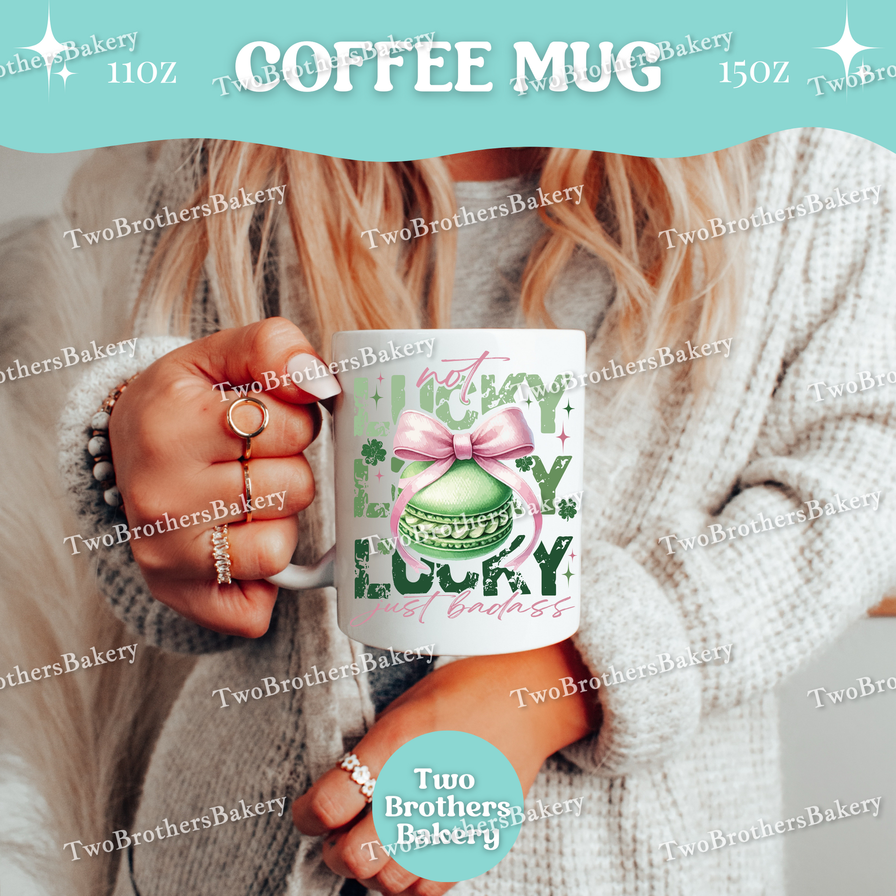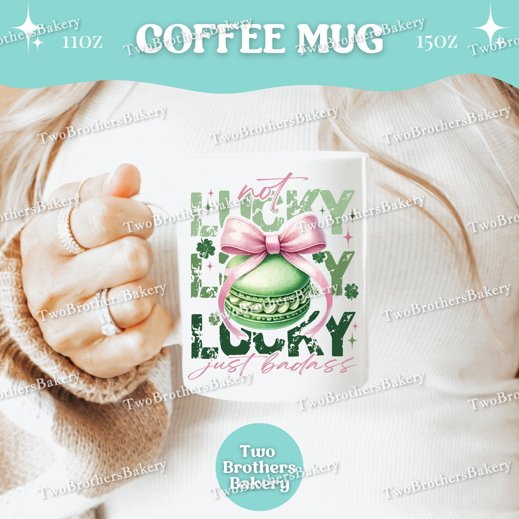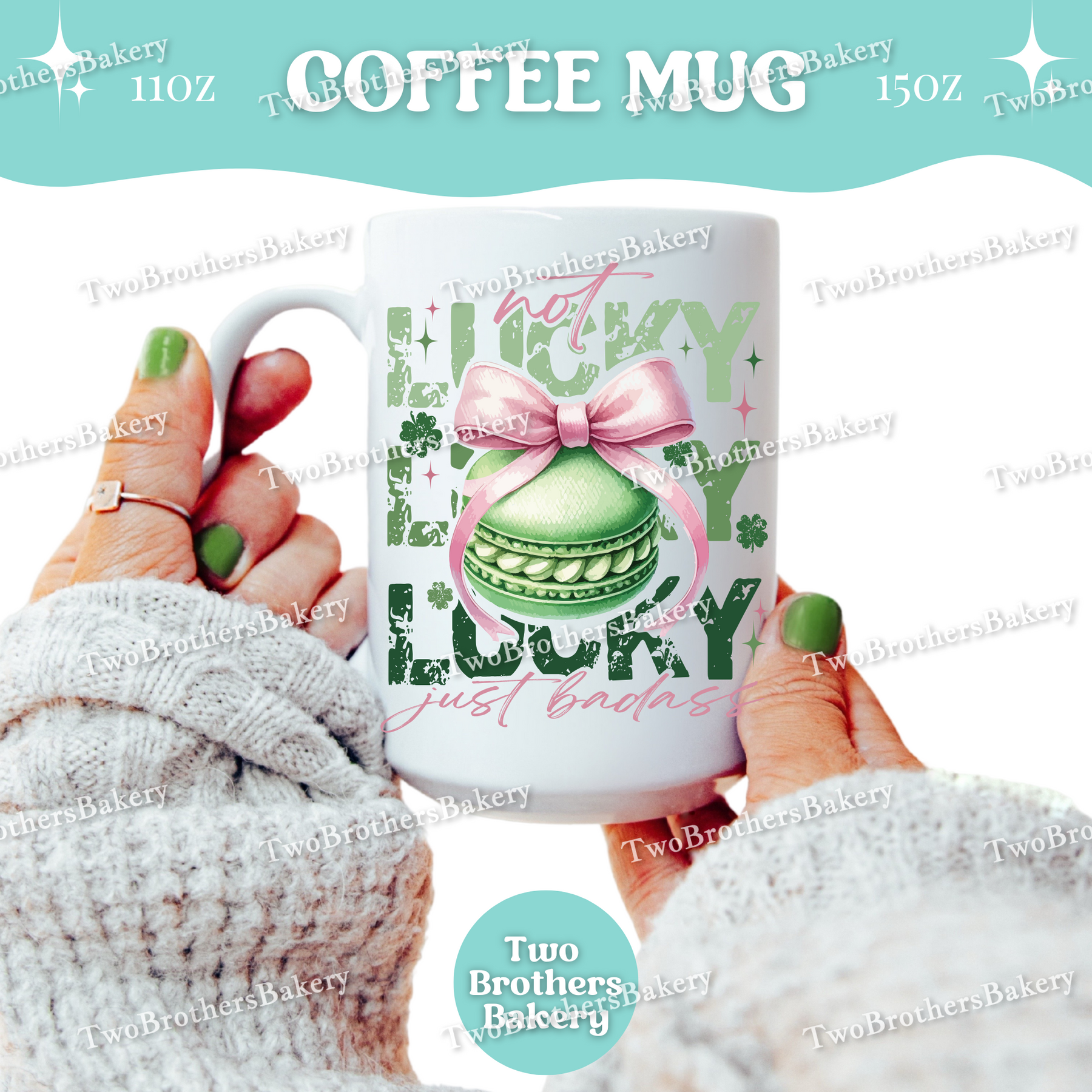 The Not Lucky, Just Badass coffee mug is a bold, confidence-boosting addition to your Saint Patrick’s Day lineup, designed especially for bakers who’ve earned every win. Featuring a festive green macaron topped with a soft pink bow and playful St. Paddy’s–inspired accents, this dual-sided mug makes a statement without losing its charm. One side brings the attitude, the other highlights the artwork—giving you the perfect balance of fun and aesthetic.