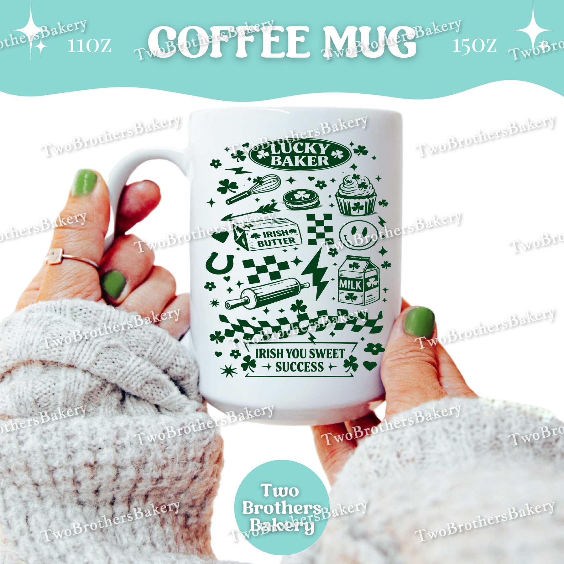 Whether you’re starting your morning with coffee before a full day of baking, taking a quick break while dough rests, or powering through Saint Patrick’s Day orders, this mug brings a little extra charm to your routine. The retro styling keeps it timeless, making it just as perfect for March celebrations as it is for year-round use in your kitchen or bakery.