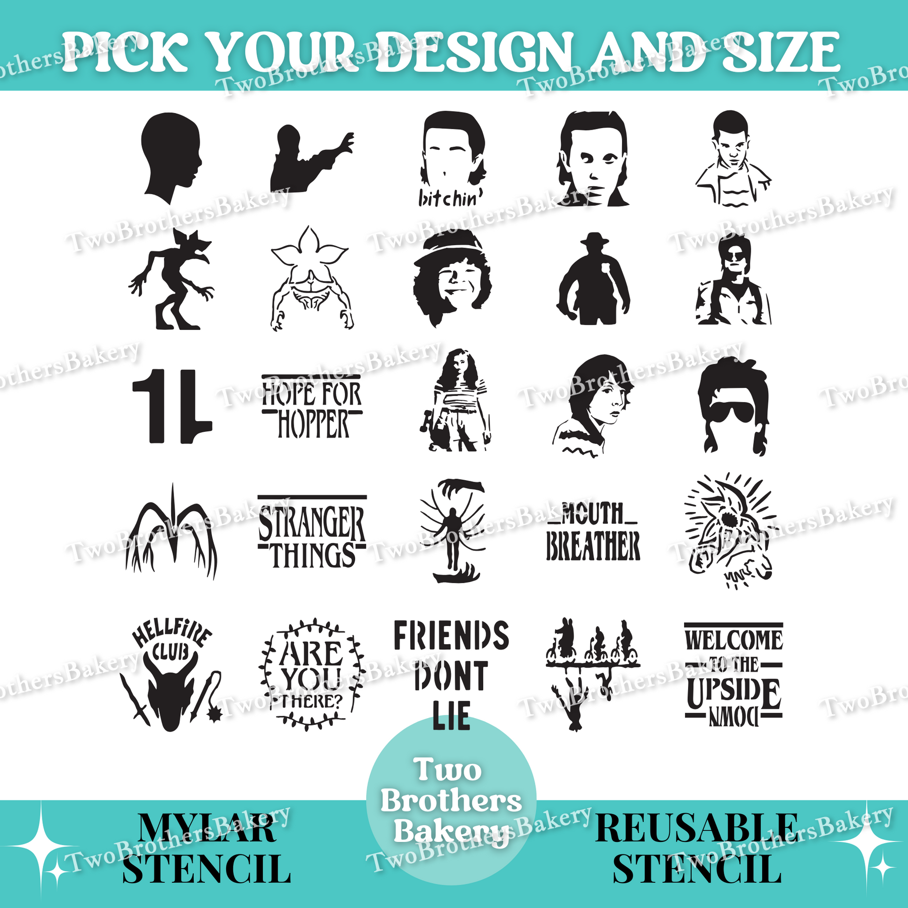 Whether you're prepping for a Halloween event, a Stranger Things–themed birthday party, a horror-themed market booth, or just baking for fellow fans, these reusable stencils deliver crisp, clean designs every single time.