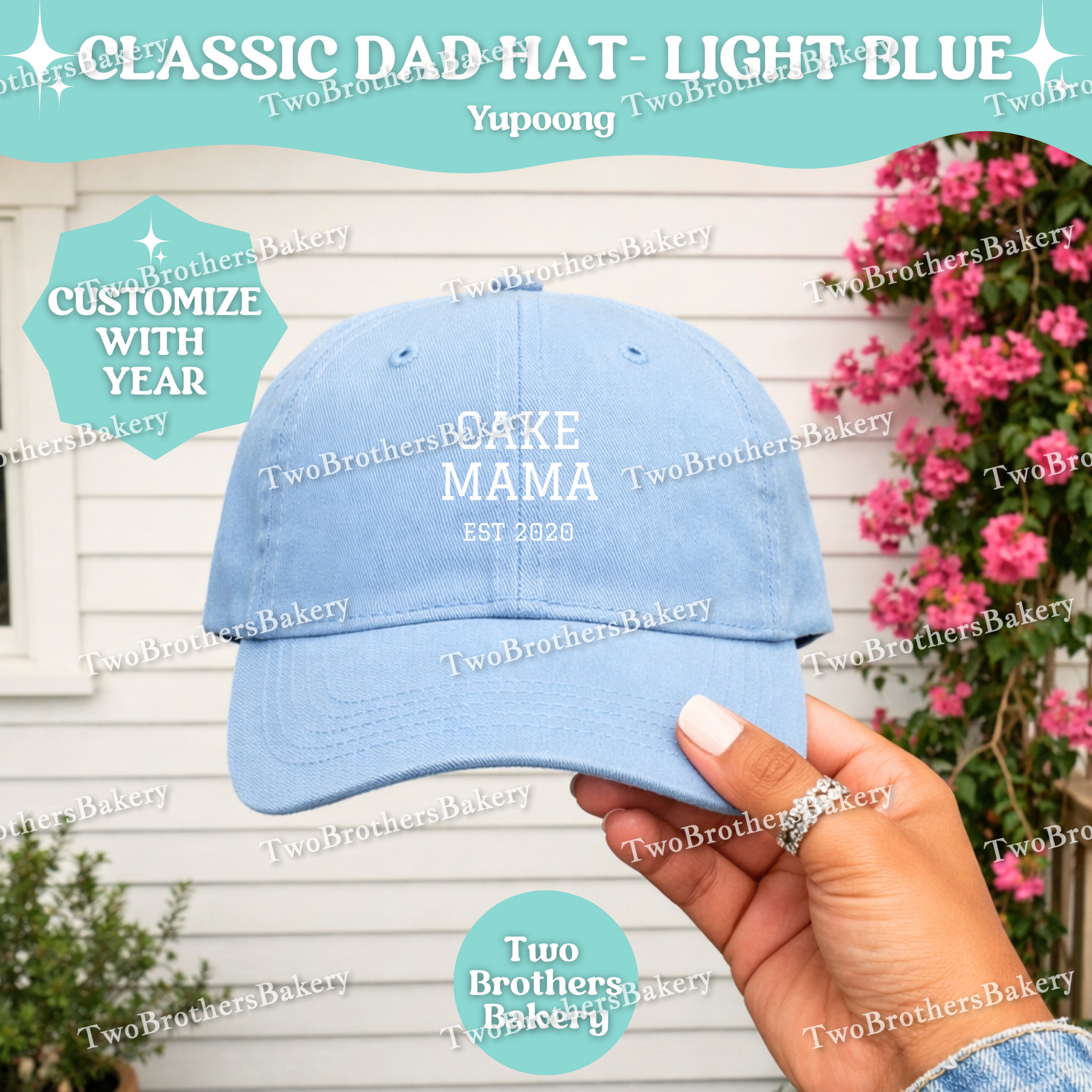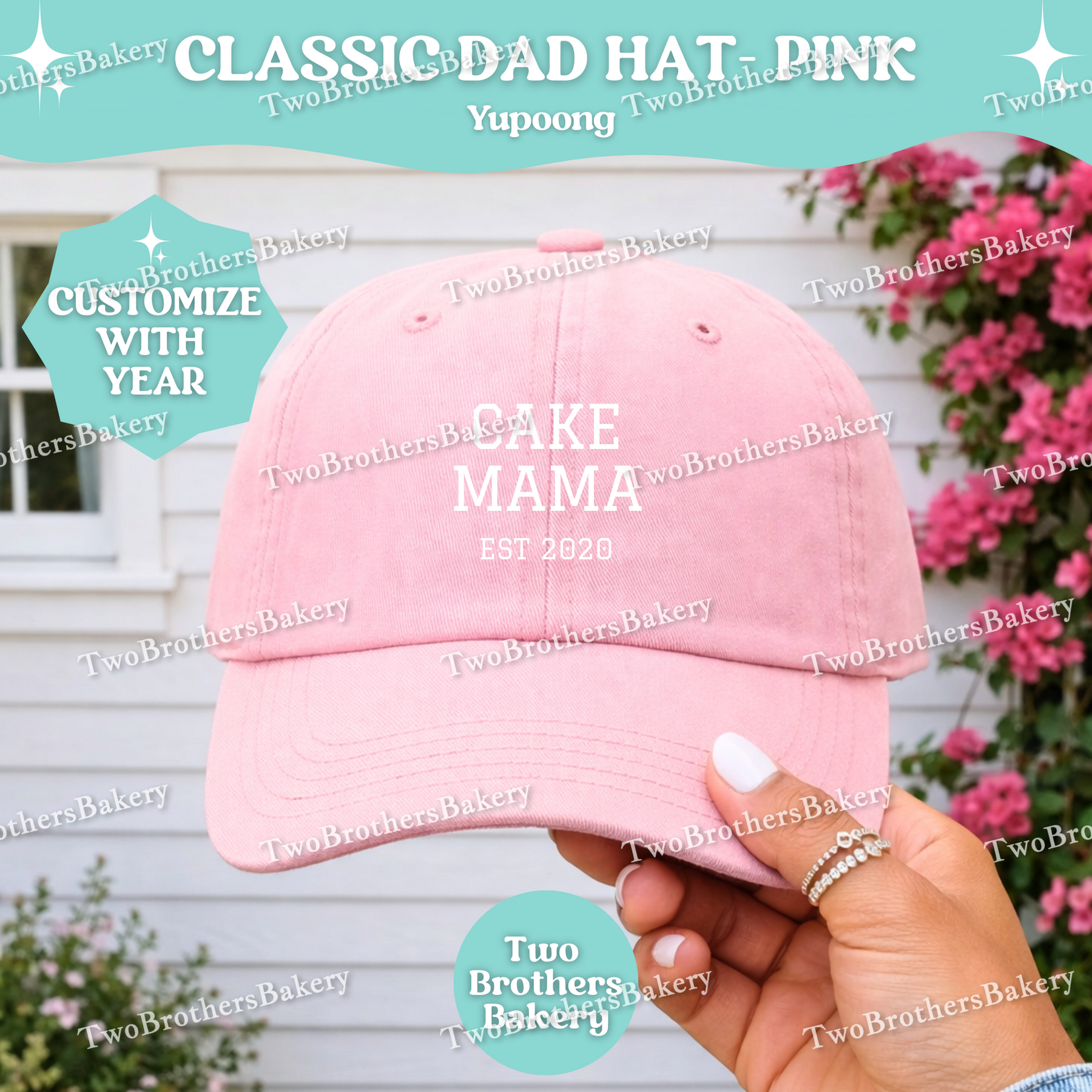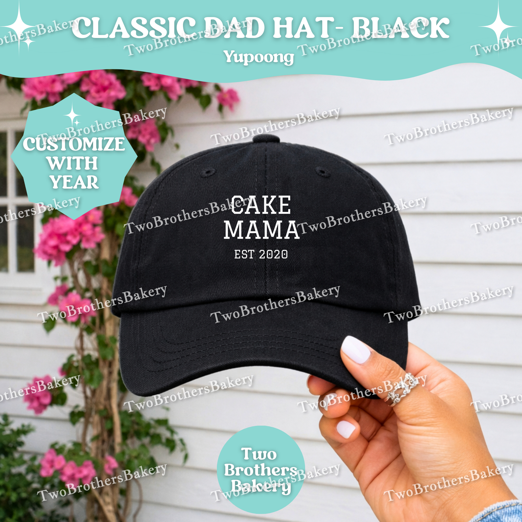 Confident, classic, and bakery-proud — the Cake Mama (Est. Year) embroidered dad hat is made for the woman who turns flour, butter, and sugar into edible art. 🎂✨