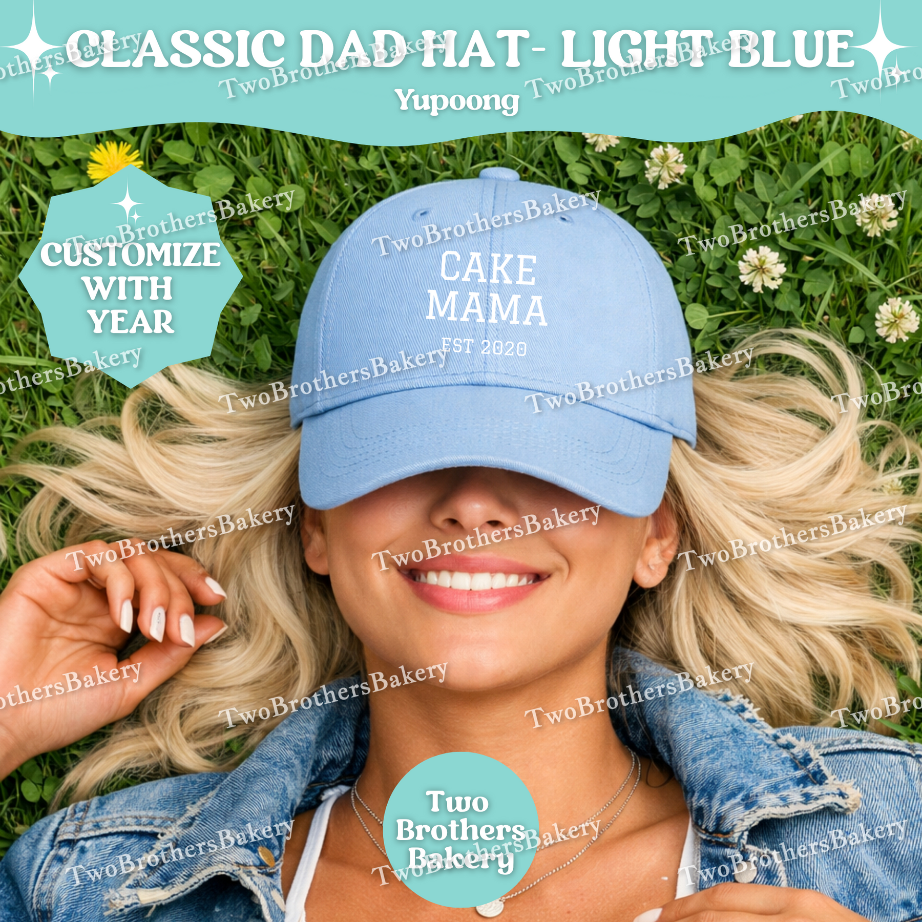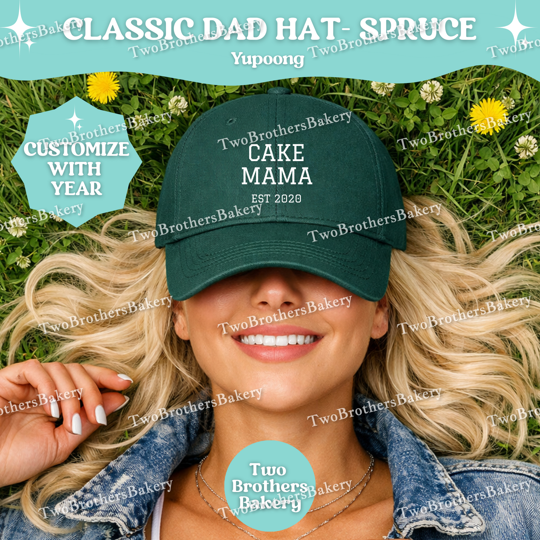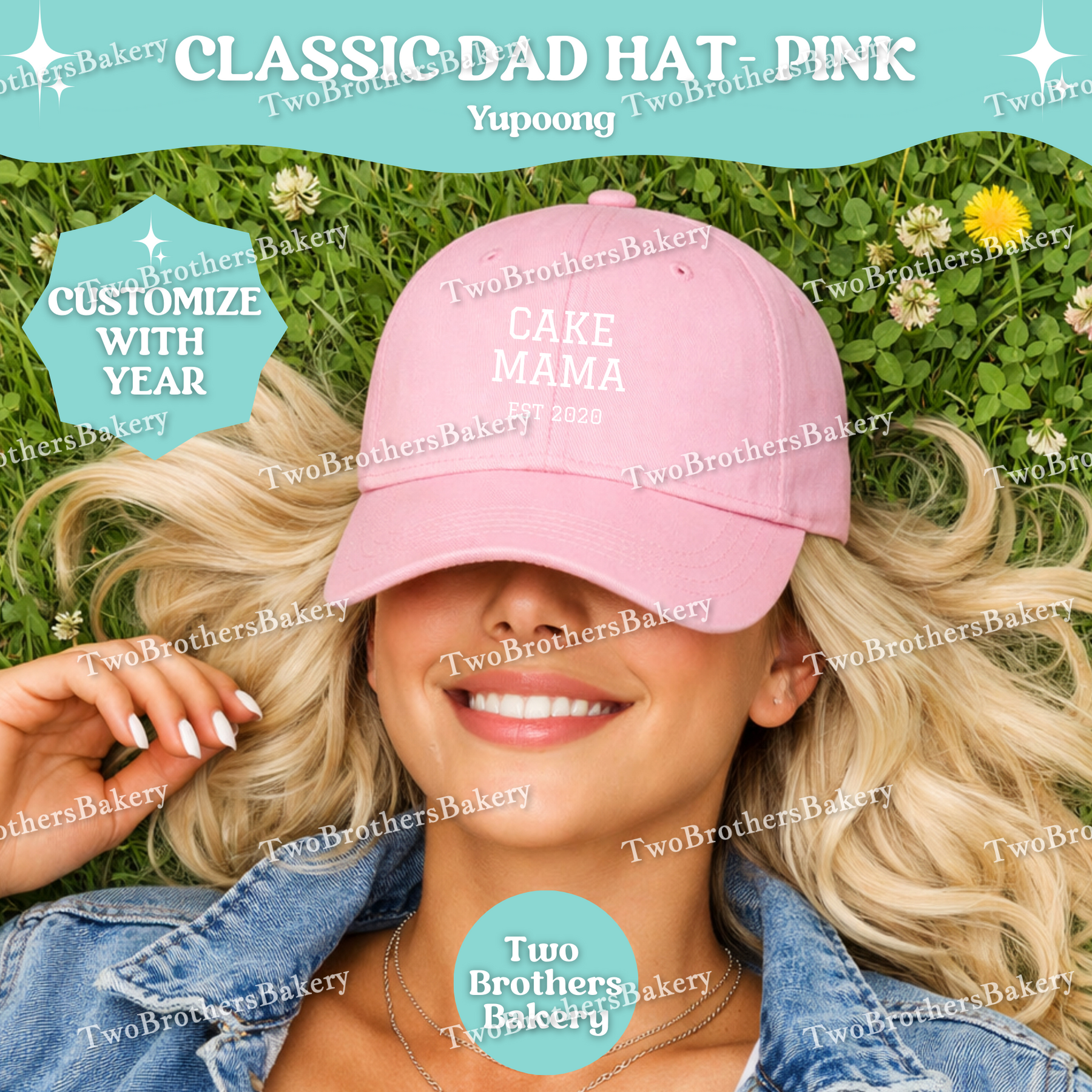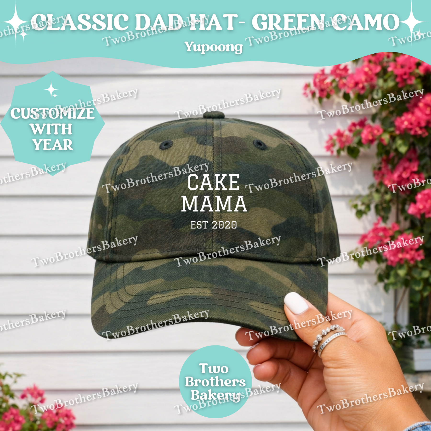 Confident, classic, and bakery-proud — the Cake Mama (Est. Year) embroidered dad hat is made for the woman who turns flour, butter, and sugar into edible art. 🎂✨