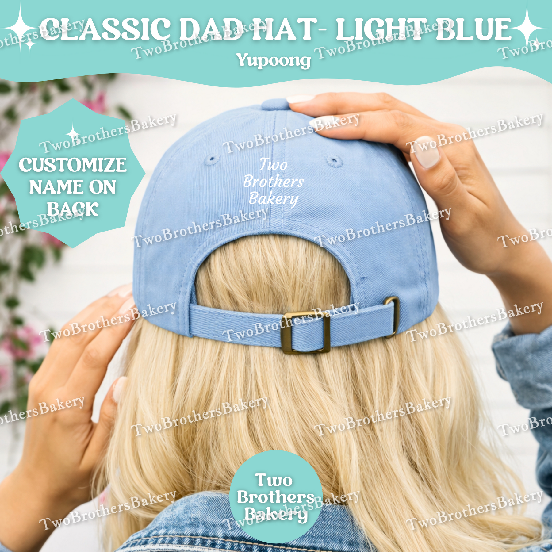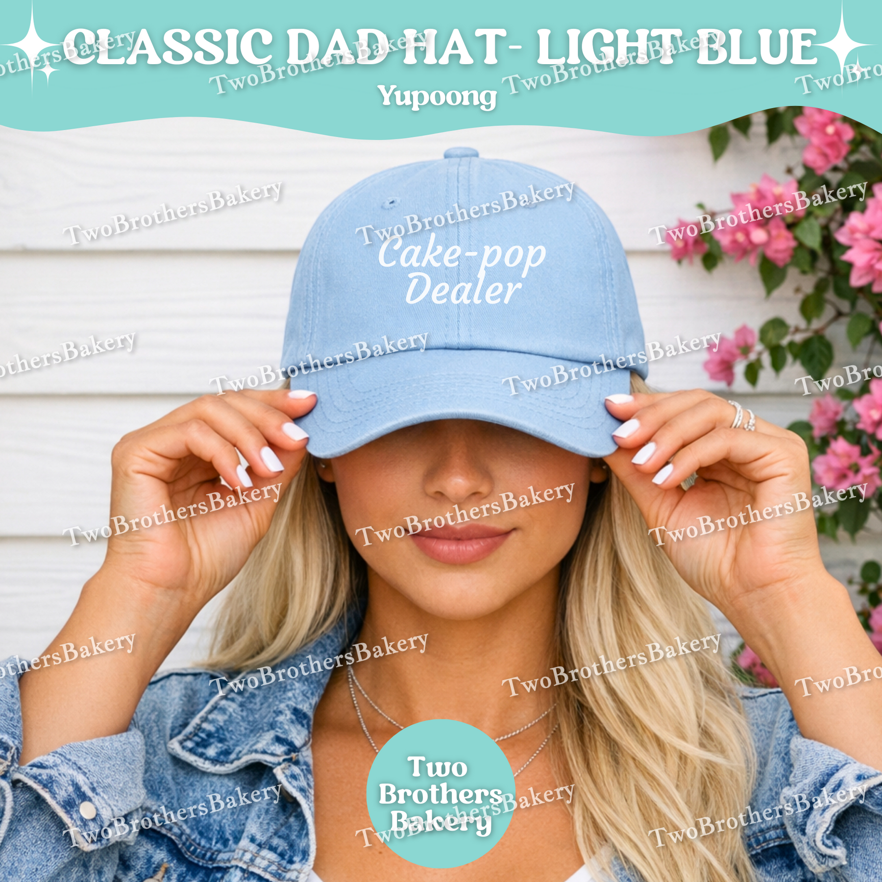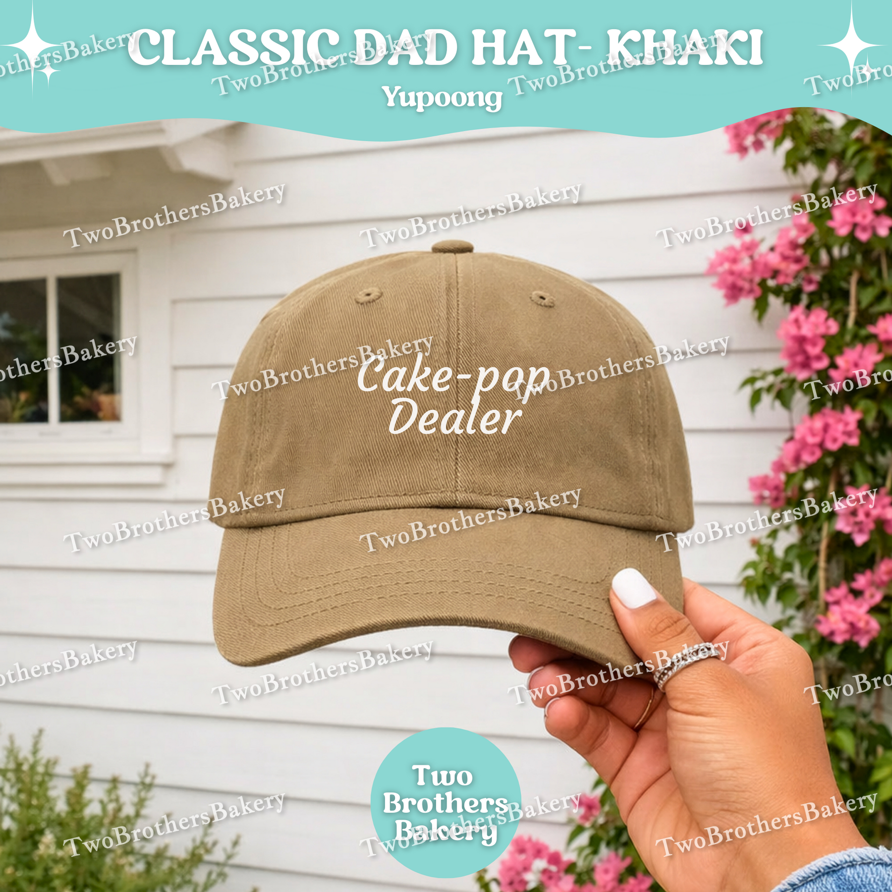 Make it uniquely yours by adding your name or bakery business name to the back of the hat, embroidered in matching white thread for a cohesive, polished finish. It’s the perfect branding touch for cottage bakers, small business owners, and baking moms building their sweet empire.