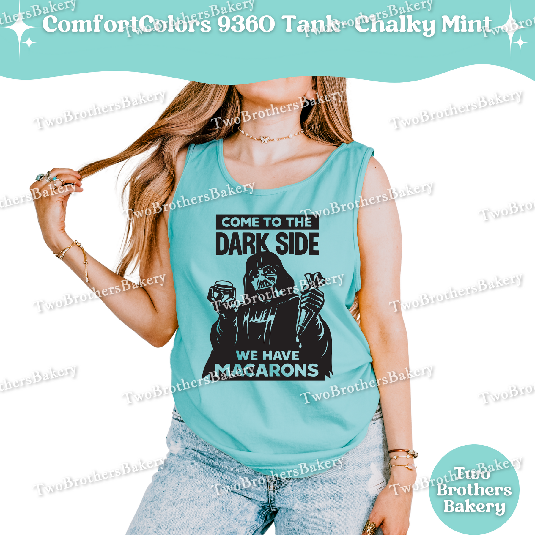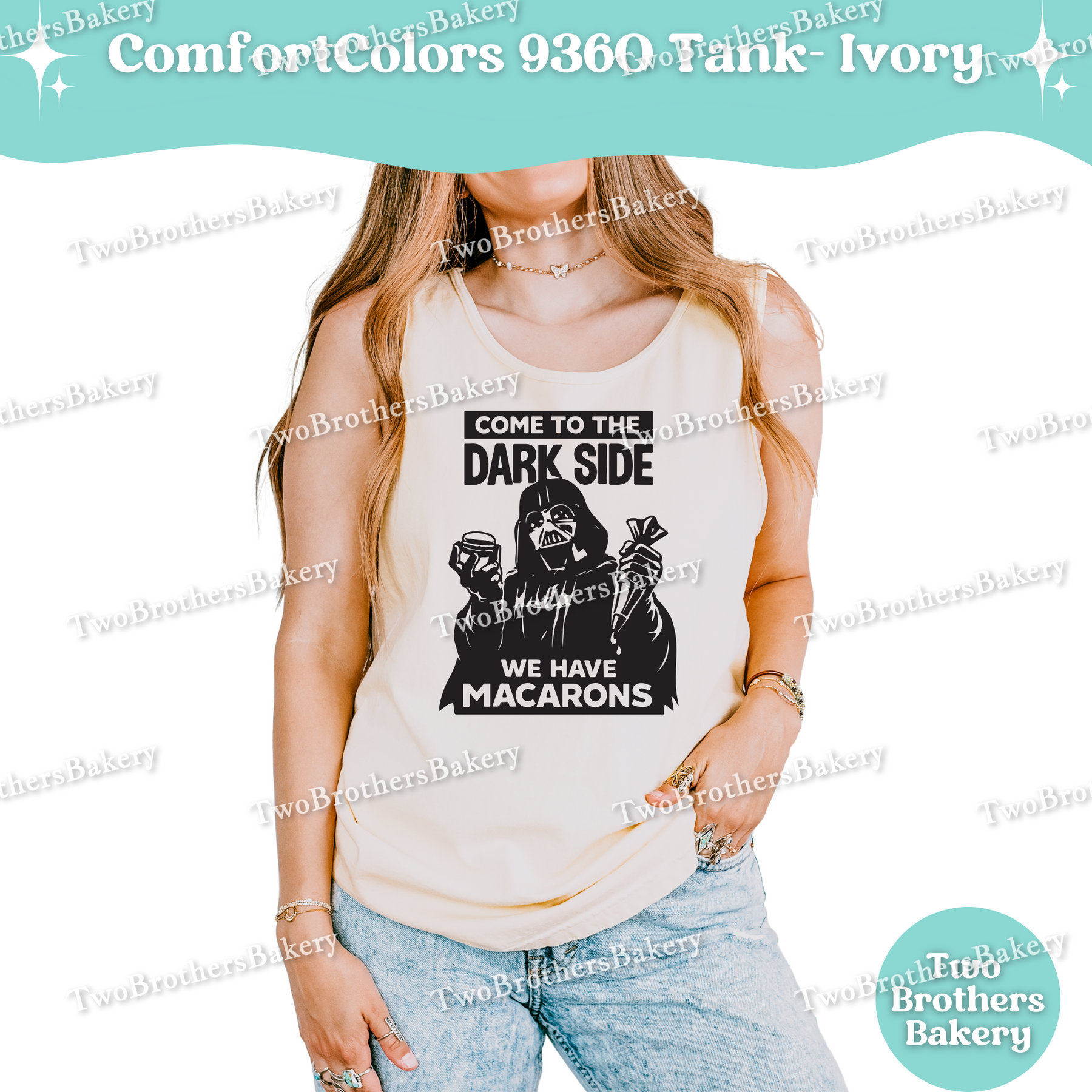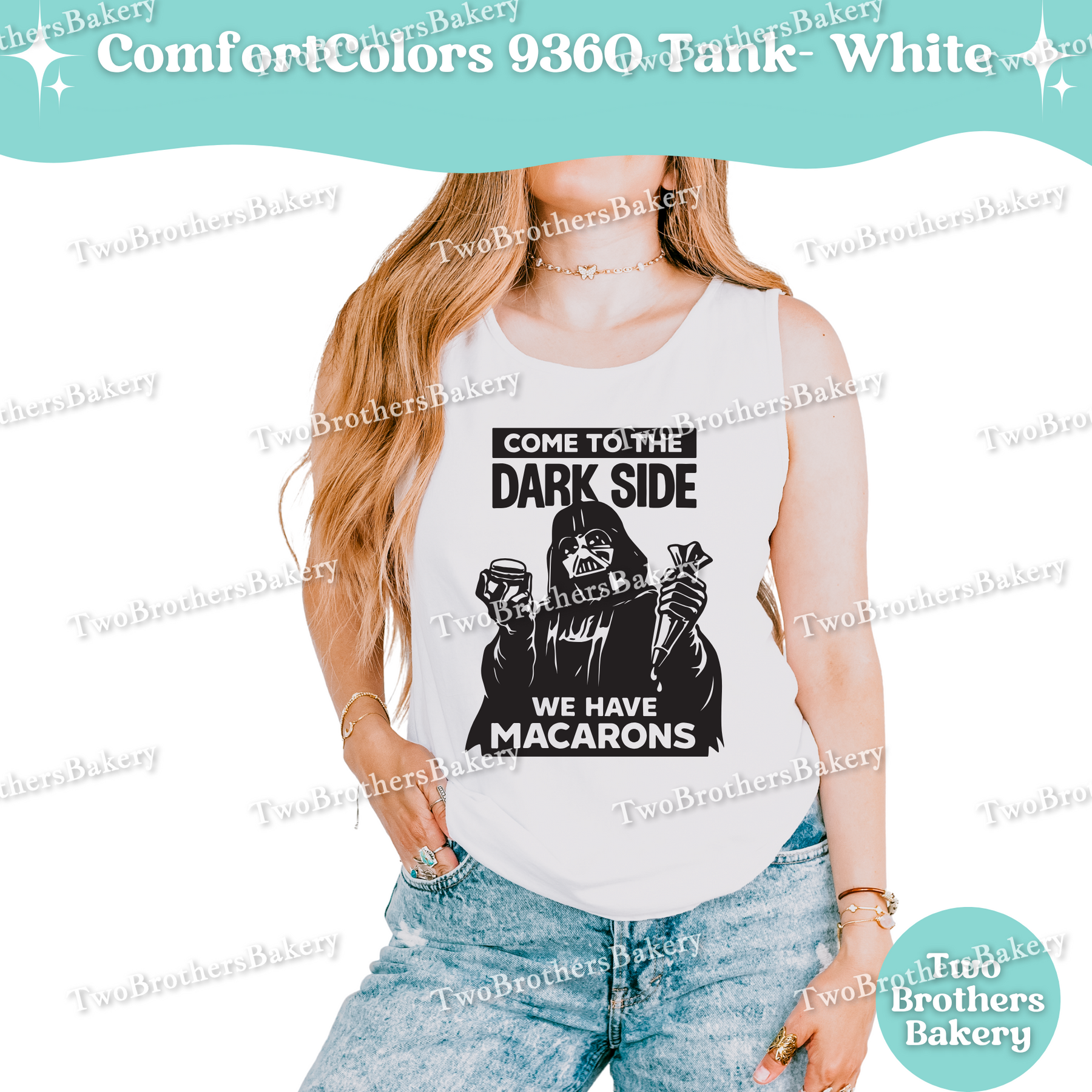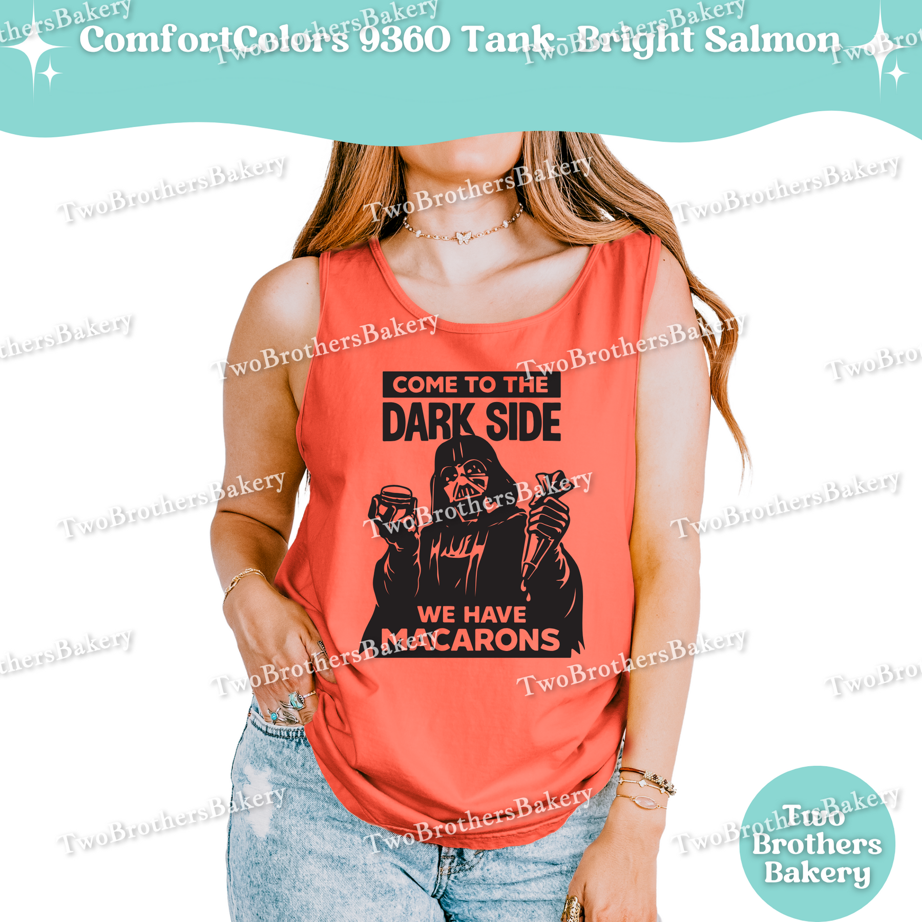 Come To The Dark Side We Have Macarons Tank Top is designed for bakers who love bold humor, pop culture inspired designs, and a macaron twist.