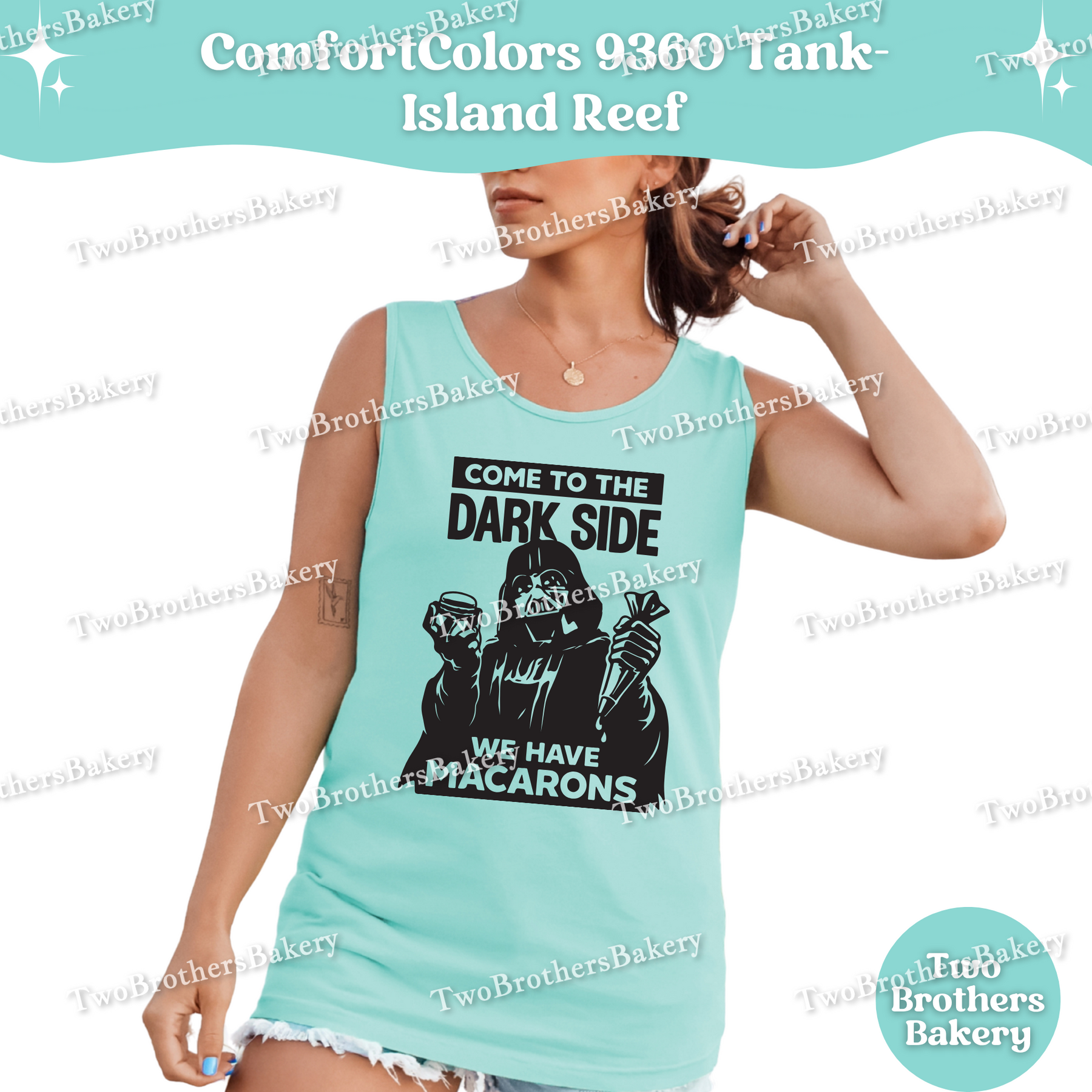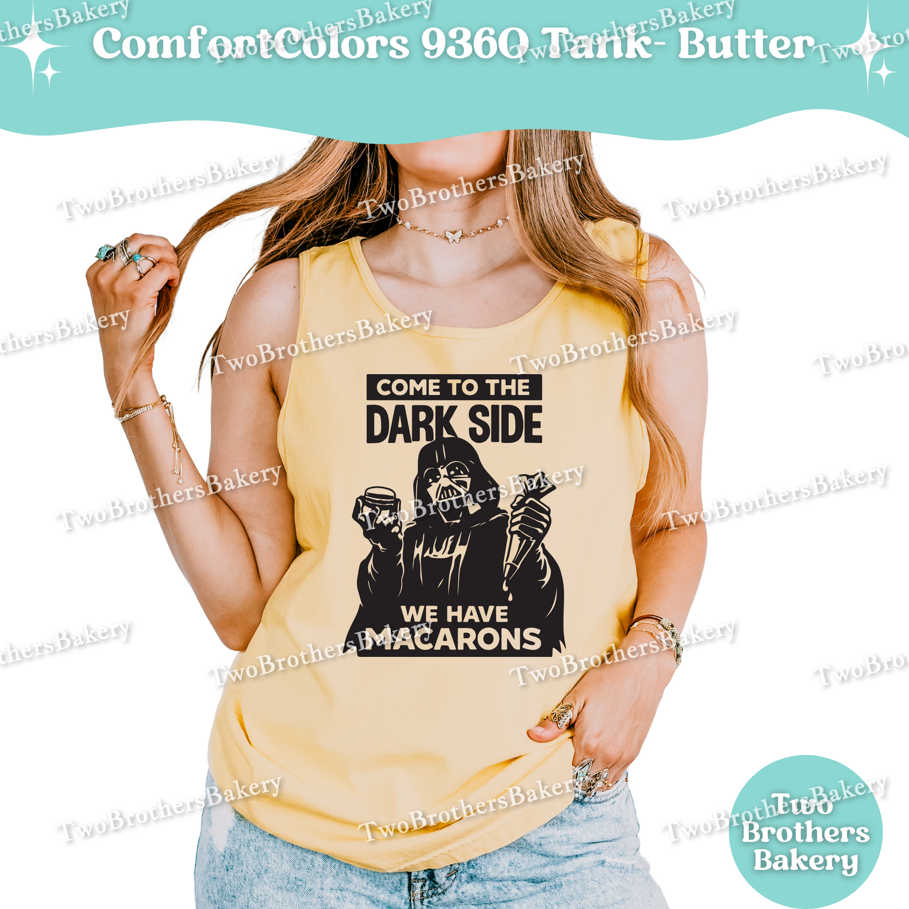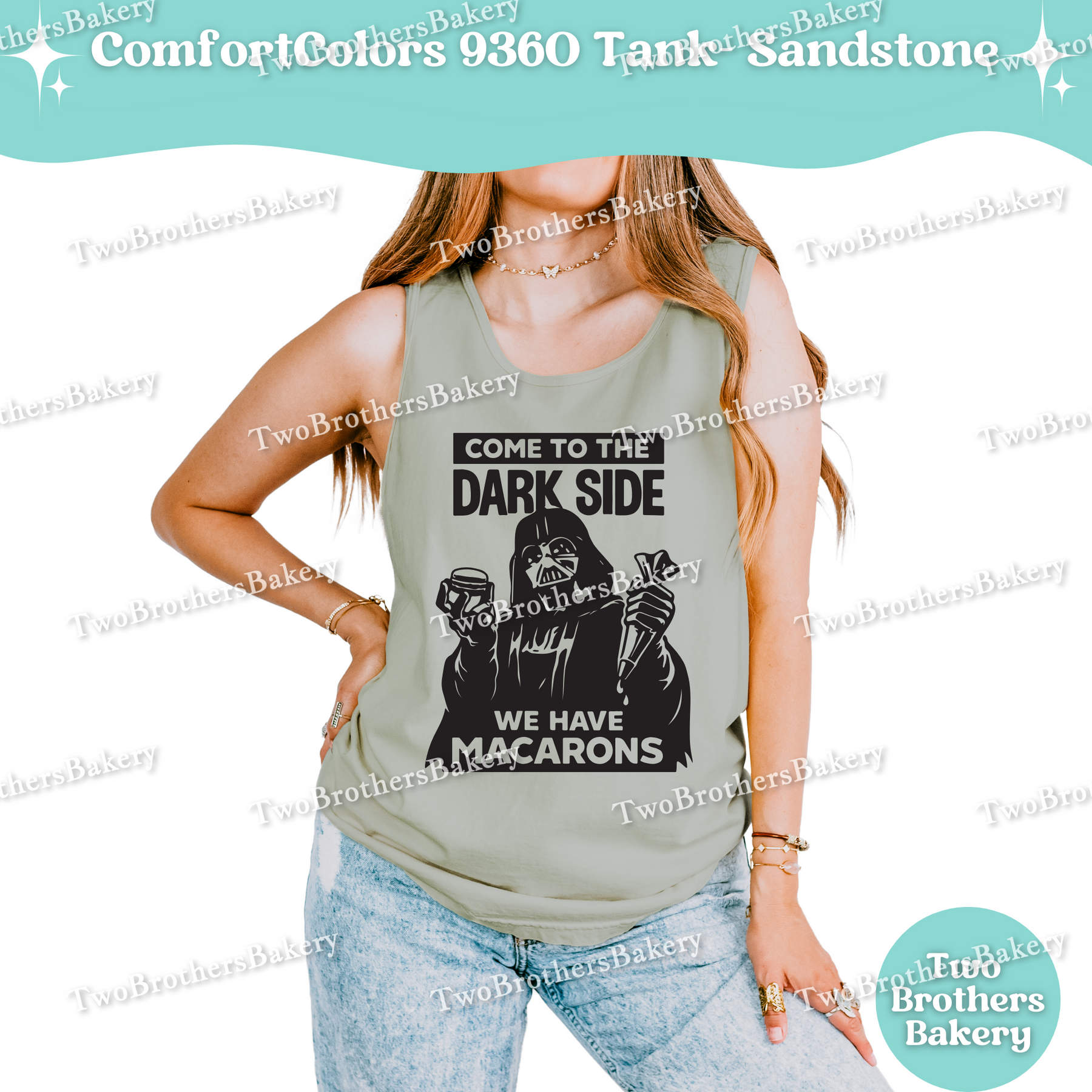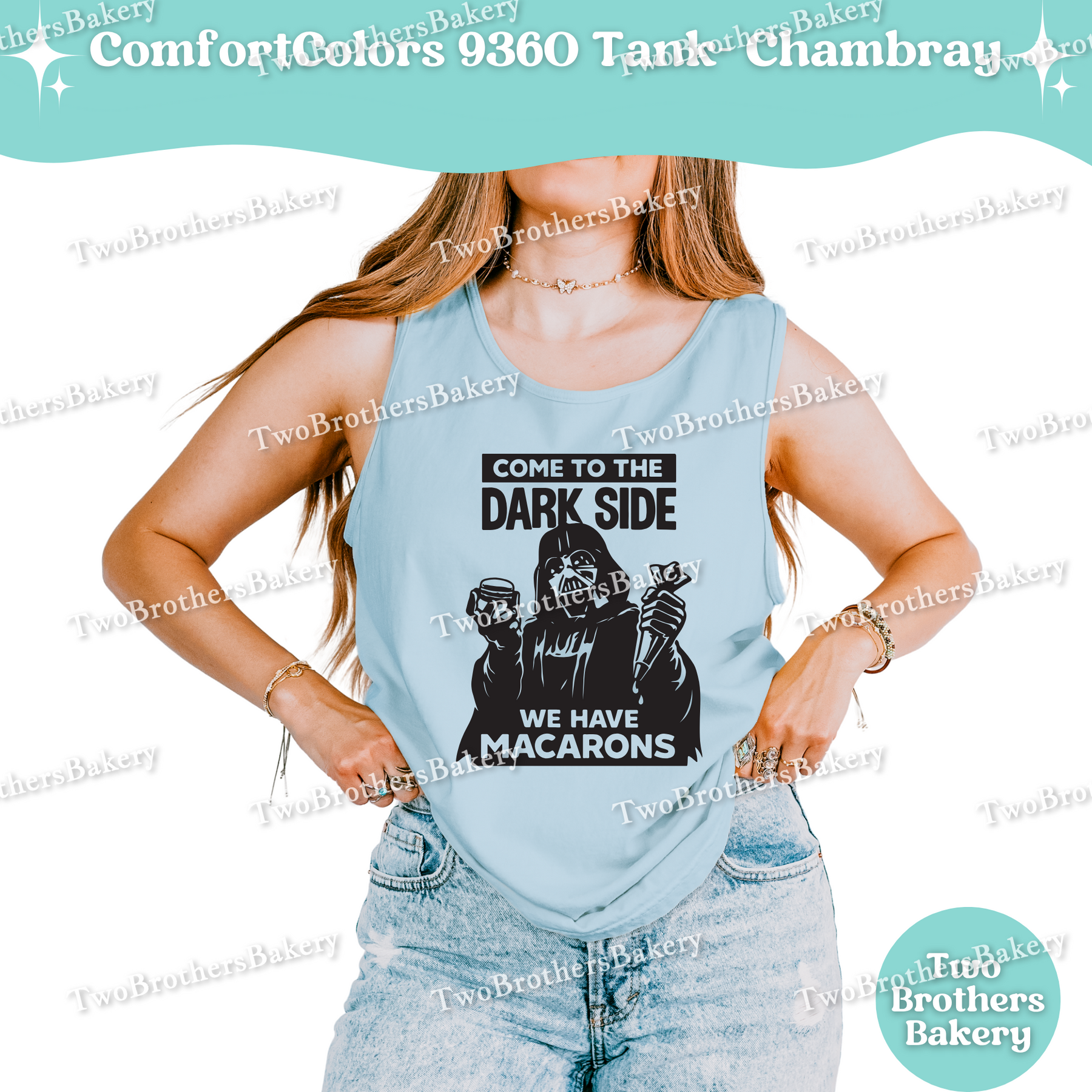 Come To The Dark Side We Have Macarons Tank Top is designed for bakers who love bold humor, pop culture inspired designs, and a macaron twist.
