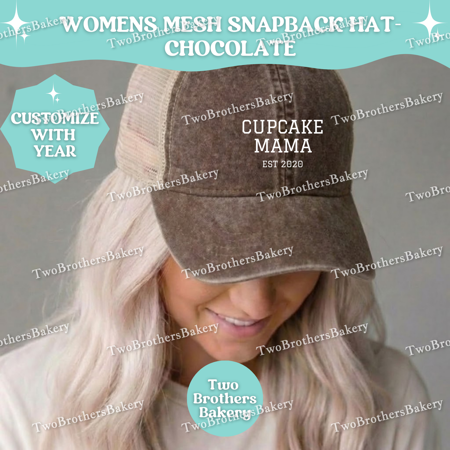 This timeless white embroidery design features bold “CUPCAKE MAMA” lettering with a customizable “EST” year underneath — making it the perfect personalized piece for baking moms, home bakery owners, and cupcake-loving entrepreneurs. Whether she started baking in 2012 or just launched her cupcake business this year, this hat celebrates her journey in style.