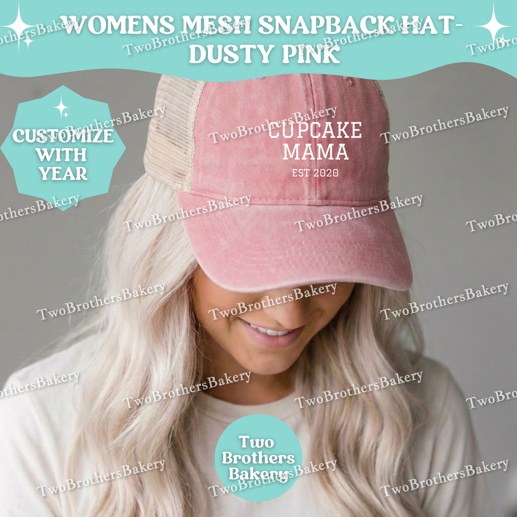 Available in a variety of garment colors, this cap pairs effortlessly with bakery tees, leggings, aprons, and everyday mom life.
