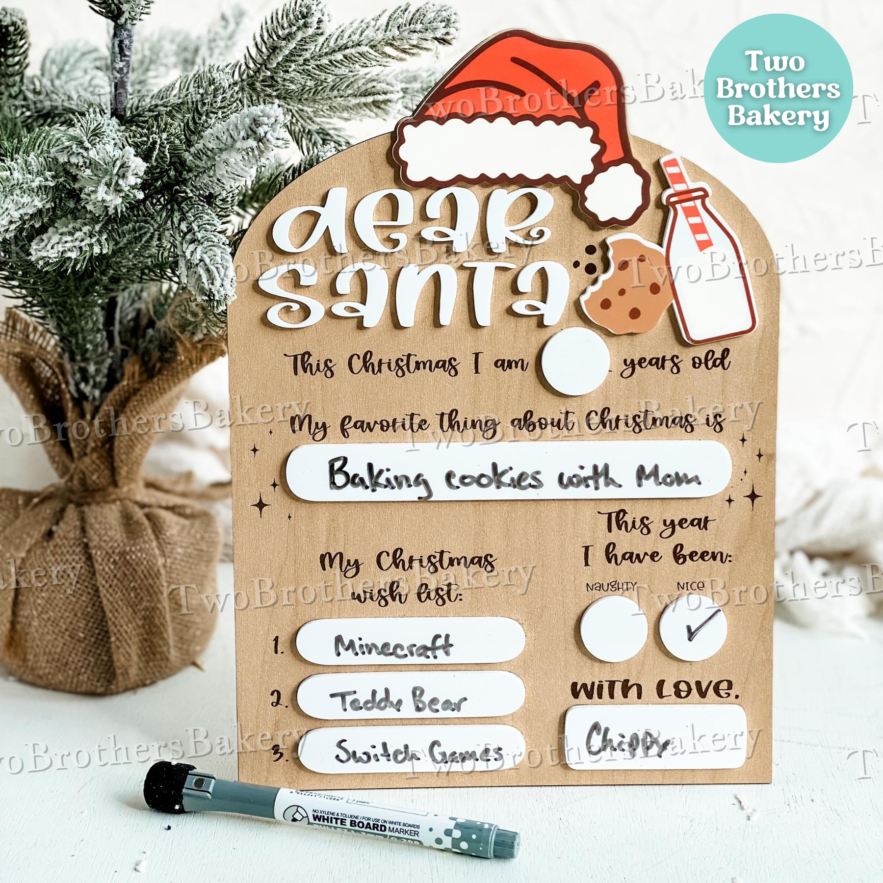 Dear Santa sign, Christmas Wish, Naughty or Nice, Milk and Cookies, Santas Cookies, Santa Gift, Christmas Traditions, Christmas Dry Erase