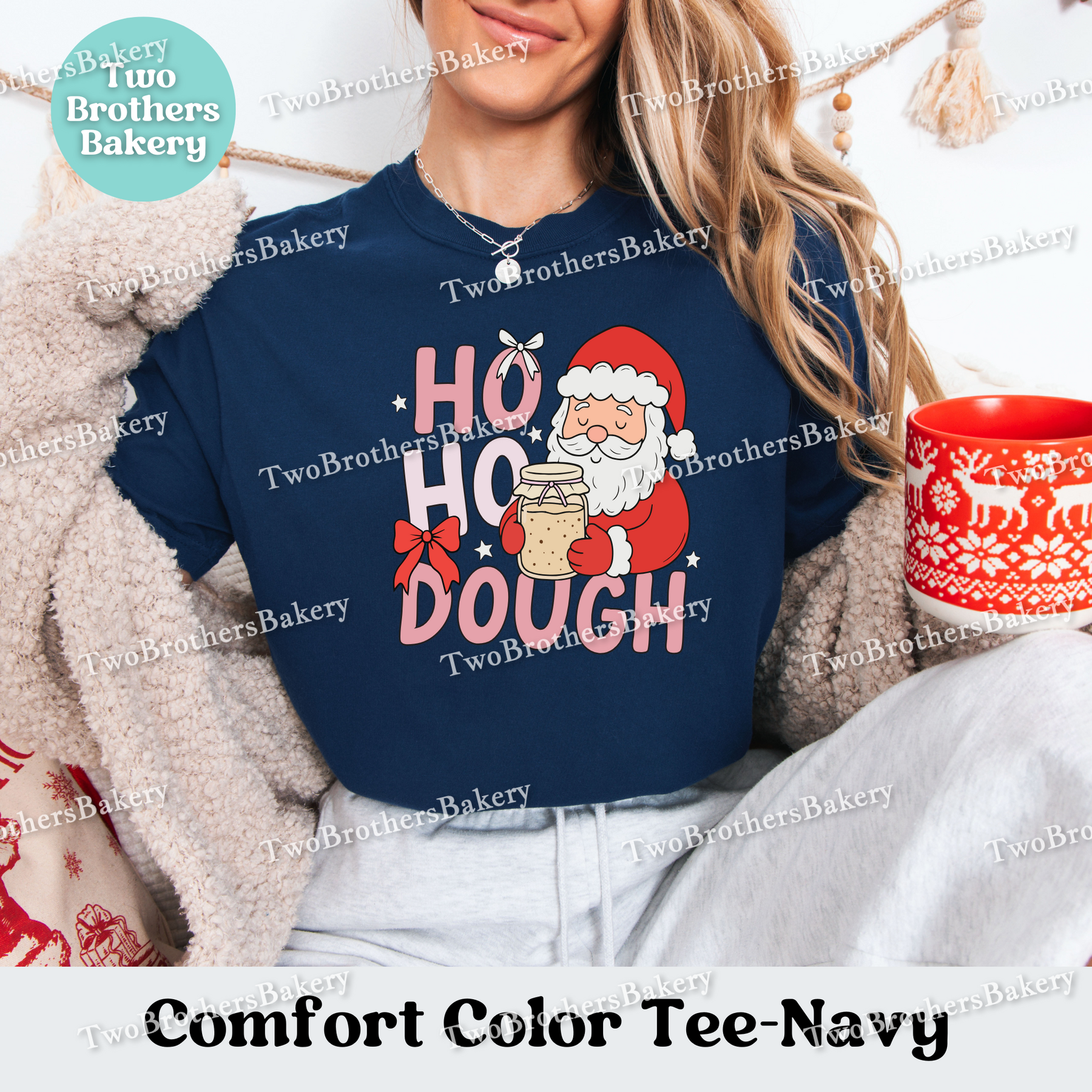 Printed on a Comfort Colors unisex t-shirt, this cozy and soft top is available in sizes Small through 4XL and a variety of garment colors, including Ivory, Moss, Crimson, Espresso, and White. The design’s warm holiday tones make it a must-have for bakers who spend their December days proofing, shaping, and baking with love. This tee has a true-to-size fit — size down for a more fitted look, size up for a relaxed fit, or go two sizes up for that comfy oversized vibe.