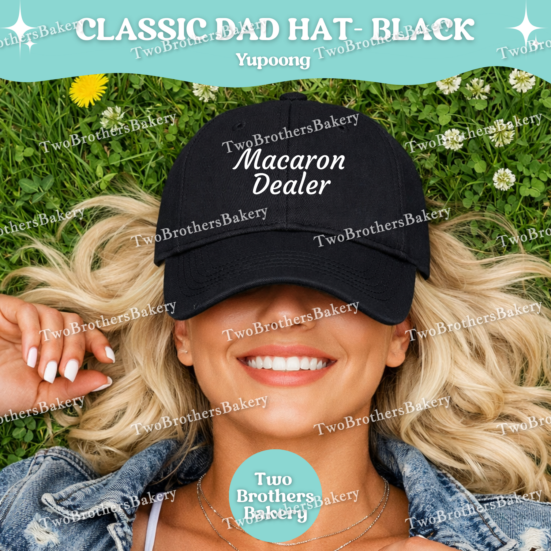 The Macaron Dealer design is now available on the classic dad hat — effortless, relaxed, and made for the baker who’s always on the move.