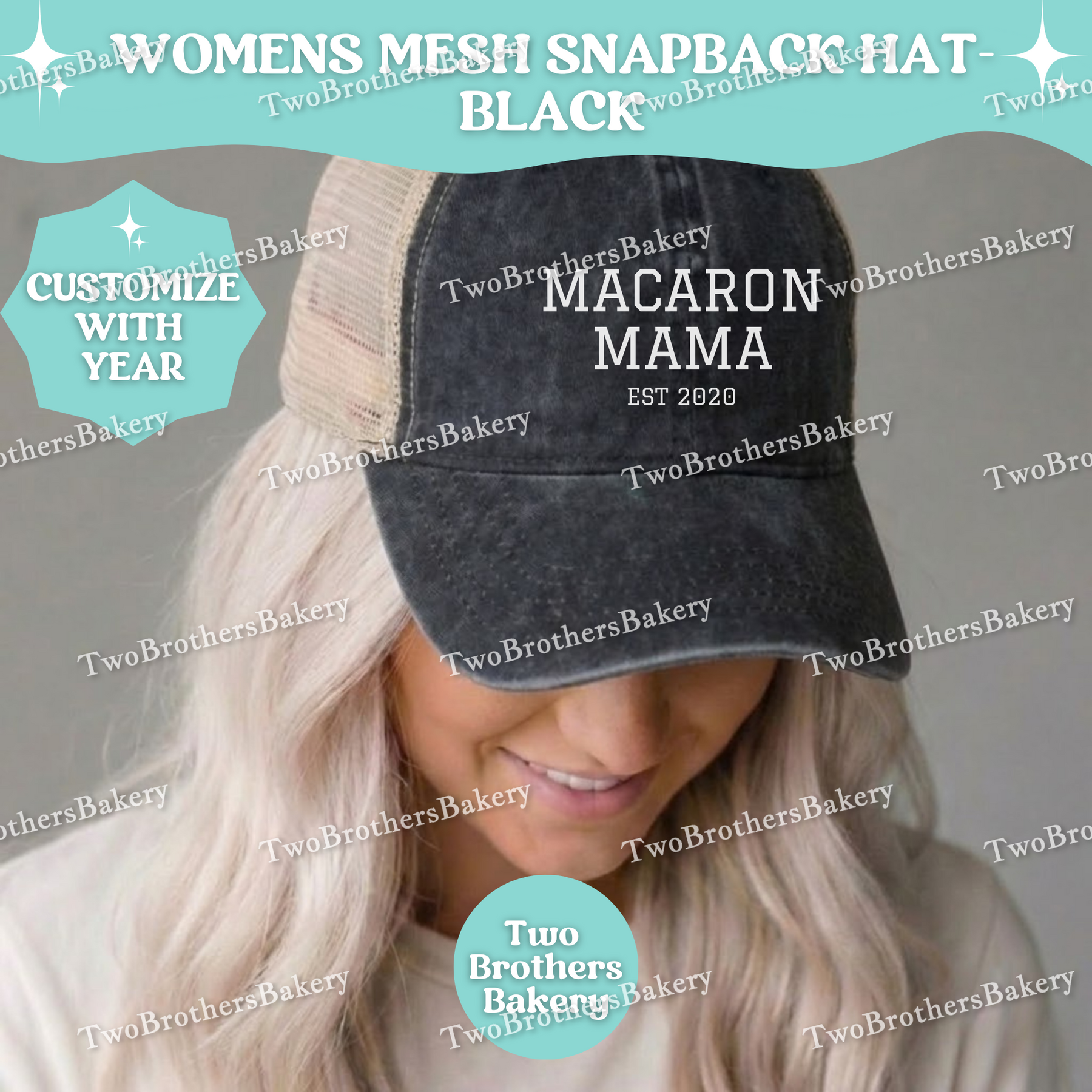 This clean white embroidery design features bold “Macaron Mama” lettering with a fully customizable EST year underneath, making it the perfect way to showcase when your baking era officially began. Whether that’s the year you launched your home bakery, became macaron-obsessed, earned your cottage food license, or turned your passion into profit — this hat tells your story in the most timeless way.