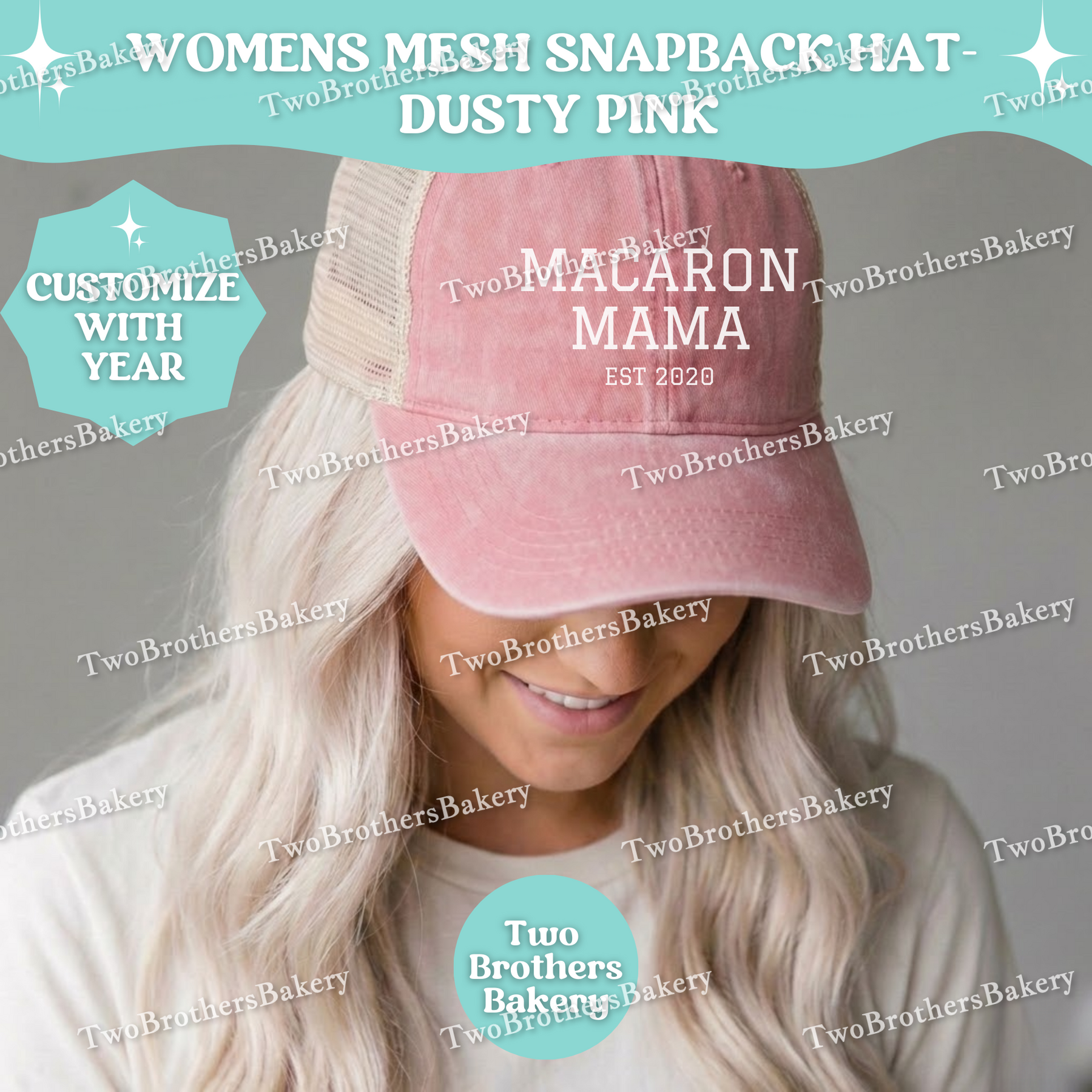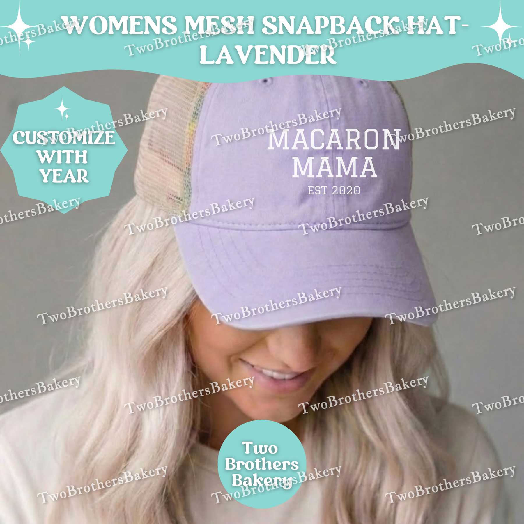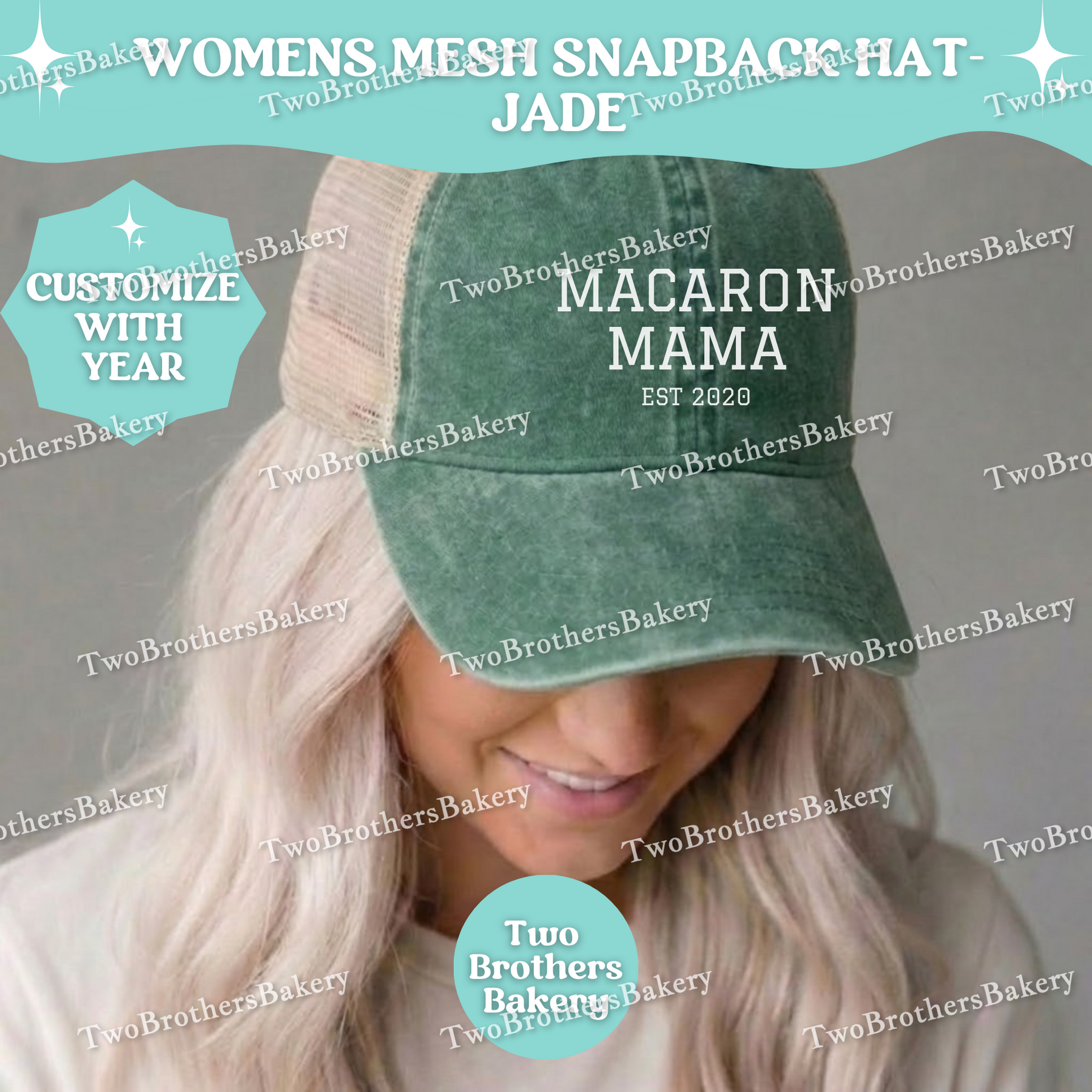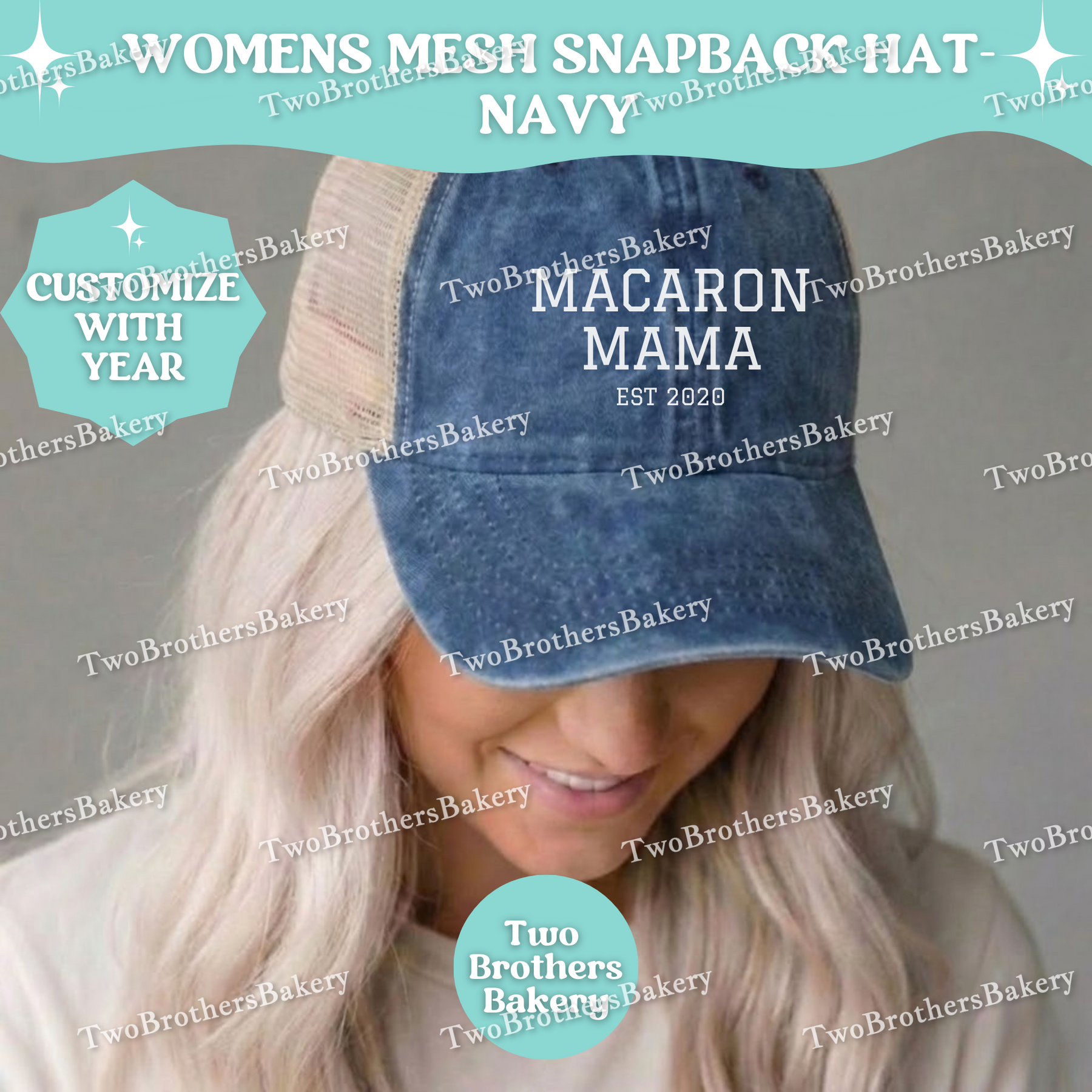 Classic, confident, and bakery-proud — the Macaron Mama — EST (Your Year) embroidered ponytail hat is made for the woman who built her macaron empire one batch at a time. 🧁✨