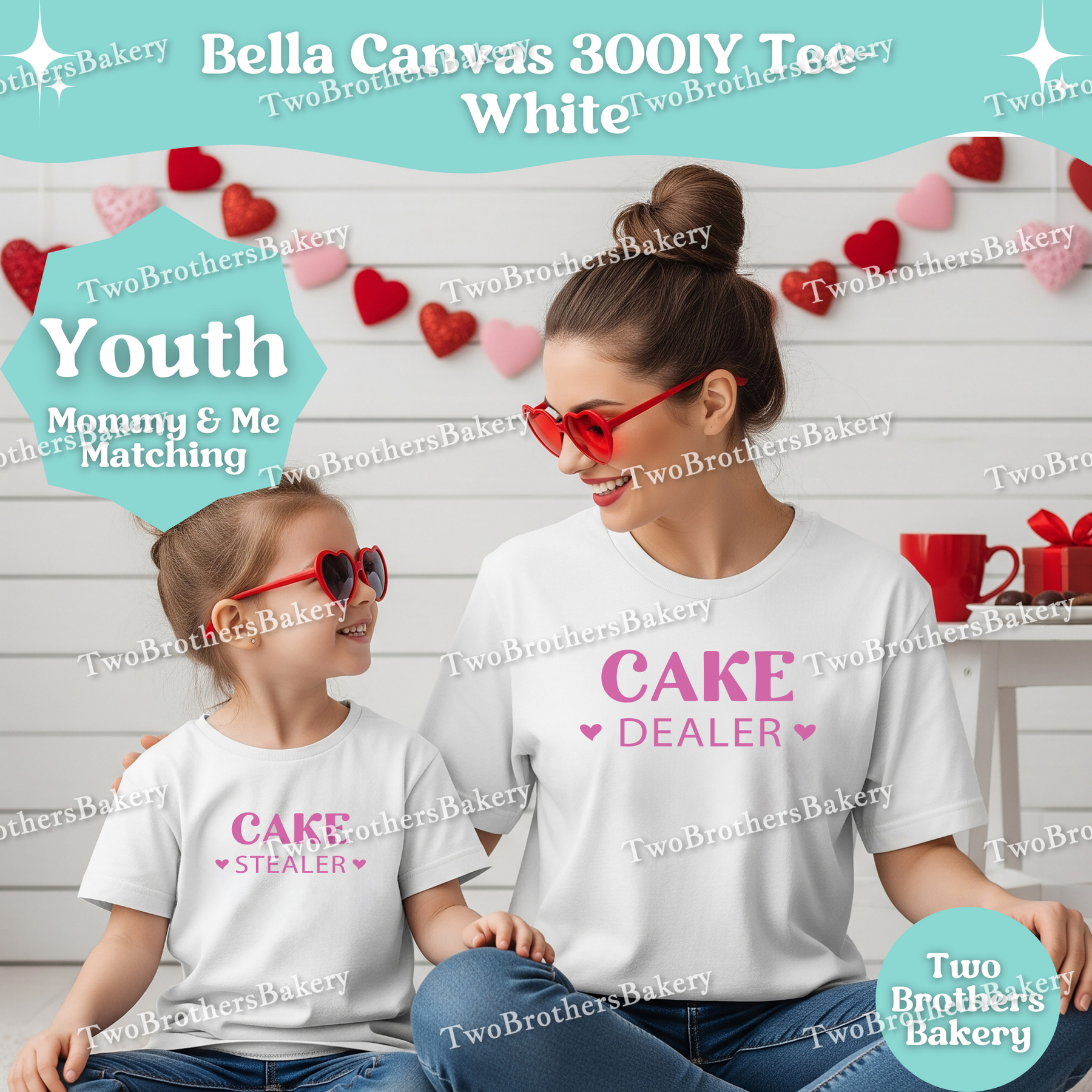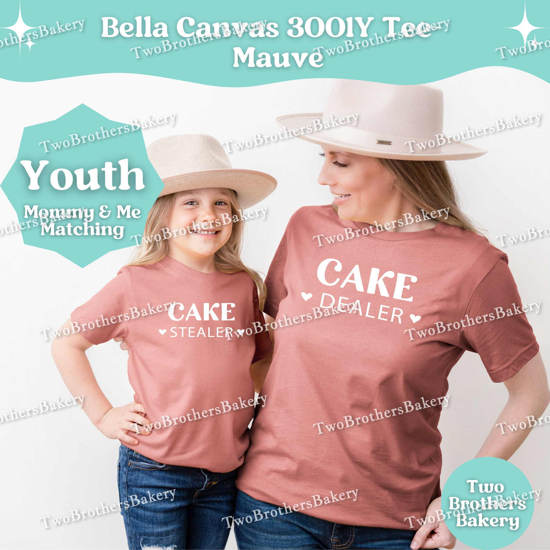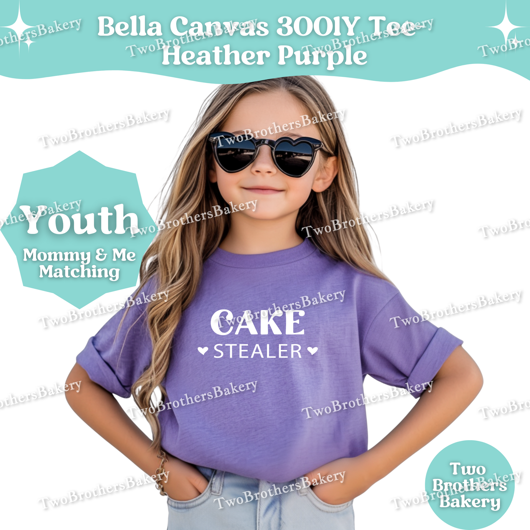 Printed on a Bella + Canvas 3001Y youth tee, this shirt is soft, lightweight, and breathable with a classic unisex fit and crew neckline—comfortable enough for all-day wear, from kitchen helpers to everyday adventures. The Cake Stealer text is printed in either pink or white, depending on the garment color, for a clean, stylish look that pairs effortlessly with any outfit.