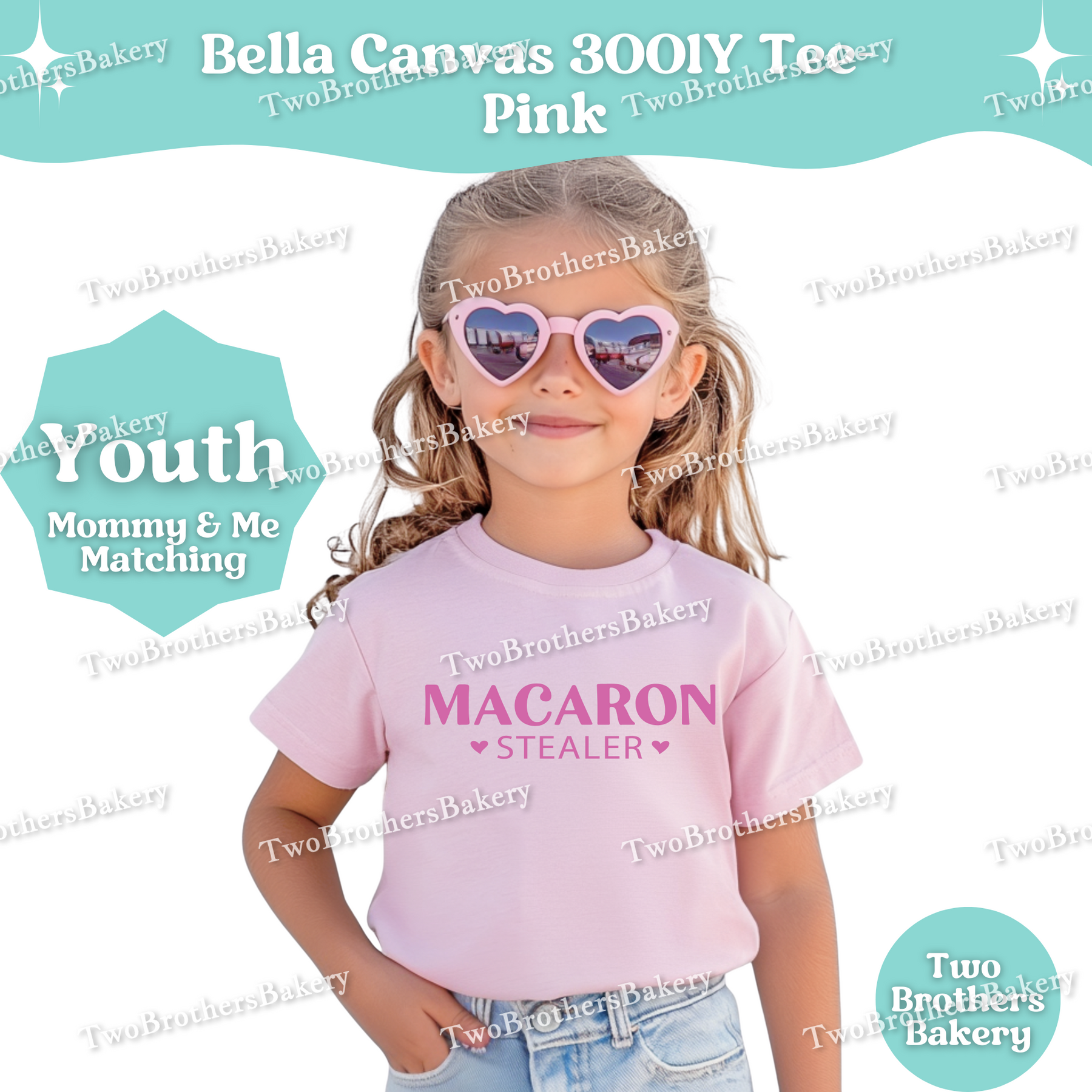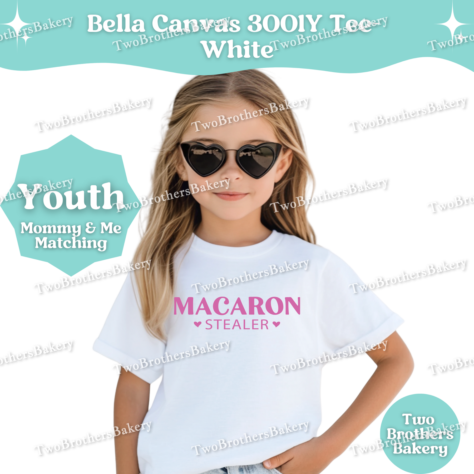 The Macaron Stealer youth tee is the perfect mix of sweet and sassy—because every baker knows the littlest helpers are usually the biggest treat thieves. 💕